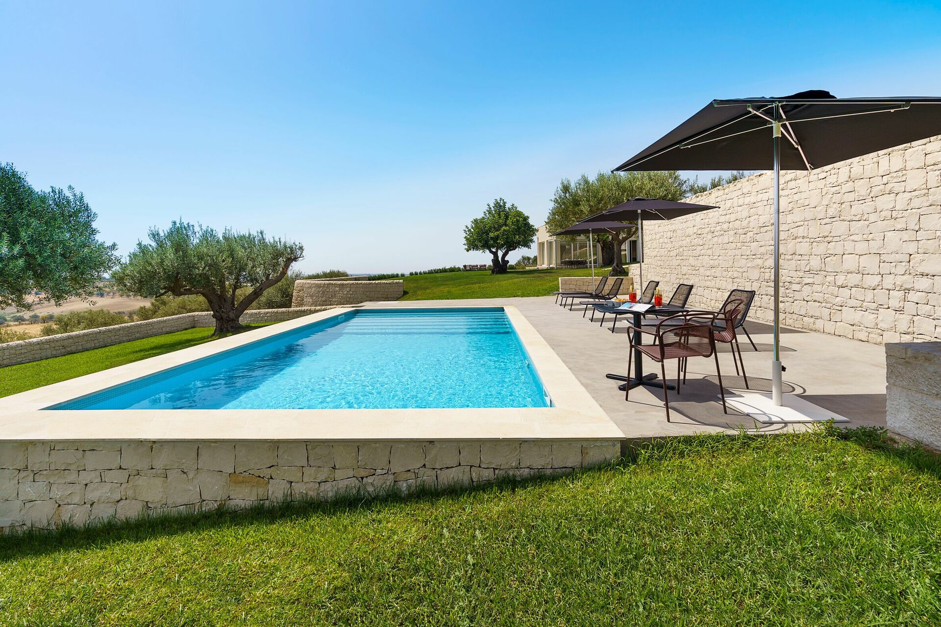 Villa Colleverde est une villa moderne avec piscine privée en location vacances aux alentours de Noto dans le sud-est de la Sicile.