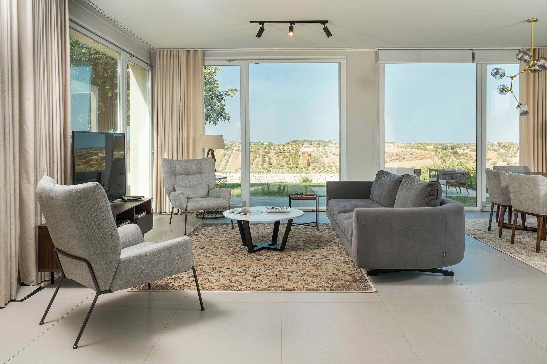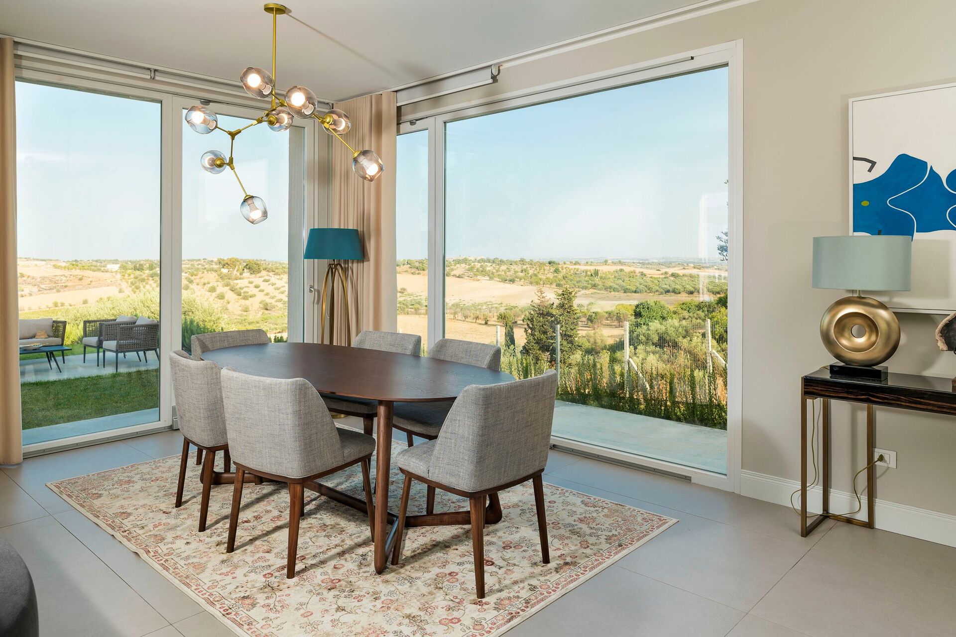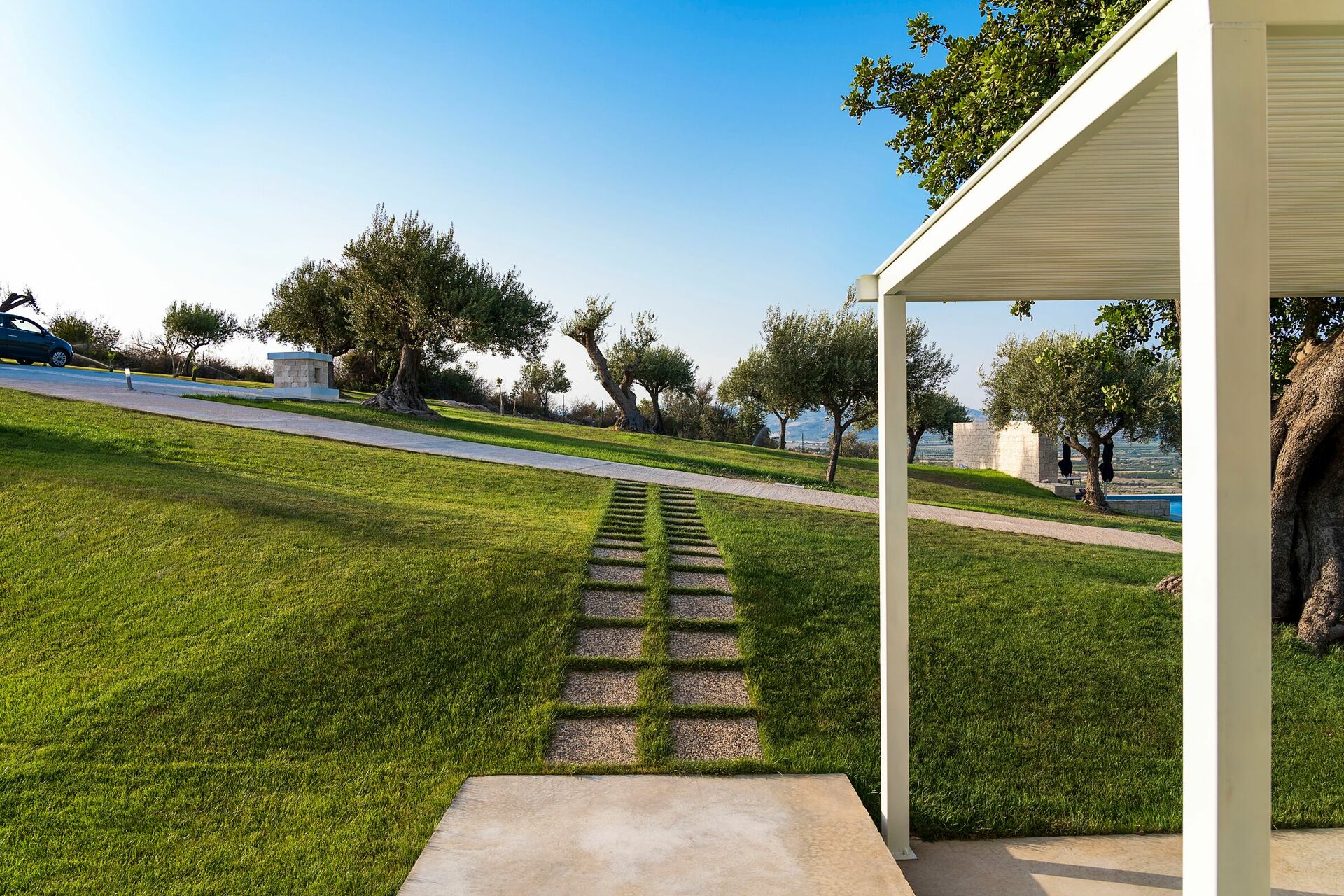 Plongée dans un caractéristique contexte rural orné d'oliviers, de caroubiers et petits murs de pierres sèches, la maison est entourée d'un grand jardin avec une belle piscine privée et une terrasse équipée pour les repas en plein air.