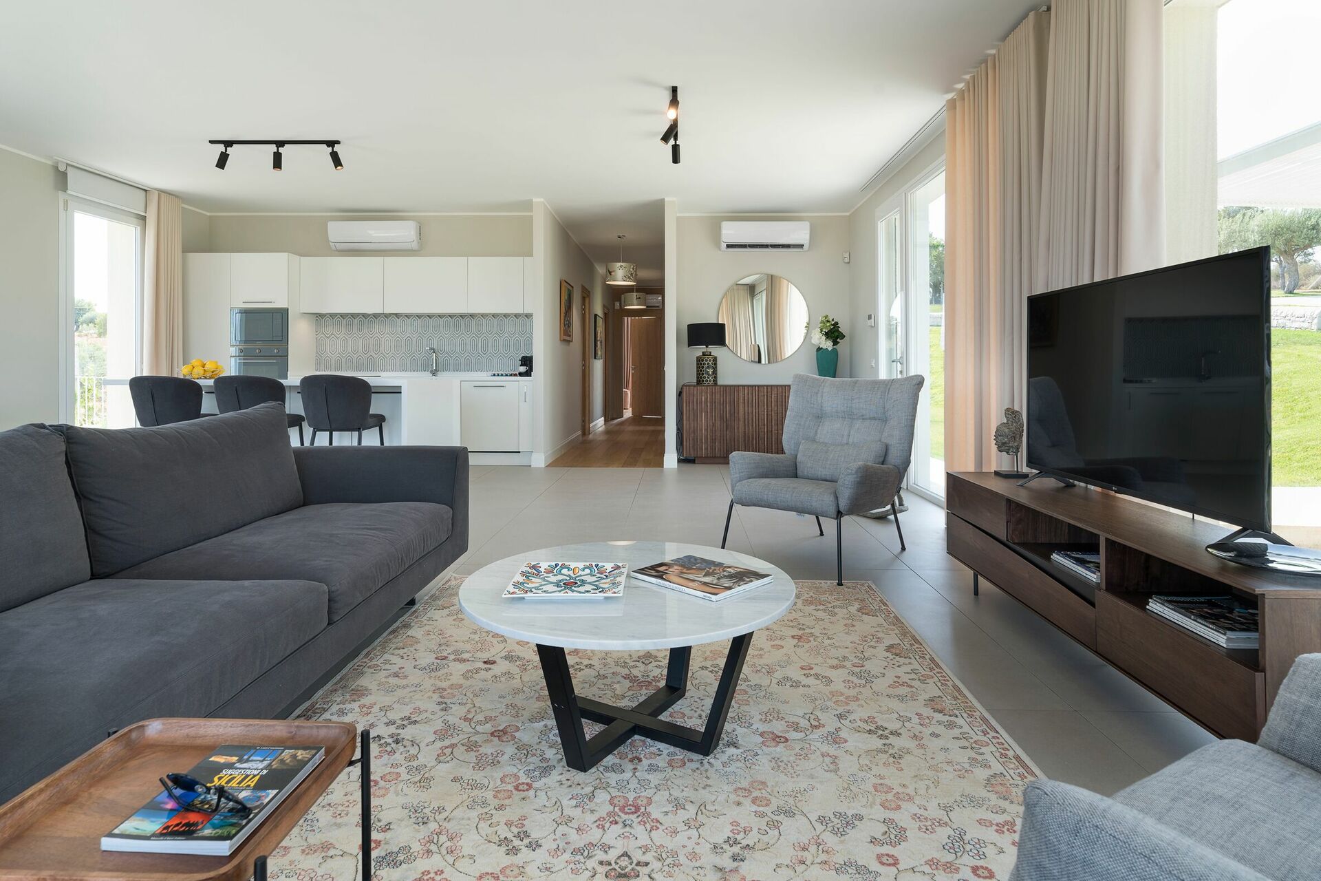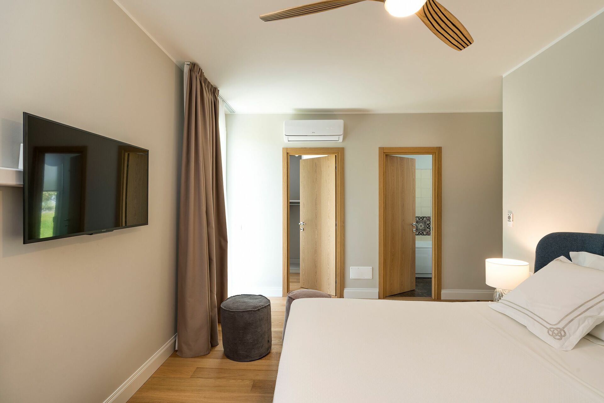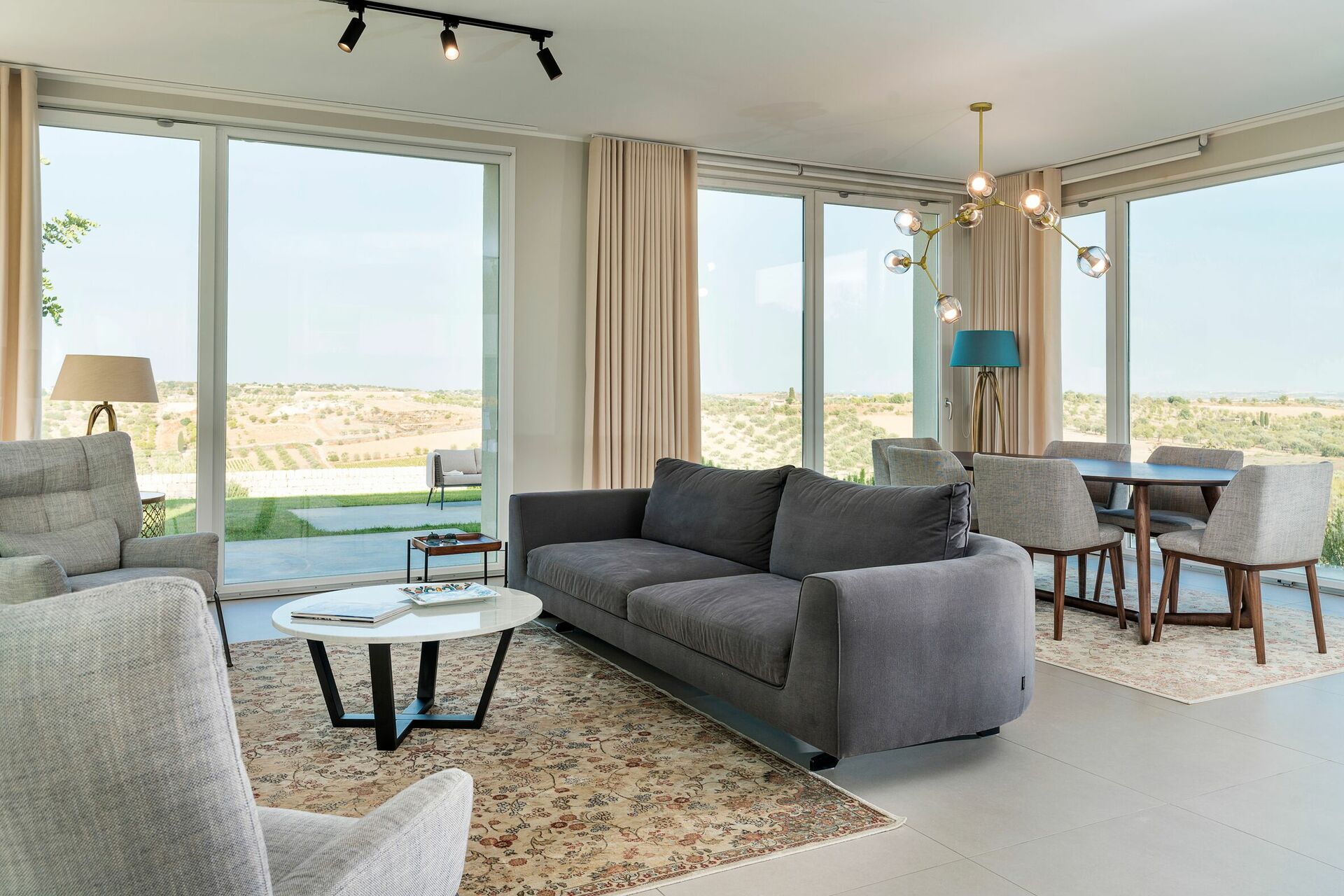 Plongée dans un caractéristique contexte rural orné d'oliviers, de caroubiers et petits murs de pierres sèches, la maison est entourée d'un grand jardin avec une belle piscine privée et une terrasse équipée pour les repas en plein air.