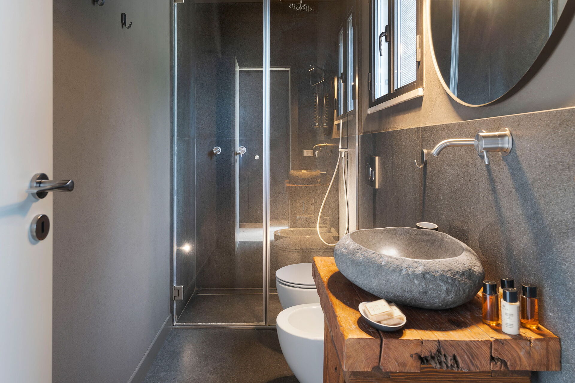 Rez-de-chaussée: chambre double (dimensions du lit: 160 x 200 cm) avec salle de bain privée avec douche.