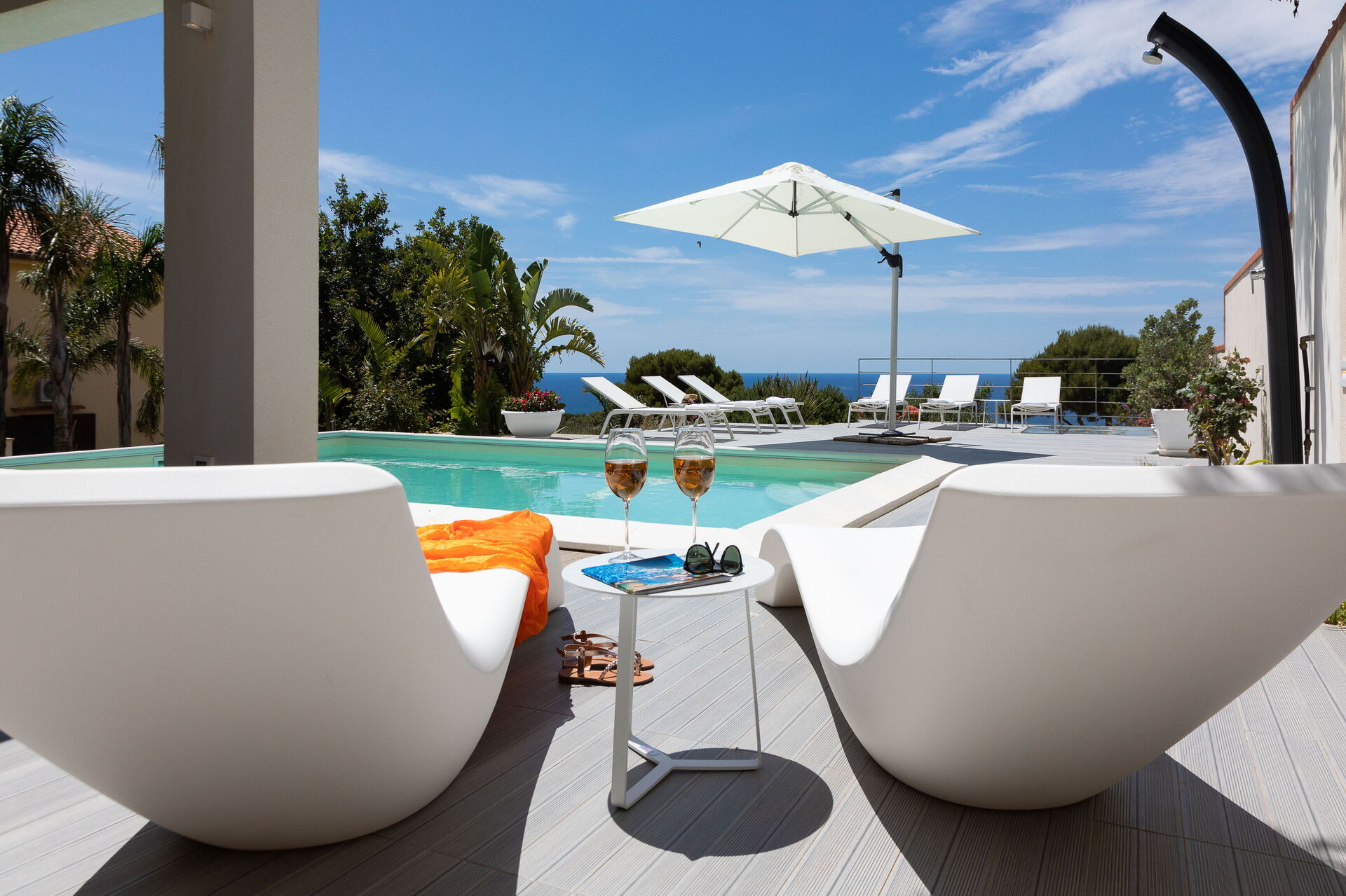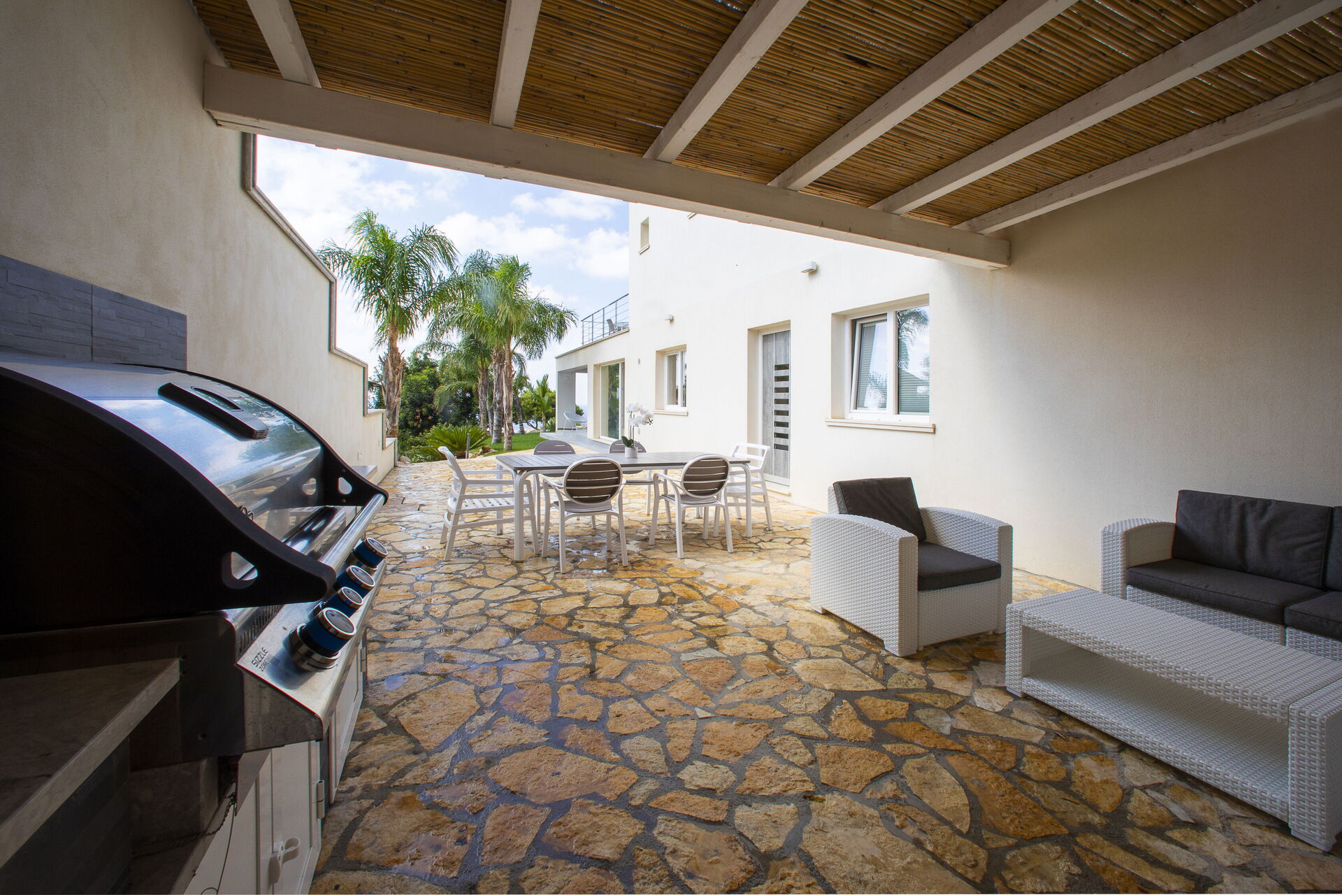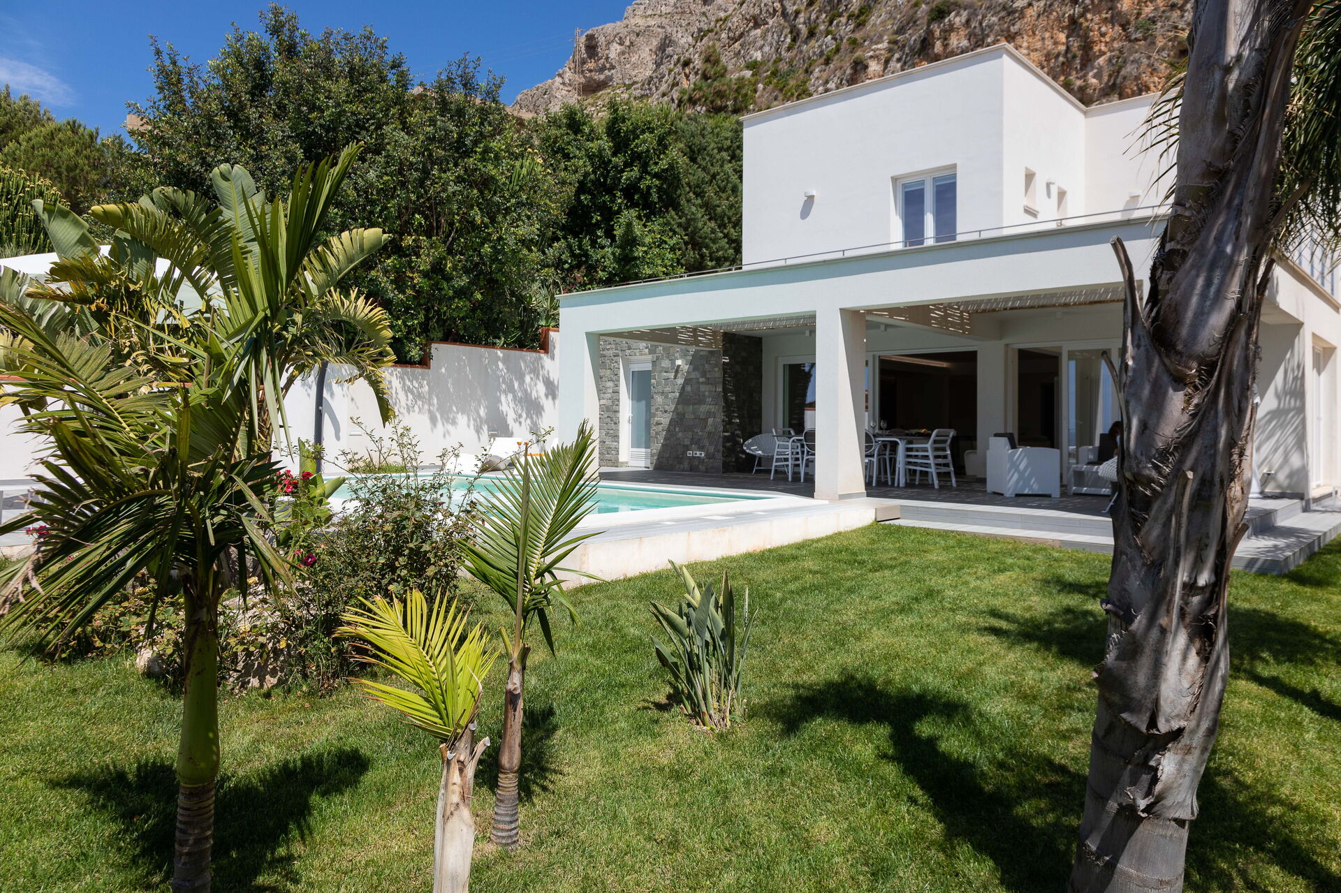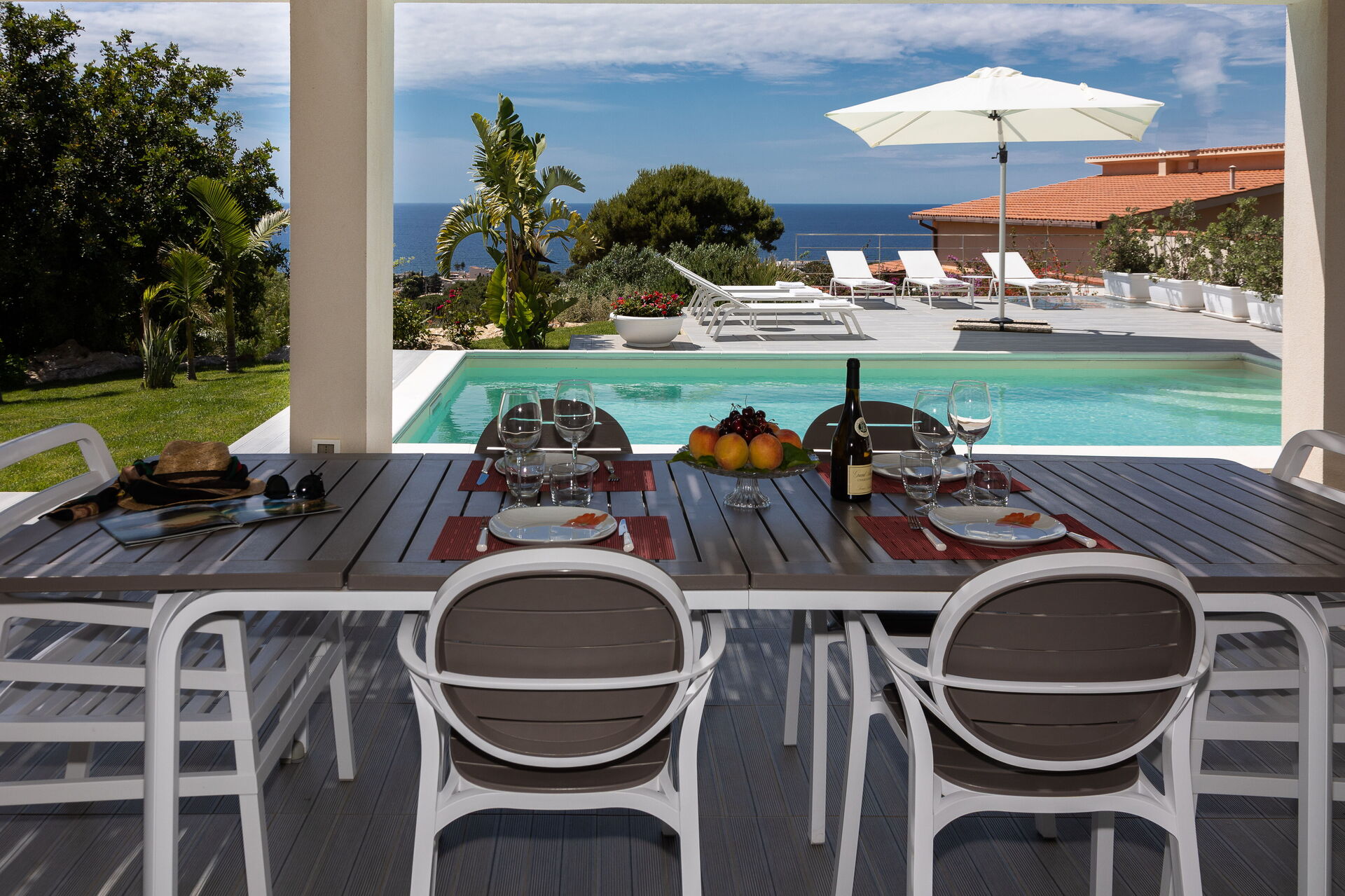Le beau jardin, rempli de plantes typiques de la région, abrite une élégante piscine et un tout nouveau jacuzzi à usage exclusif des hôtes de la villa; lesquels pourront profiter du soleil sicilien sur les chaises longues ou se détendre sous la terrasse couverte. En outre, juste à côté de l’entrée de la villa se trouve une deuxième salle à manger avec un barbecue très équipé, parfait pour les déjeuners et les dîners en compagnie de la famille et des amis.