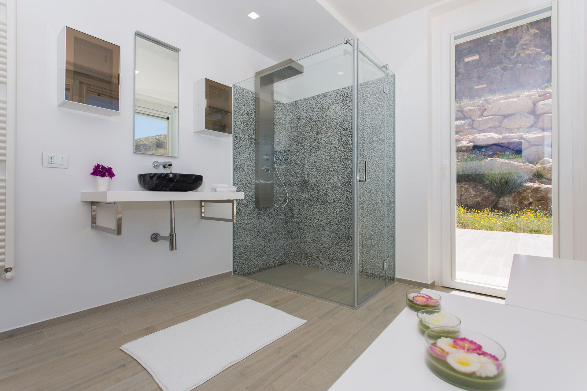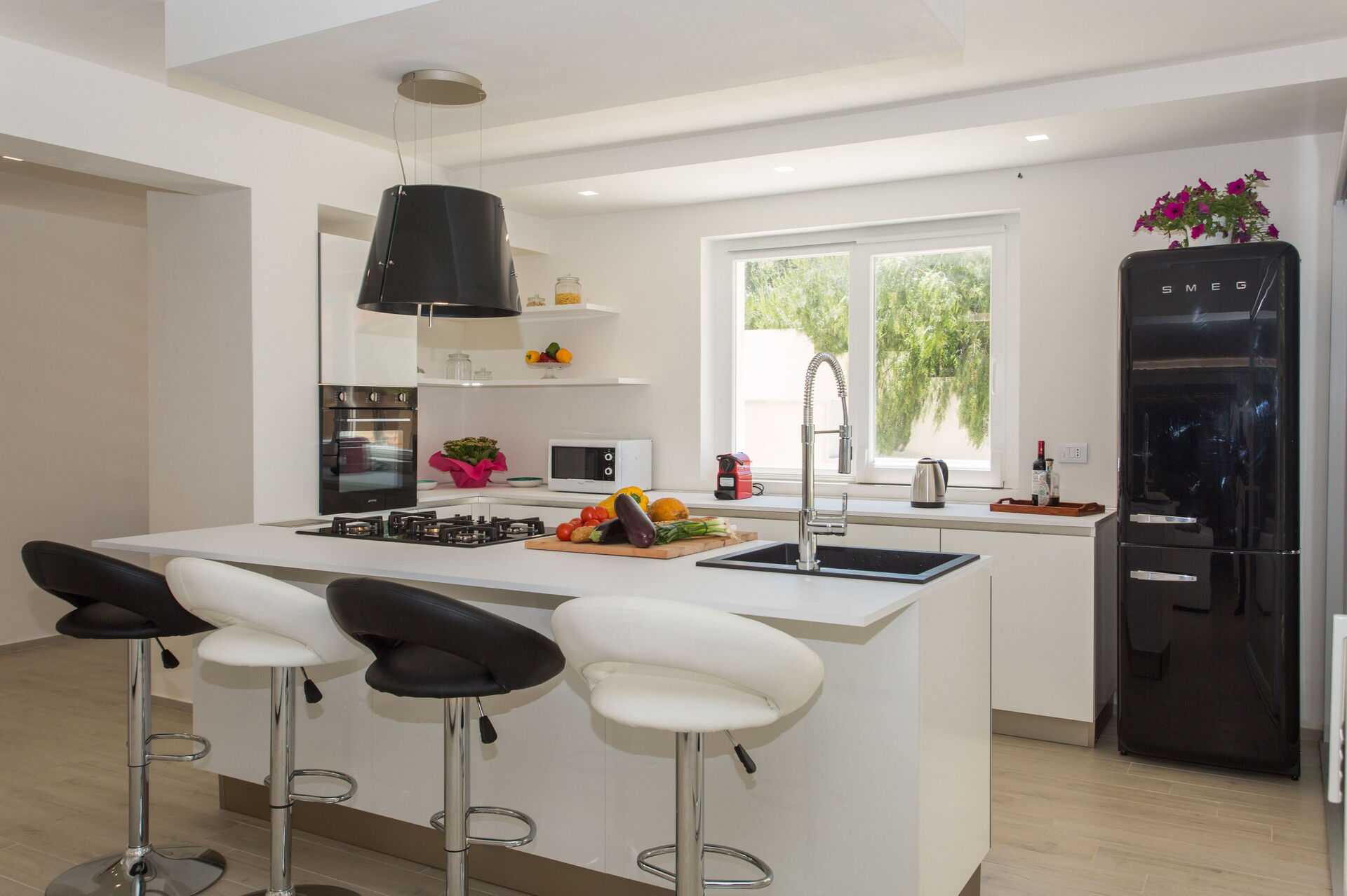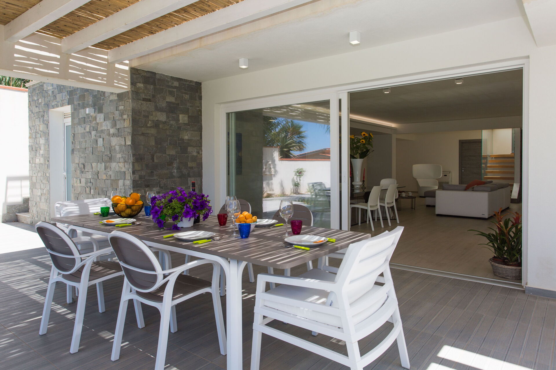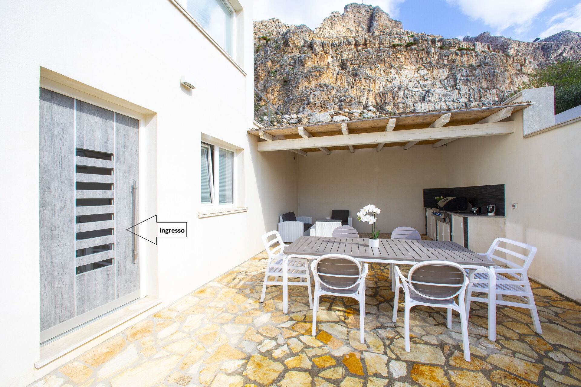 Le beau jardin, rempli de plantes typiques de la région, abrite une élégante piscine et un tout nouveau jacuzzi à usage exclusif des hôtes de la villa; lesquels pourront profiter du soleil sicilien sur les chaises longues ou se détendre sous la terrasse couverte. En outre, juste à côté de l’entrée de la villa se trouve une deuxième salle à manger avec un barbecue très équipé, parfait pour les déjeuners et les dîners en compagnie de la famille et des amis.