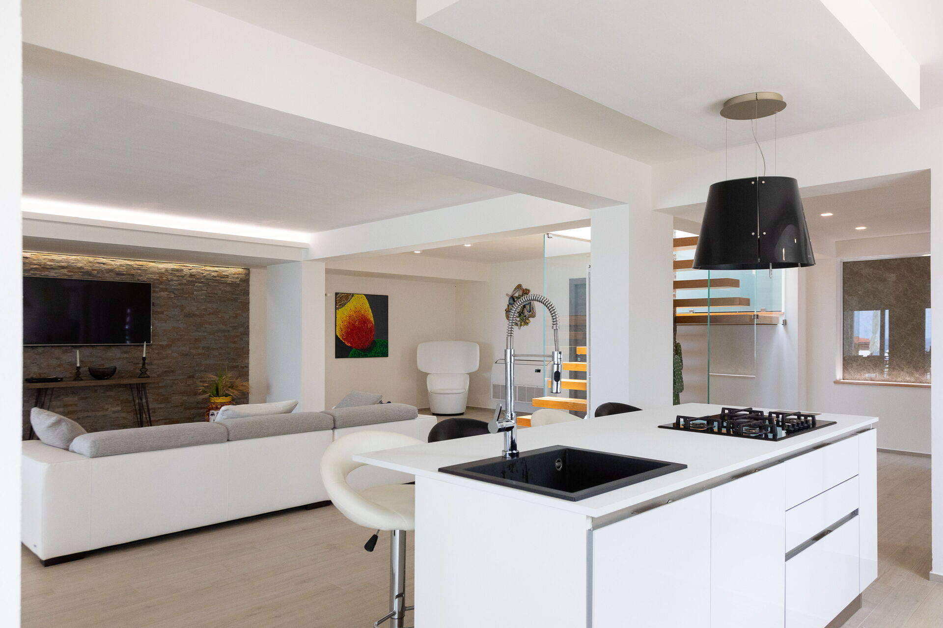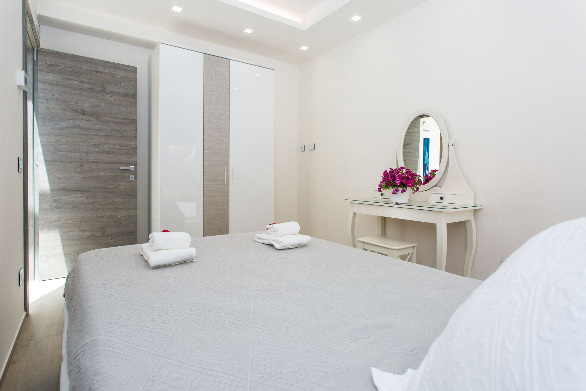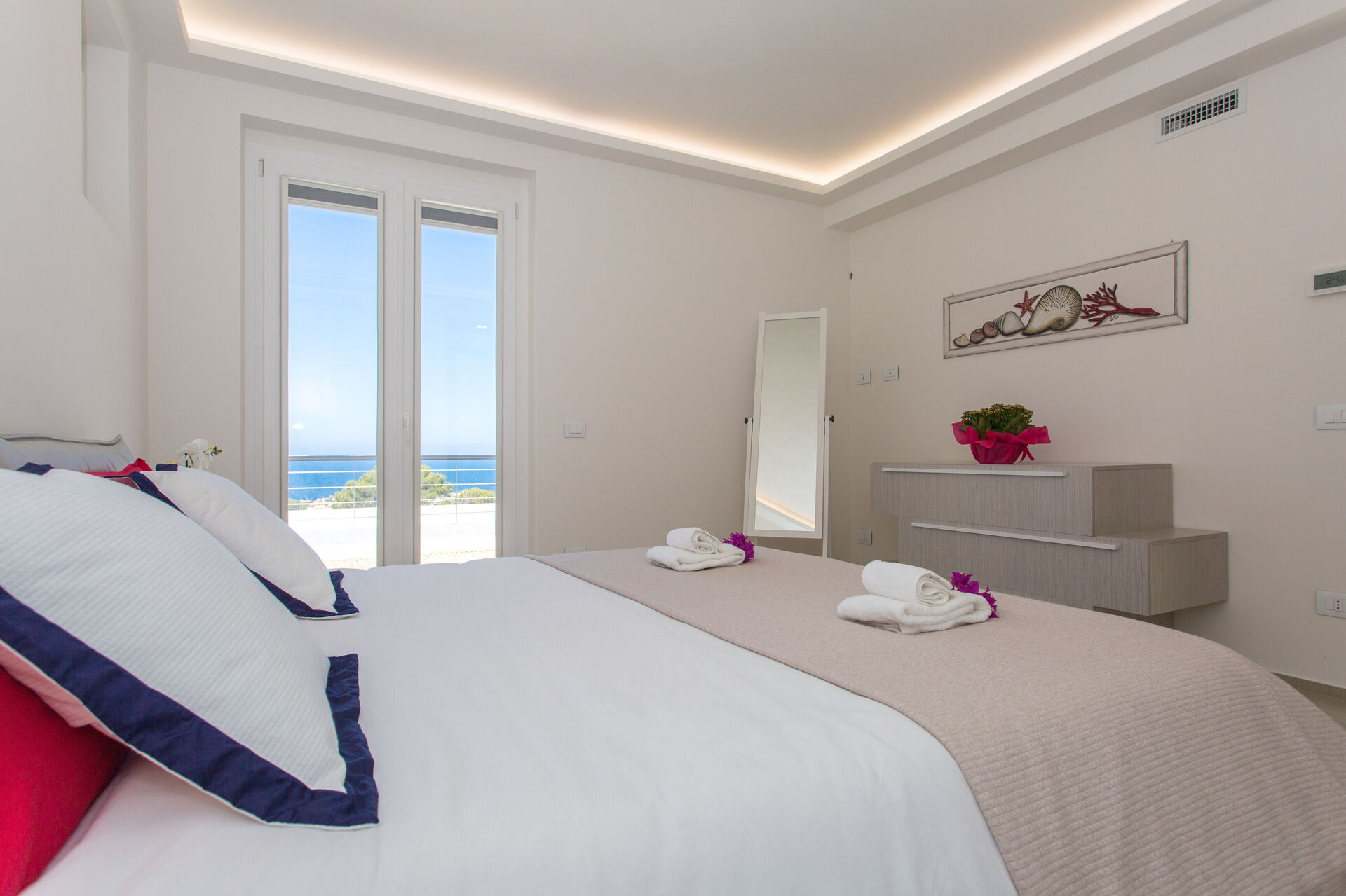 Tous les intérieurs sont spacieux et lumineux: grâce aux grandes fenêtres du salon et à l’accès au balcon depuis chaque chambre, vos journées commenceront et se termineront par une vue enchanteresse sur les Îles Égades.