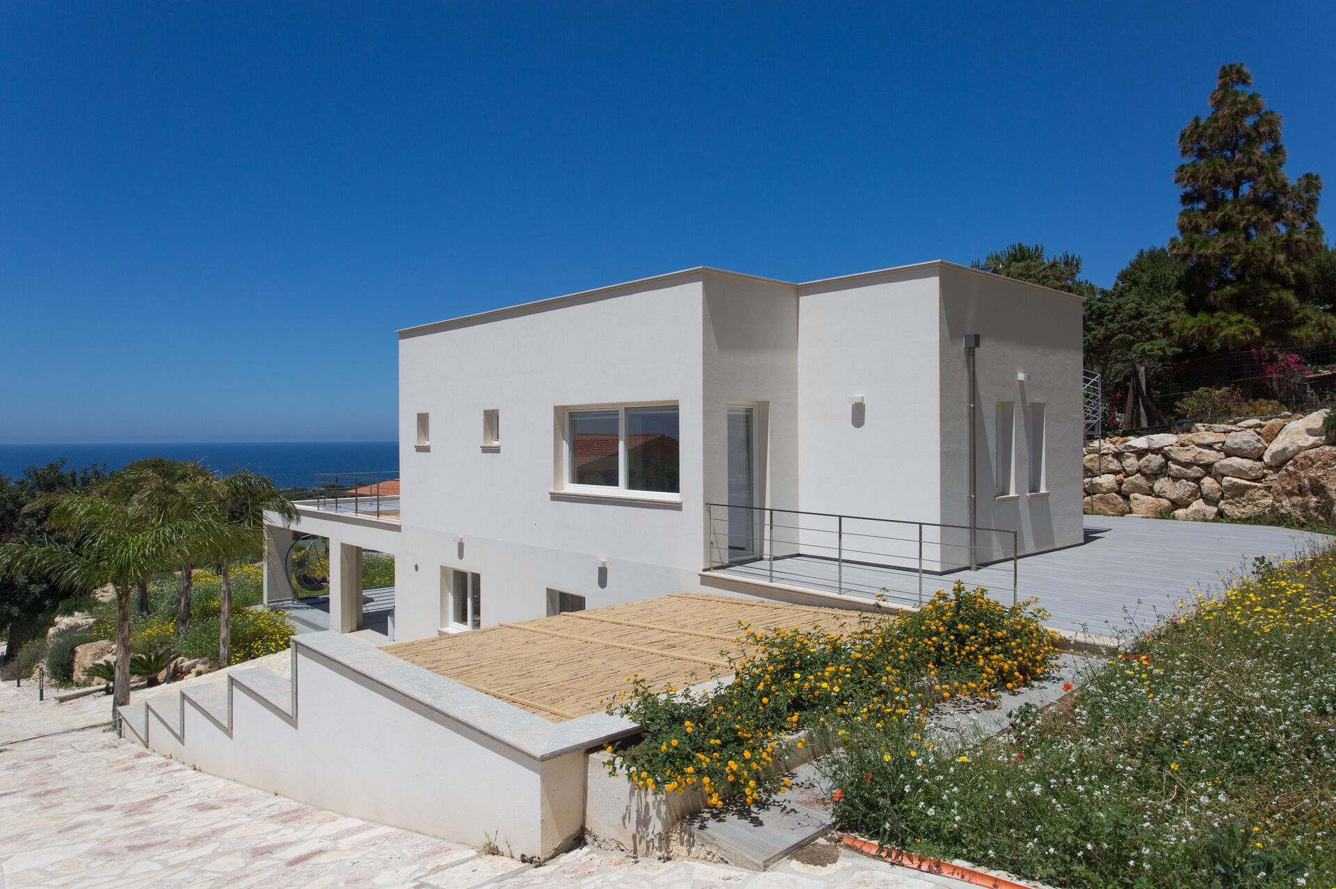 Deuxième étage: terrasse panoramique avec vue sur la mer et les Îles Égades (accessible par un escalier extérieur).