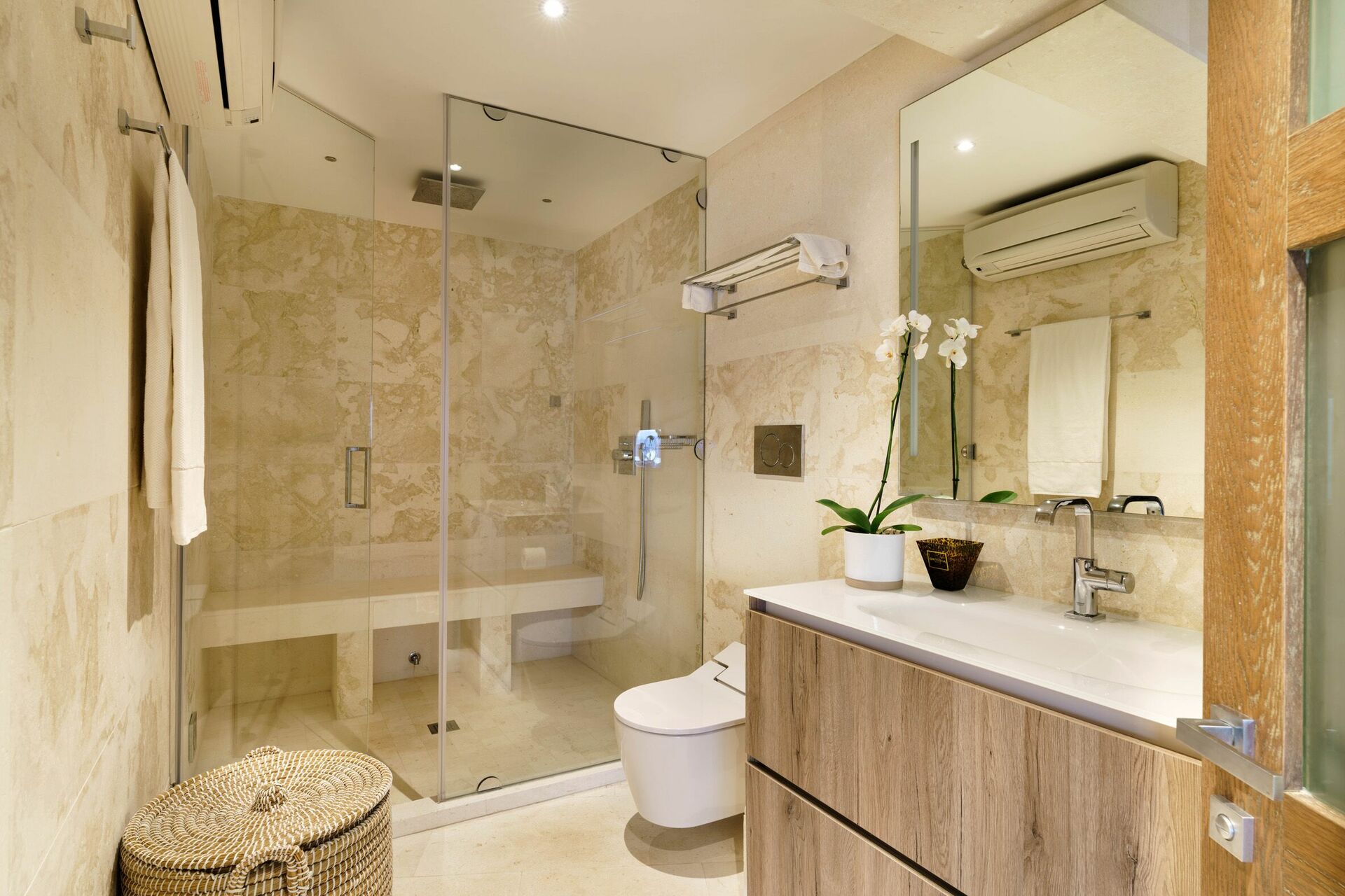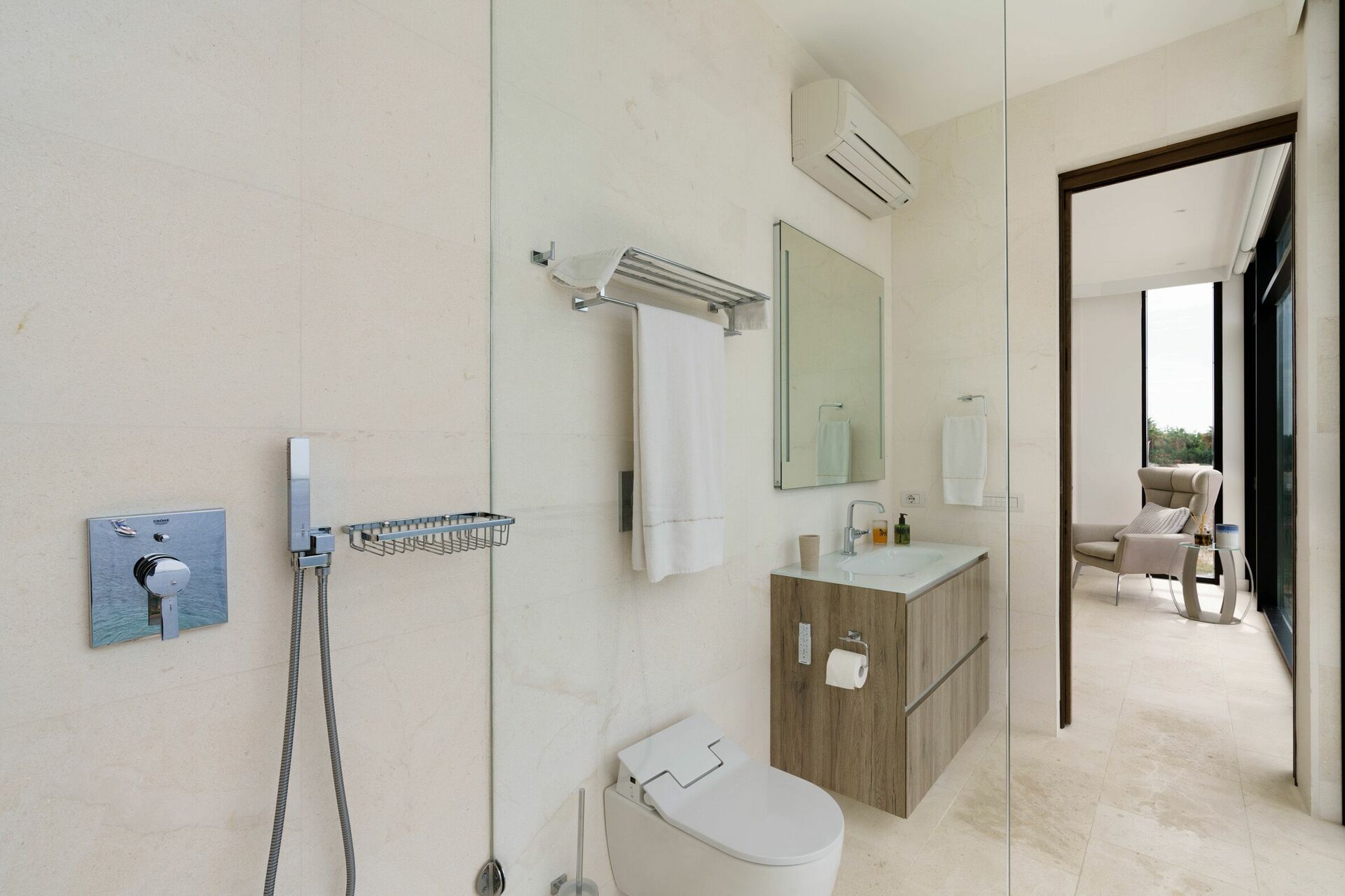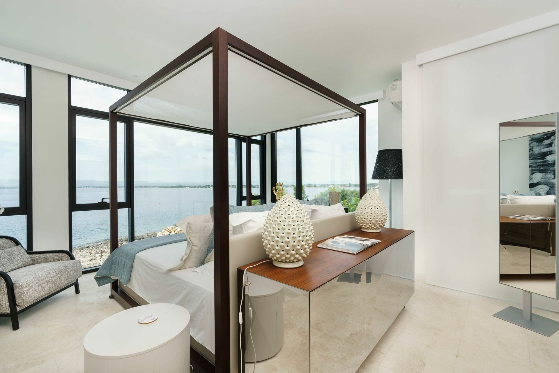 La position en bord de mer est unique, tout comme la vue sur la mer depuis le jardin, la piscine et chacun des trois étages qui composent la villa. Le mobilier est raffiné et chaque chambre est très lumineuse grâce aux grandes fenêtres qui permettent de toujours avoir une vue fantastique à admirer.