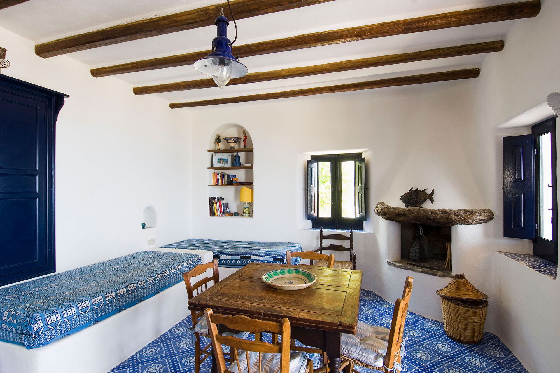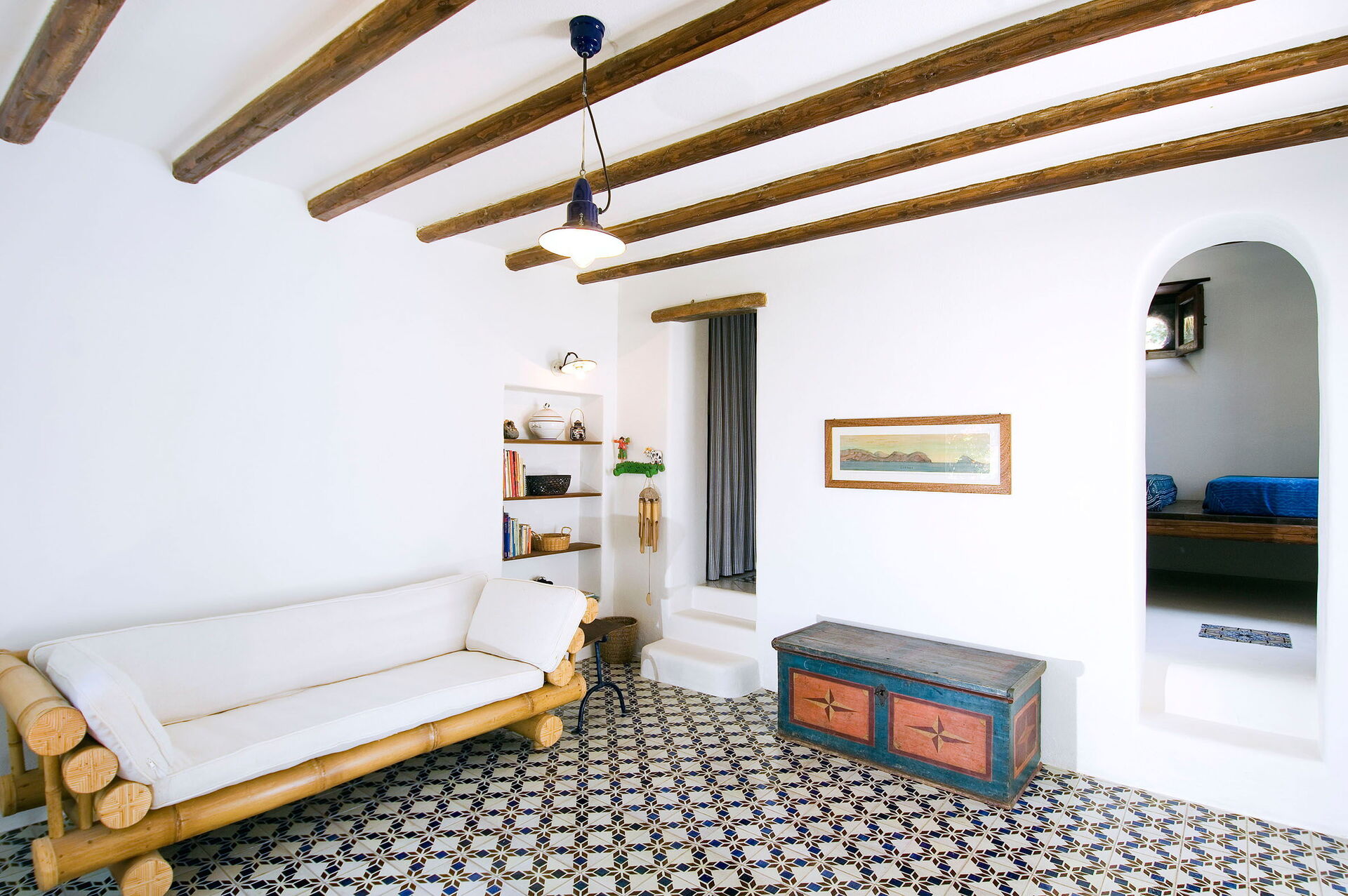 Les intérieurs sont bien entretenus et conservent les plafonds traditionnels avec poutres apparentes et les carreaux de majolique typiques faits à la main; le mobilier est rustique et volontairement simple, suivant ainsi le style typique des habitations de l’île.