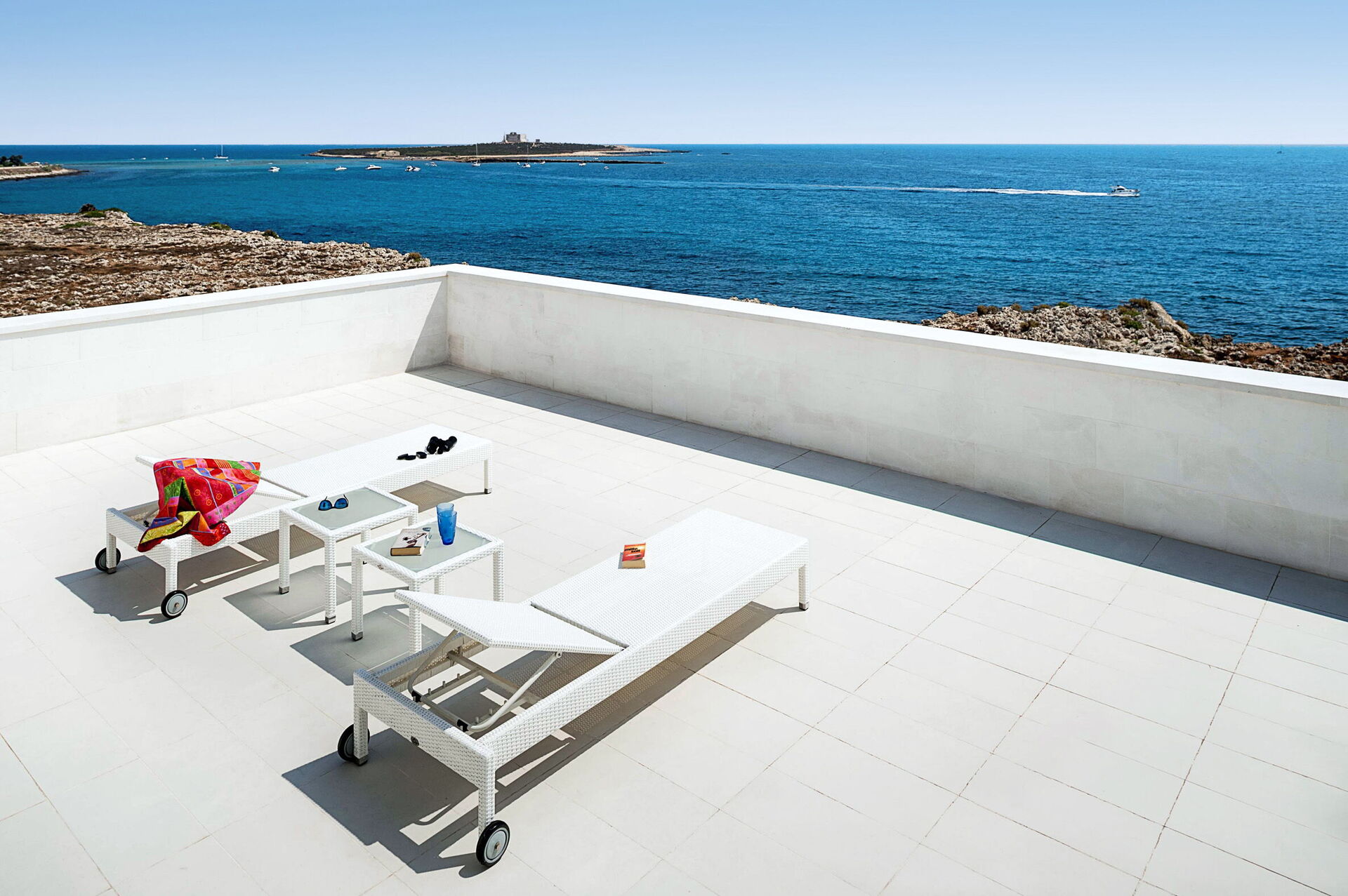 Une salle à manger extérieure située sous la véranda constitue le point fort de la propriété: vous pourrez vous y détendre et manger en plein air tout en profitant d'une vue fantastique sur la mer, avec l'île de Capo Passero qui se dessine à l'horizon. Les grandes zones de solarium font de cette villa l'endroit idéal pour se détendre entre amis ou en famille sous le chaud soleil sicilien.