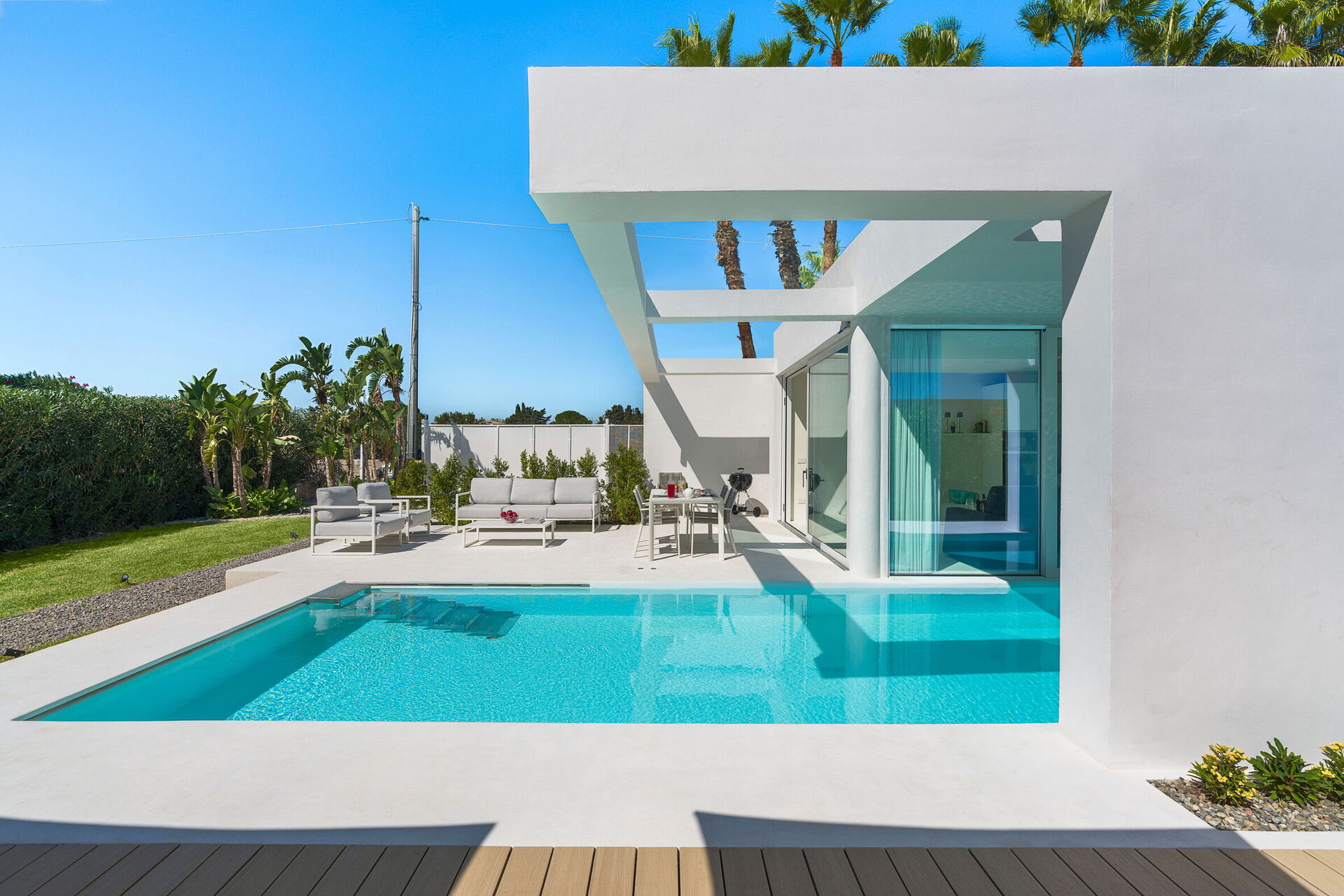 Un style moderne accompagne les hôtes aussi bien à l'intérieur qu'à l'extérieur: des espaces lumineux et très accueillants, un mobilier au design contemporain et des espaces extérieurs bien équipés garantissent la détente et une expérience inoubliable.