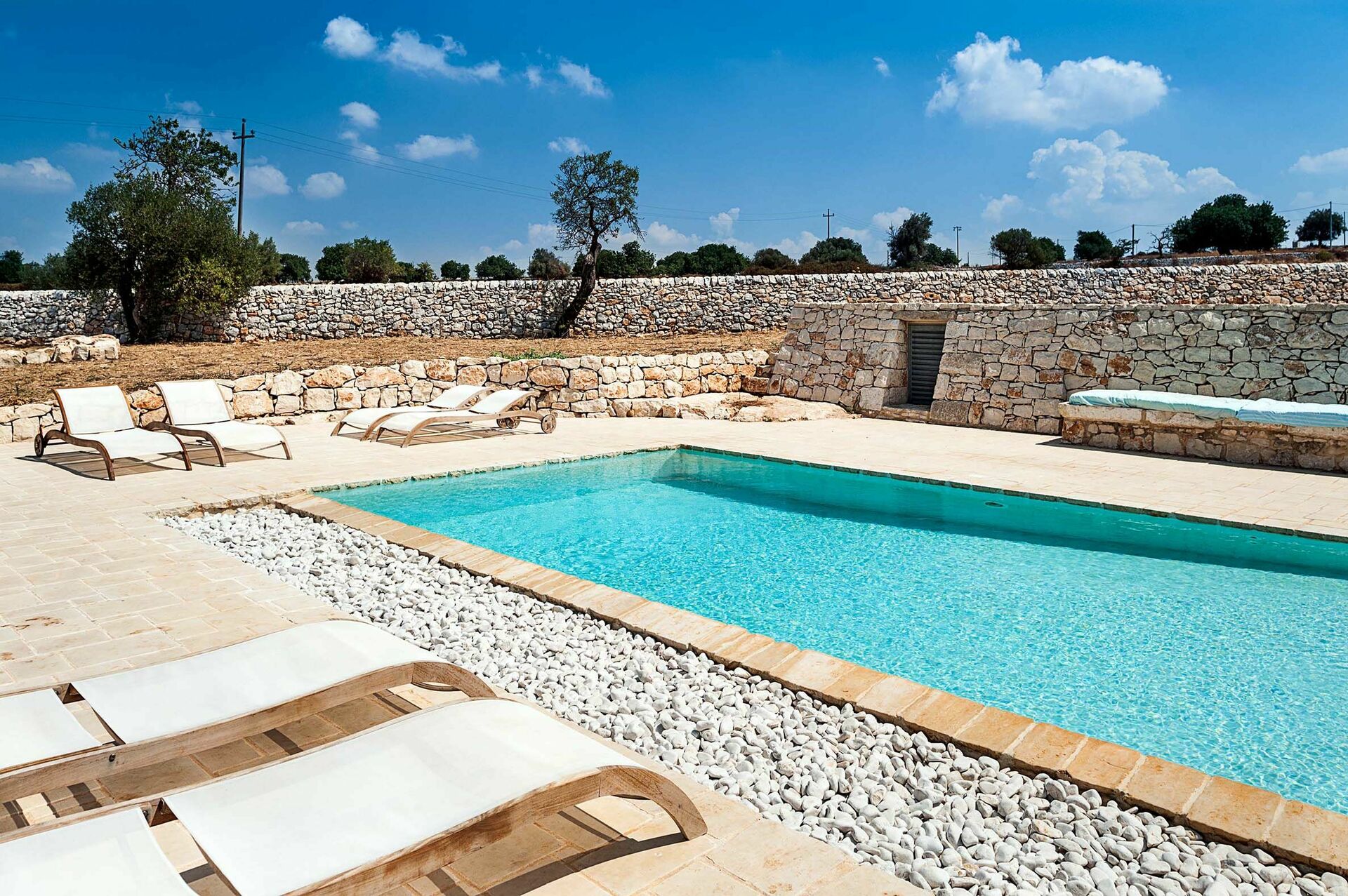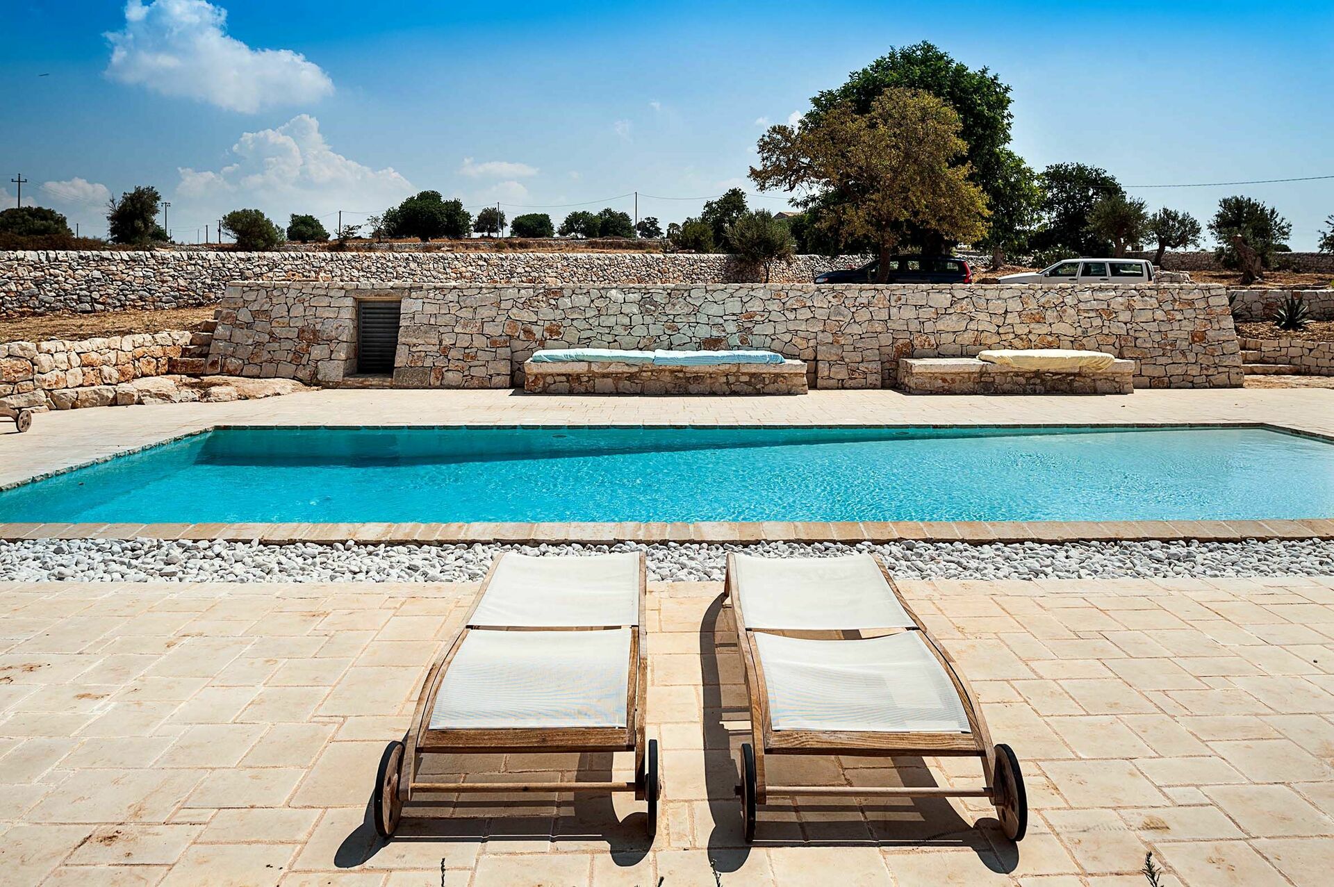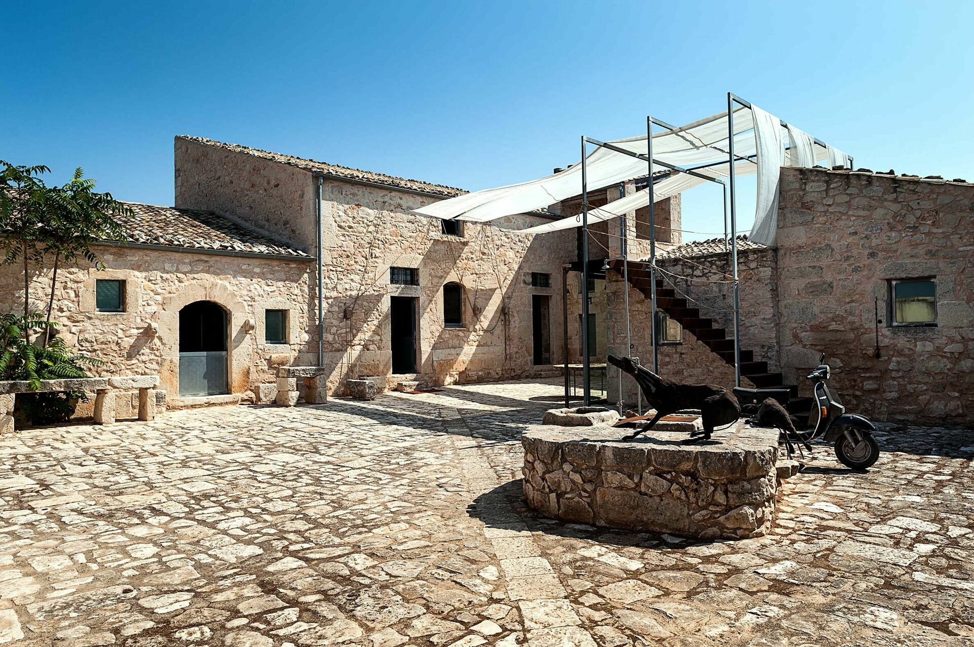 Entourée de traditionnels petits murs en pierre sèche, cette demeure offre une belle piscine, de grandes terrasses ensoleillées et une caractéristique cour intérieure. Les intérieurs se distinguent par un design sophistiqué et l’emploi important de matériaux comme la pierre naturelle, l'acier et le bois, en parfaite harmonie avec le cadre.