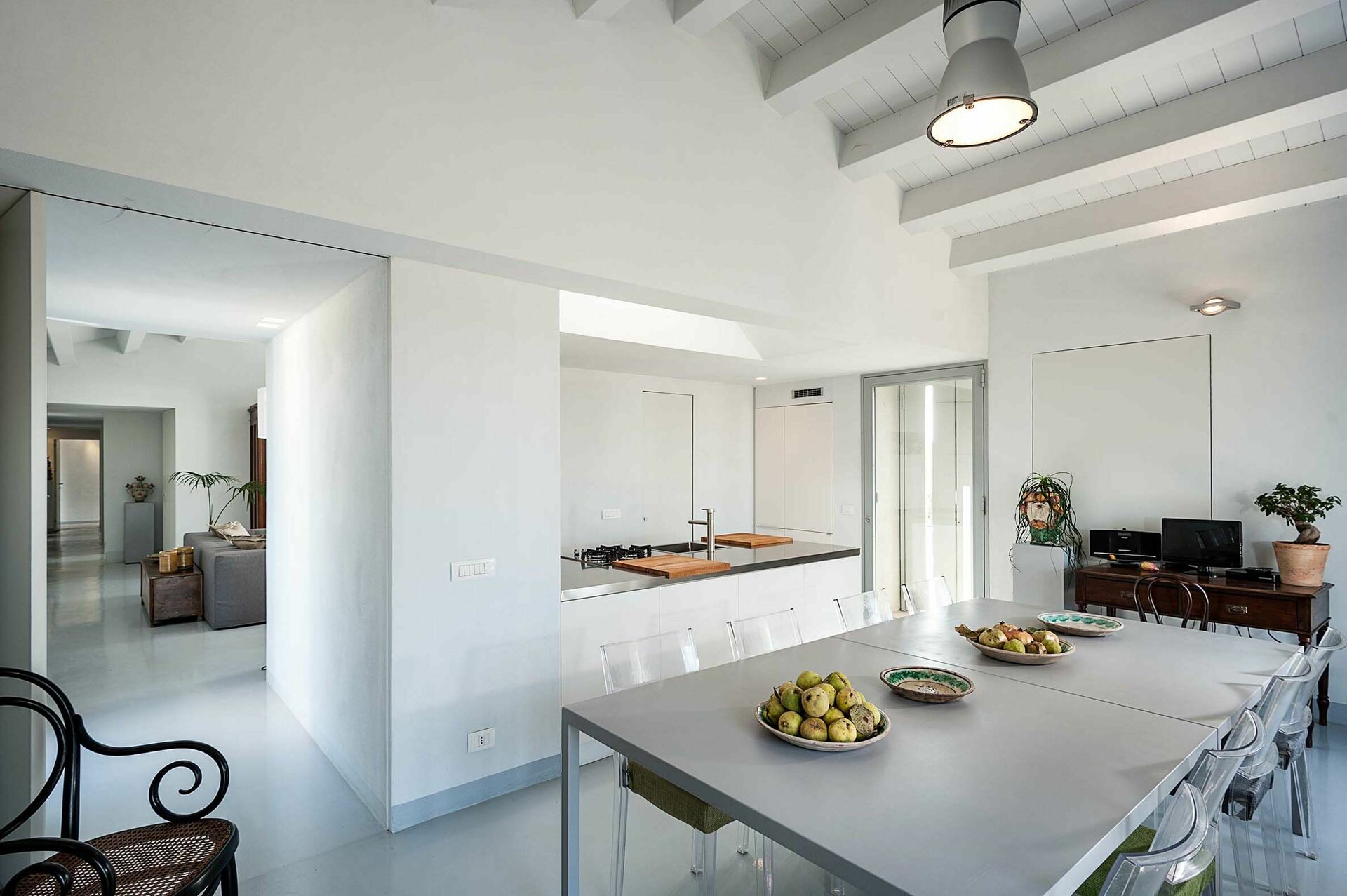 Si vous cherchez une belle villa en Sicile pour vos vacances, vous ne serez pas déçus par Villa Hybla. Grâce à ses 3 chambres elle peut accueillir jusqu'à 6 personnes dans un cadre très confortable qui se développe sur un niveau. Un grand jardin bien entretenu entoure la villa. L’ensemble est parfaitement intégré dans l'environnement. Intérieurs meublés avec goût et souci du détail, vous y trouverez aussi bien d’anciens meubles de famille que des pièces de design.