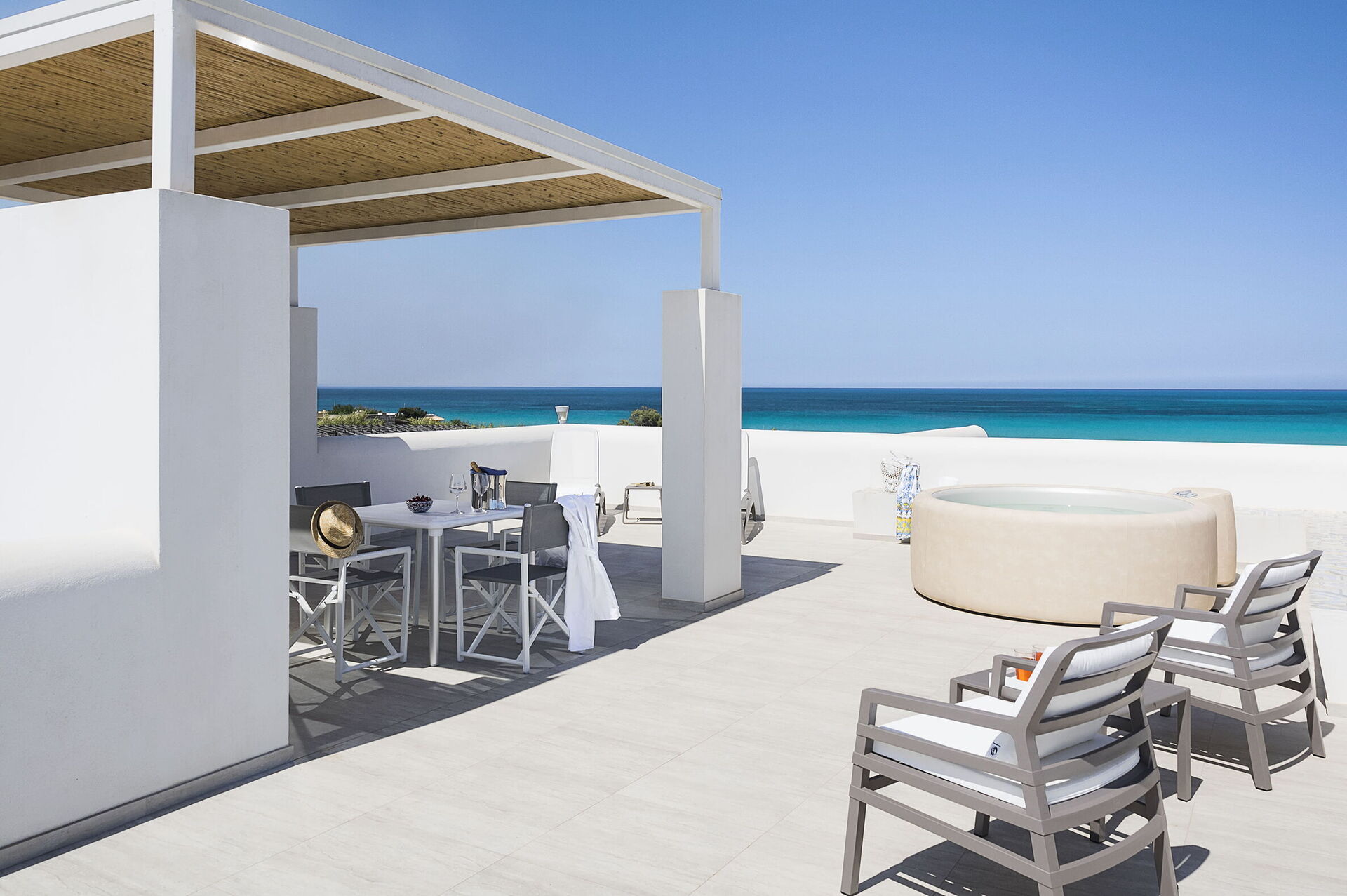 Entourée d'un jardin bien soigné et de grandes terrasses panoramiques avec vue sur la mer, cette belle et confortable villa de vacances dispose d'une petite piscine privée et d'un jacuzzi exclusif situé sur la terrasse-solarium de la maison. Le jacuzzi peut être chauffé sur demande.
