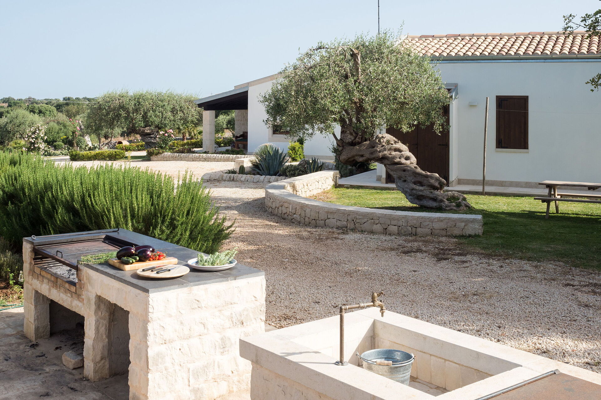 Harmonieusement insérée dans le paysage rural caractéristique de la campagne sicilienne qui l’hébèrge, Corte Moscata est entourée d’un jardin bien entretenu et dispose d’une belle piscine exclusive, de grands espaces équipés tels qu’un porche et une loggia avec un coin bar, parfaits pour profiter de moments de détente en plein air.