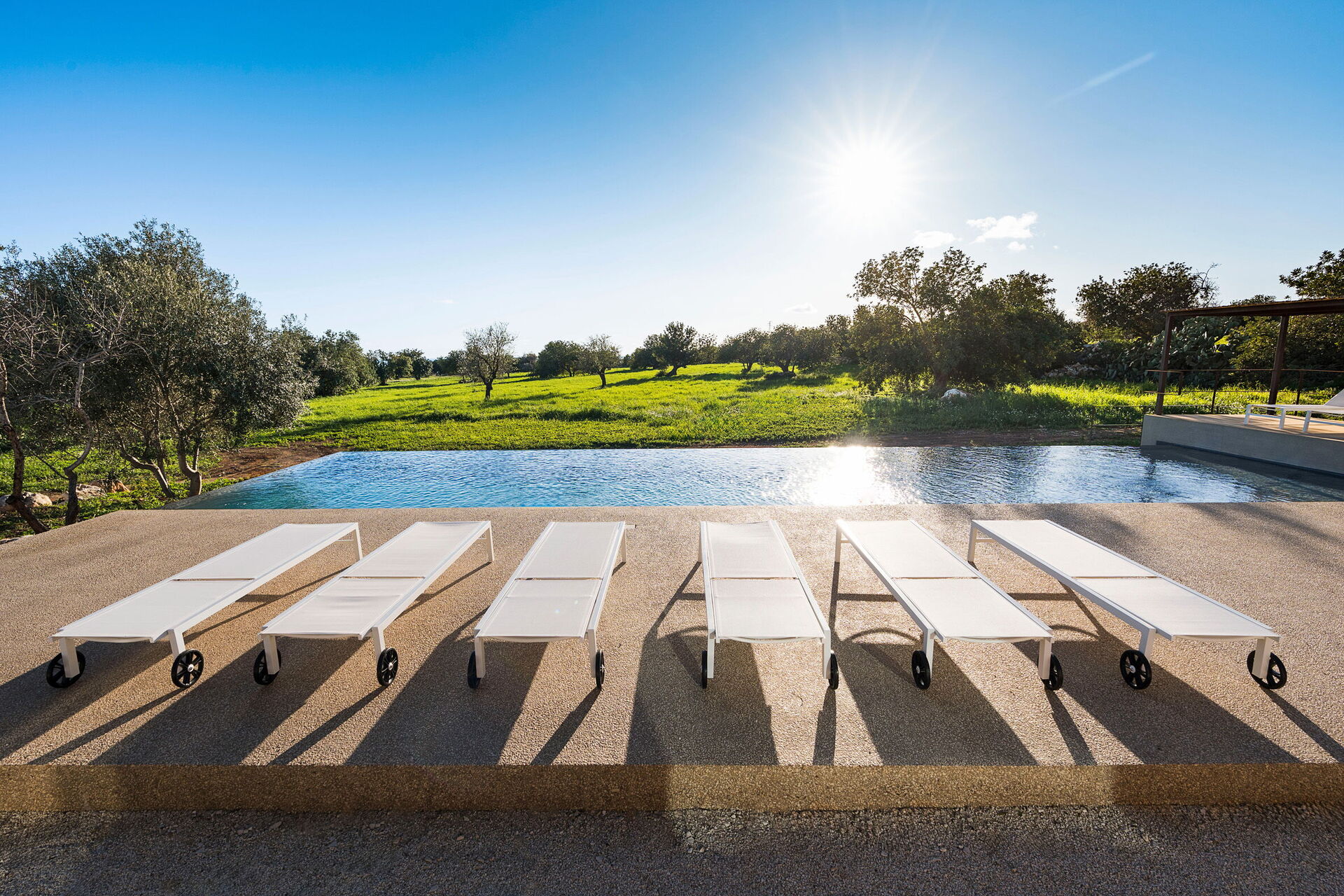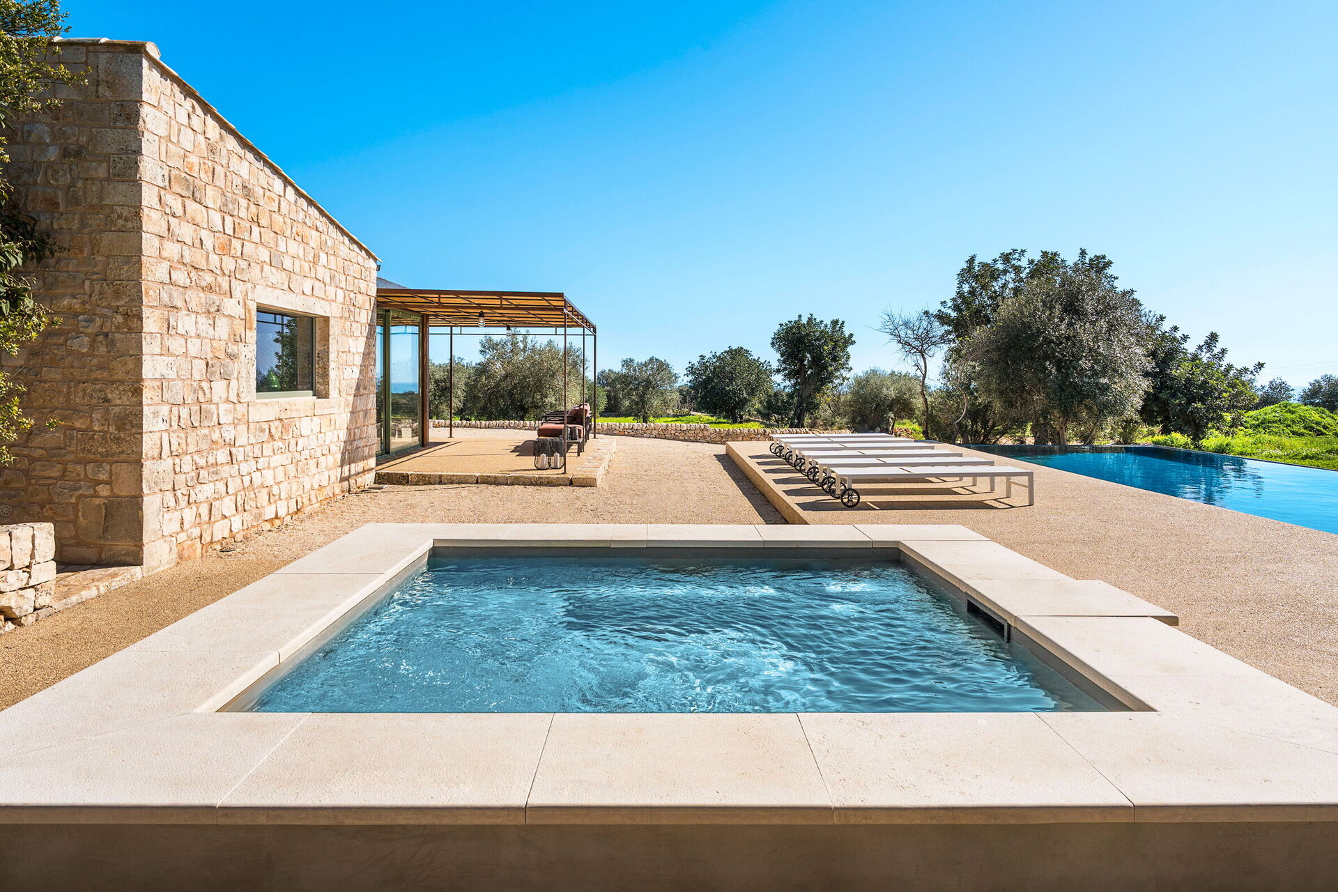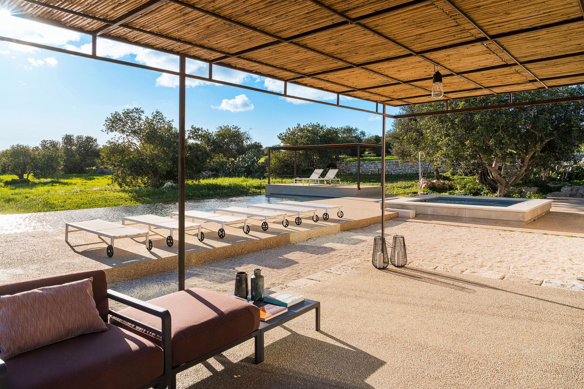 Les espaces extérieurs panoramiques offrent de nombreuses zones permettant aux hôtes de profiter pleinement de leur séjour en famille ou entre amis: il est possible de prendre des repas en plein air, de se détendre au bord de la piscine (équipée d’un système de filtration au sel) ou dans le solarium qui abrite également un bain à remous idéal pour vivre des moments inoubliables sous le soleil de la Sicile.