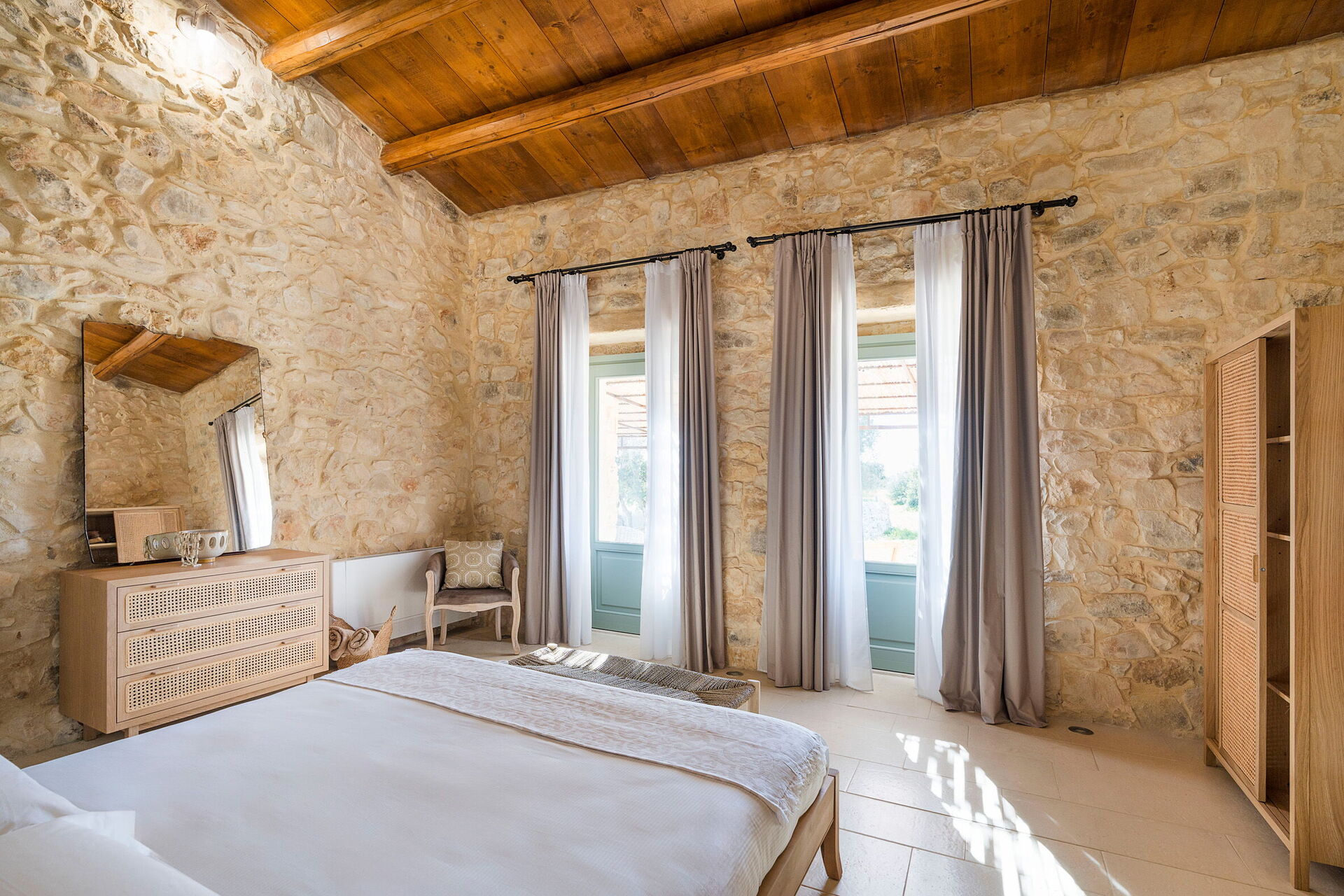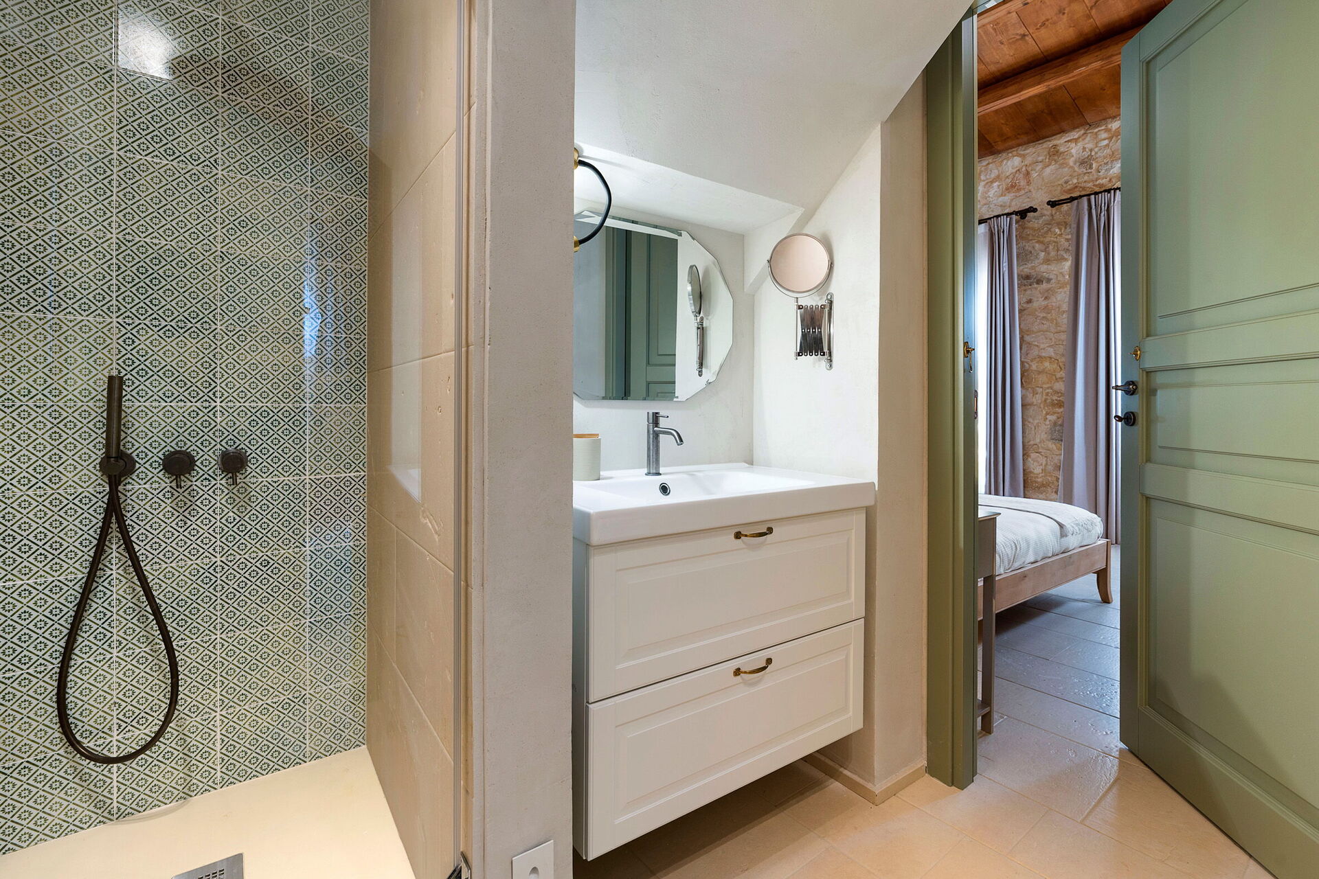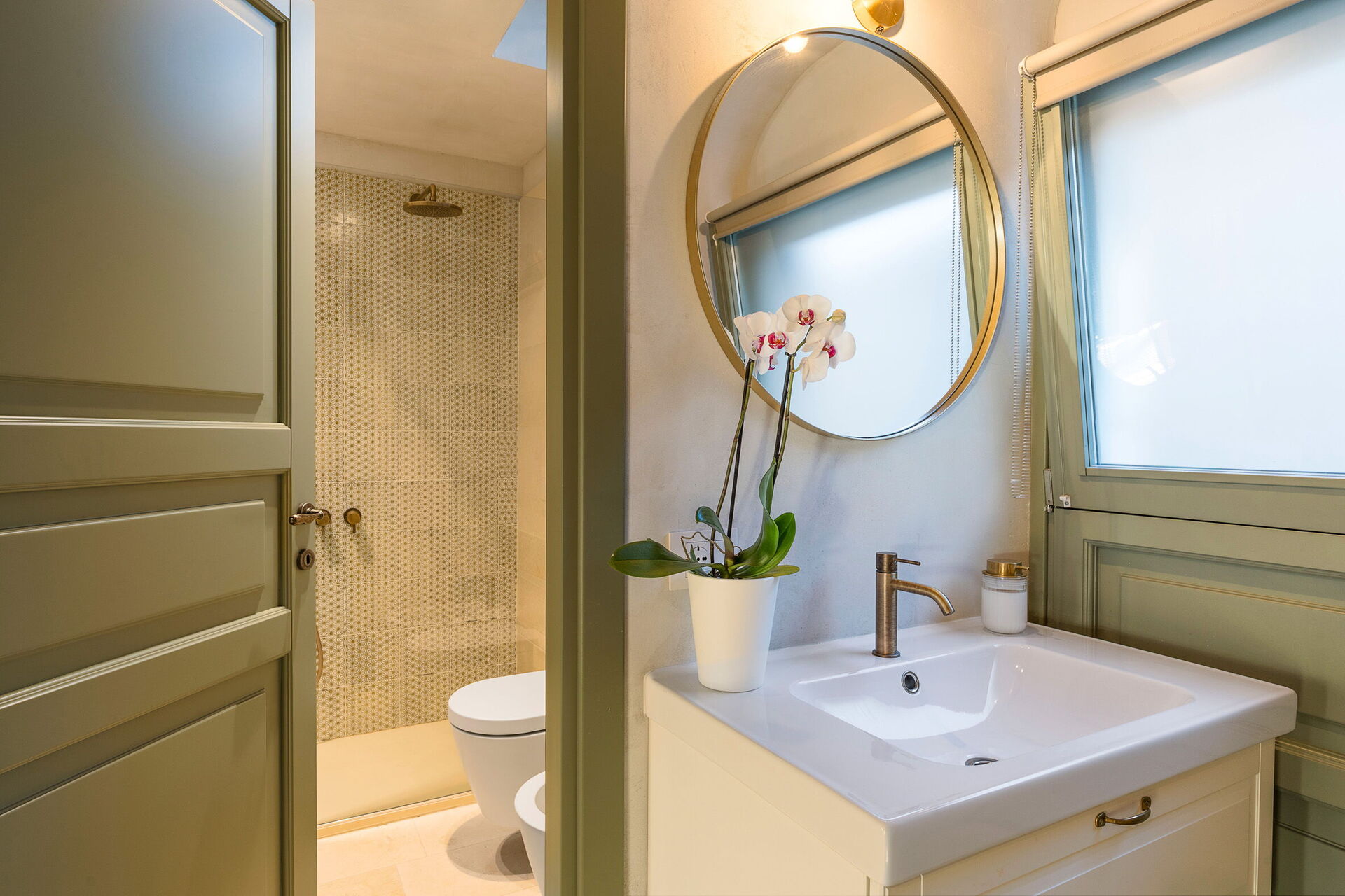 Rez-de-chaussée (accessible uniquement depuis l’extérieur et non relié depuis l’intérieur au reste de la villa): 2 chambres doubles (dimensions des lits: 180 x 200 cm) chacune avec salle de bain privée avec douche; chambre avec un lit double (dimensions du lit: 160 x 200 cm) et avec un lit simple ainsi que salle de bain privée avec douche; buanderie.
