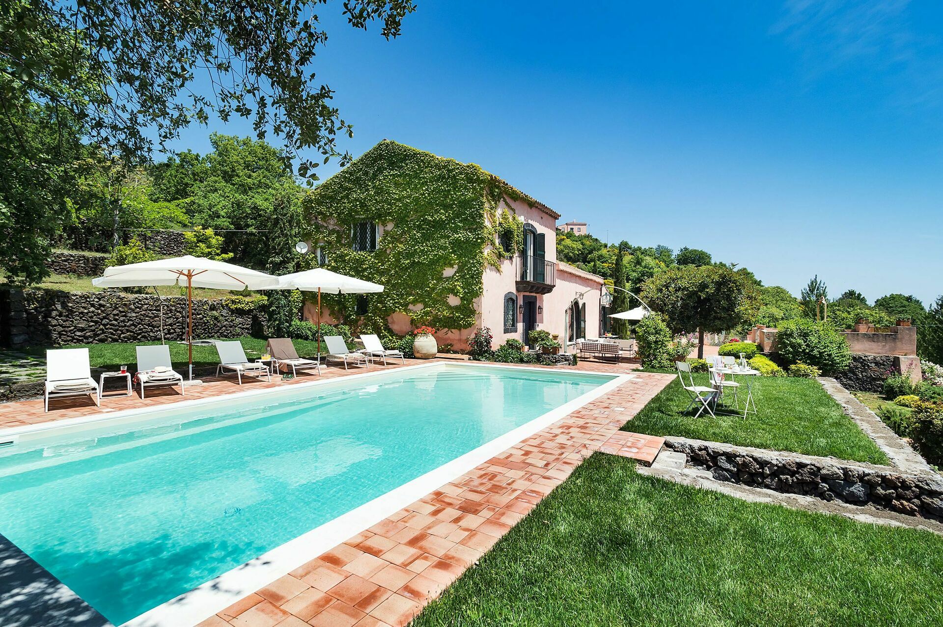 "Villa La Capinera" est une demeure avec piscine située sur les pentes de l'Etna, entre les caractéristiques villages de Zafferana Etnea et Trecastagni.