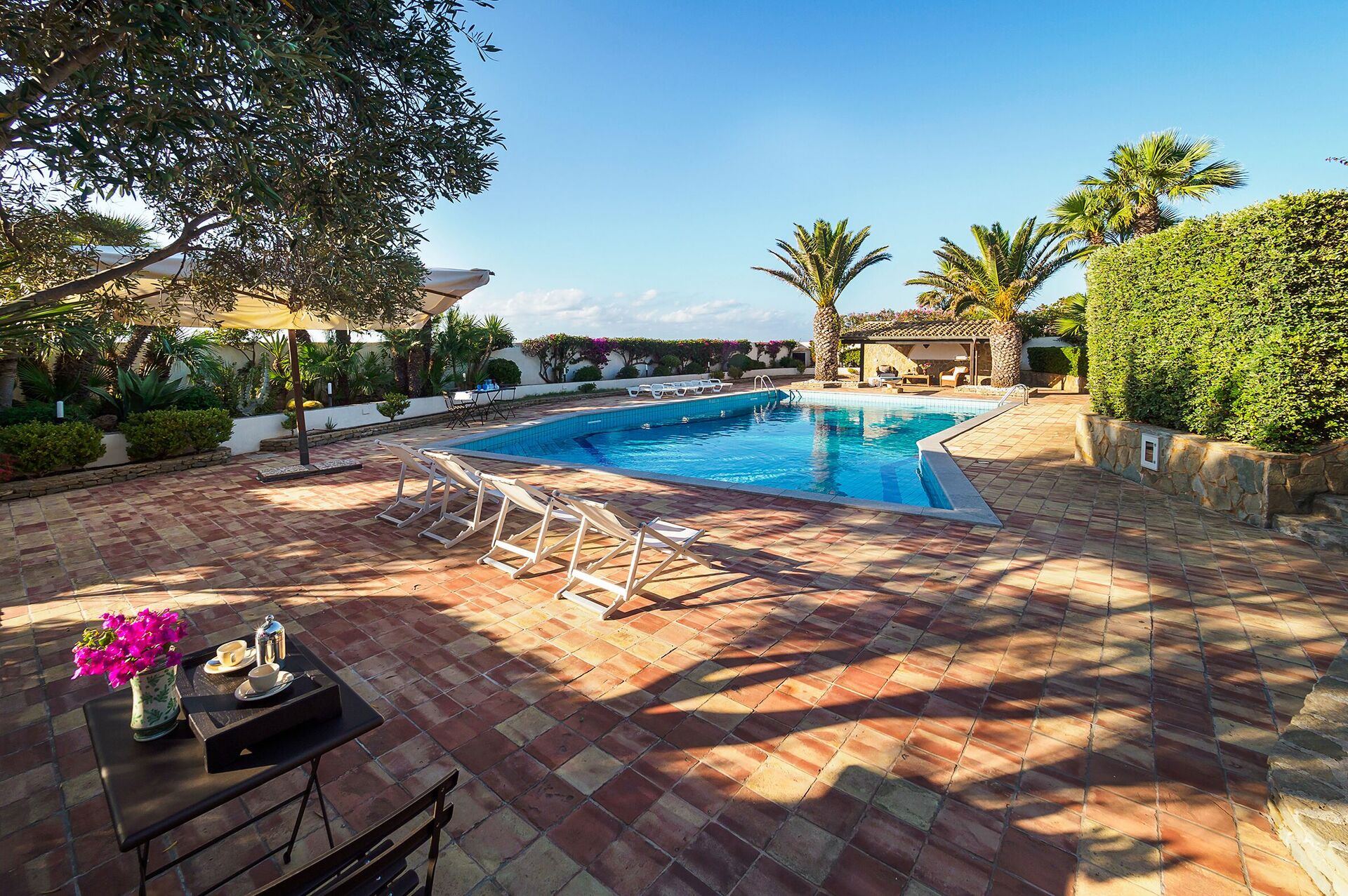 La villa dispose d'un jardin luxuriant bien entretenu, d'une belle piscine avec terrasse ensoleillée et de grandes terrasses bien équipées (barbecue et coin repas), idéales pour les petits déjeuners ou les repas en plein air.