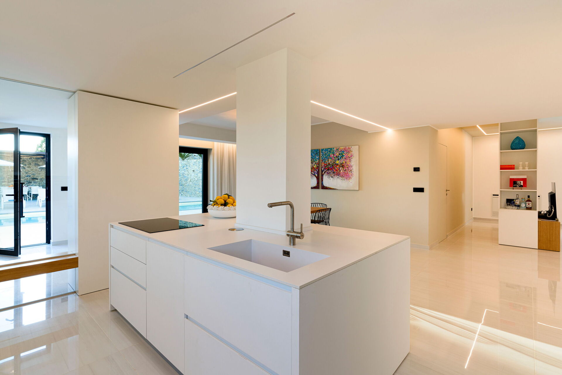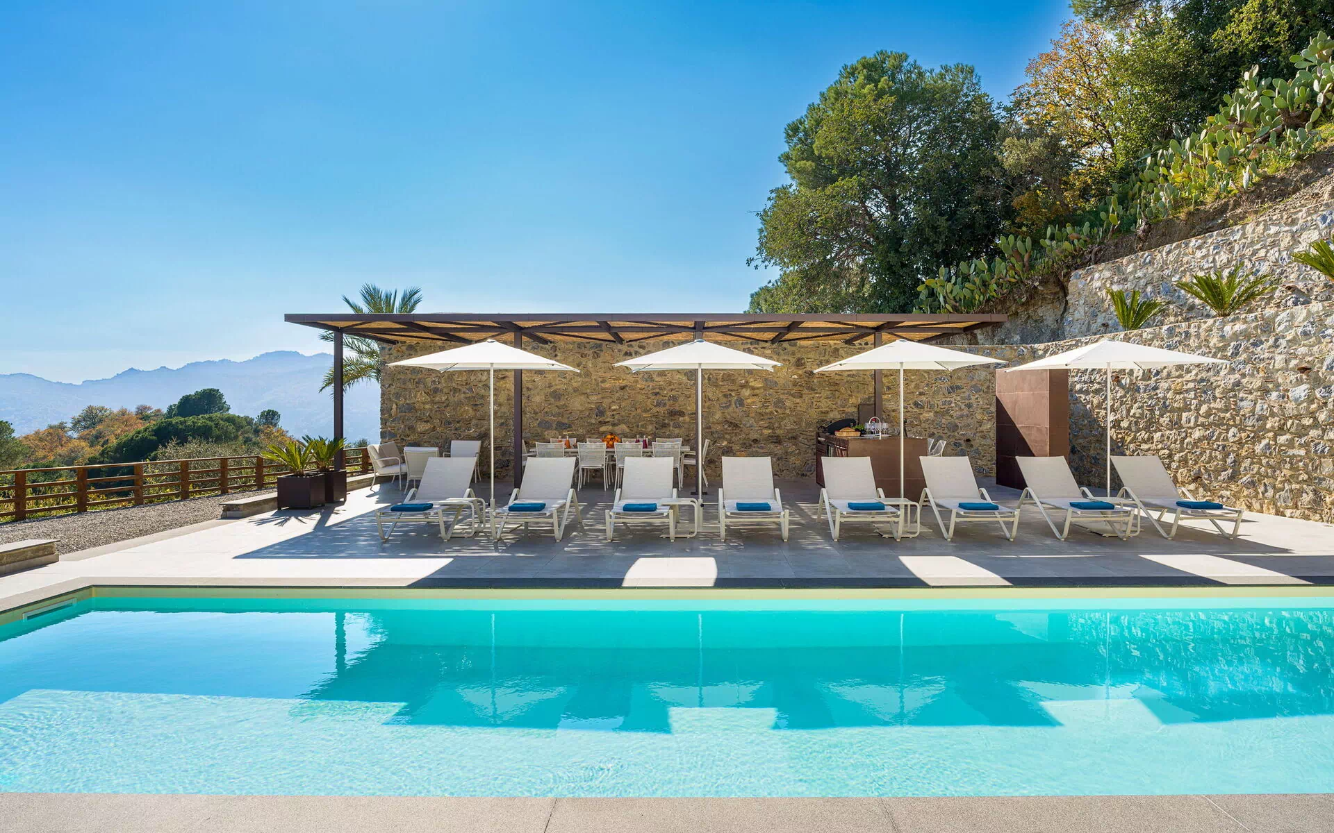 De grands espaces extérieurs tels que la zone solarium au bord de la piscine sont à la disposition des hôtes pour se détendre entre amis ou en famille en toute intimité. Un espace équipé sous un gazebo avec barbecue, coin bar, tables et chaises permet aux hôtes de manger en plein air tout en profitant de la vue panoramique.