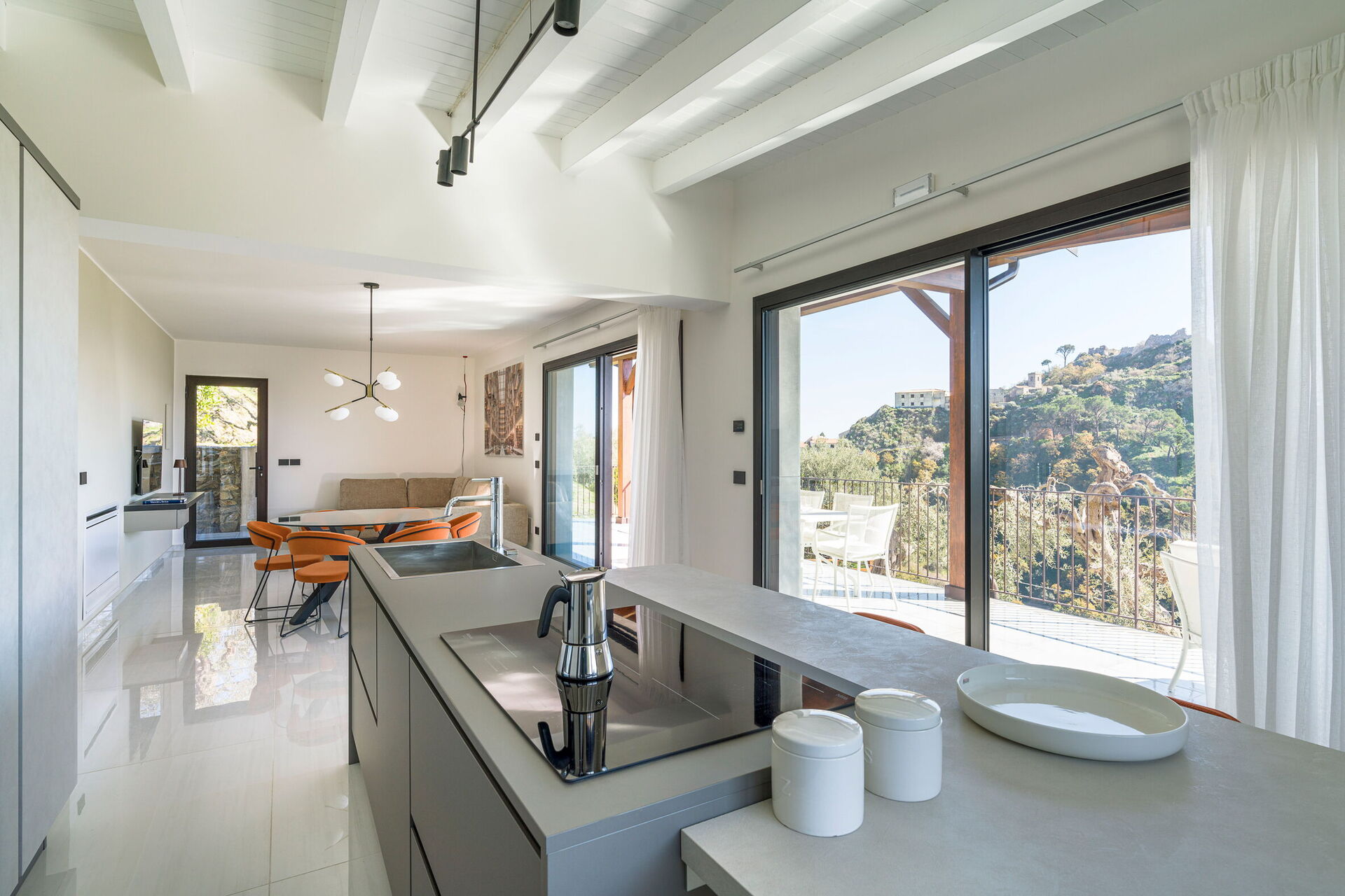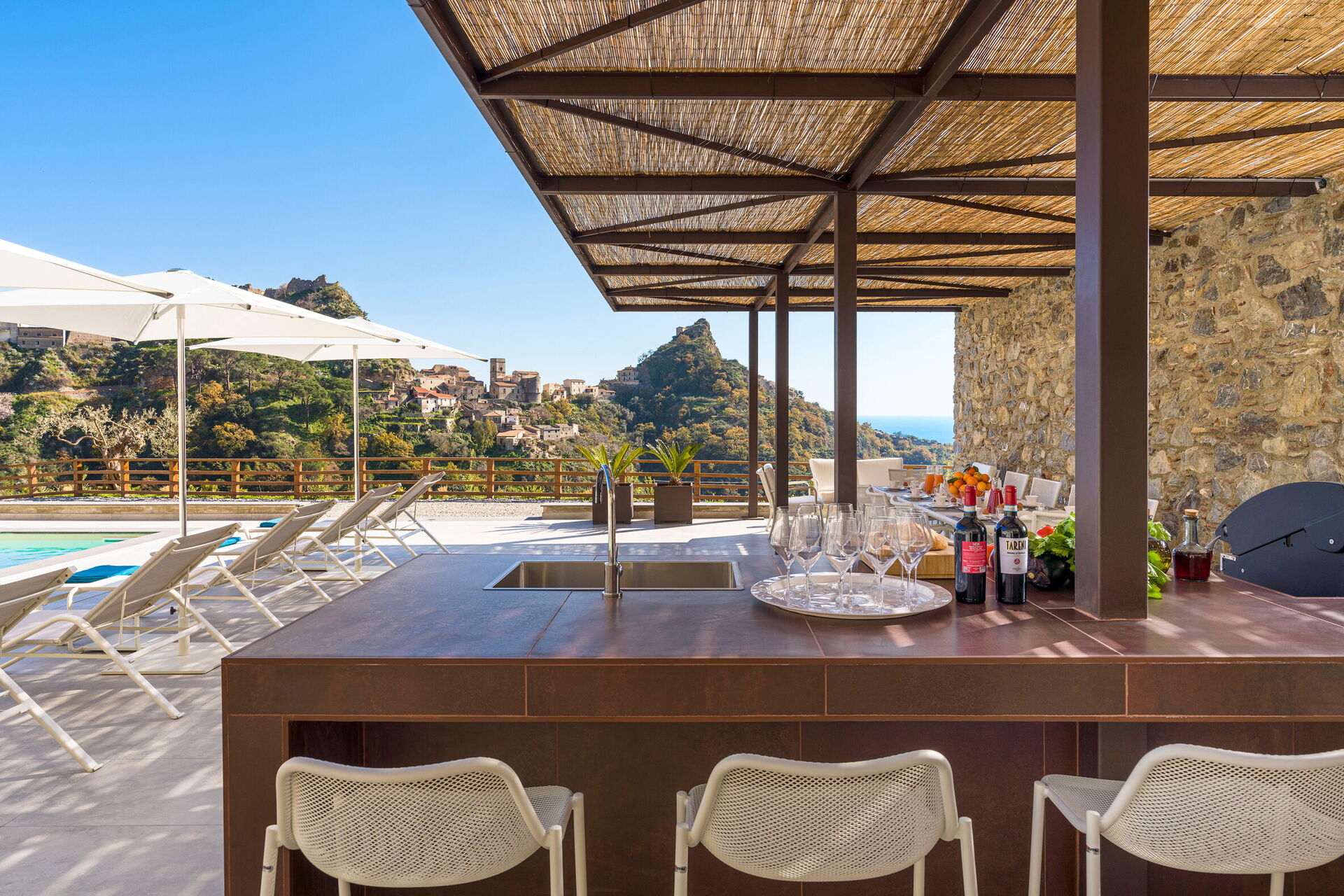 The villa has a really tranquile location with a beatiful view to the Sea and Savoca. The poolsite is great with outdoor kitchen and dinner table.
