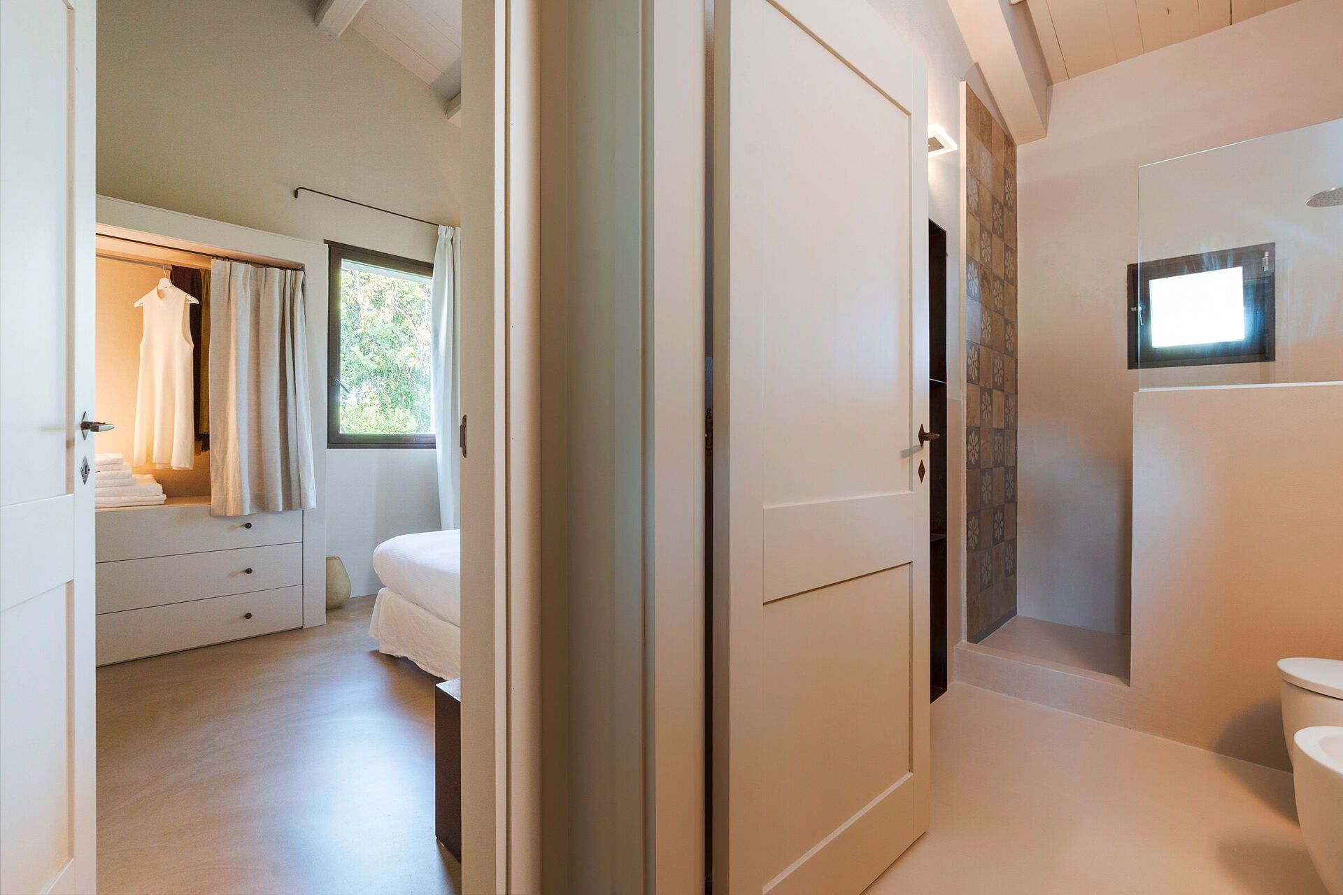 Rez-de-chaussée: séjour/salle à manger, cuisine, 2 chambres doubles, une chambre avec 2 lits à une place, 2 salles de bains avec douche.