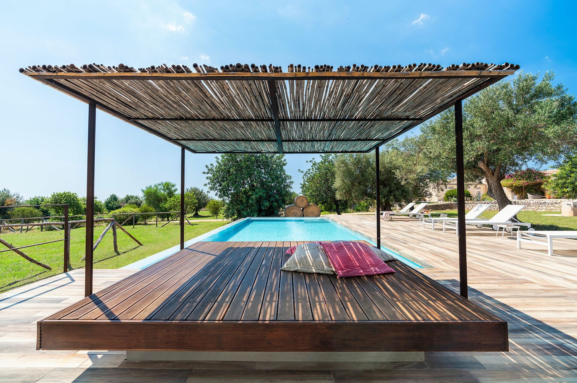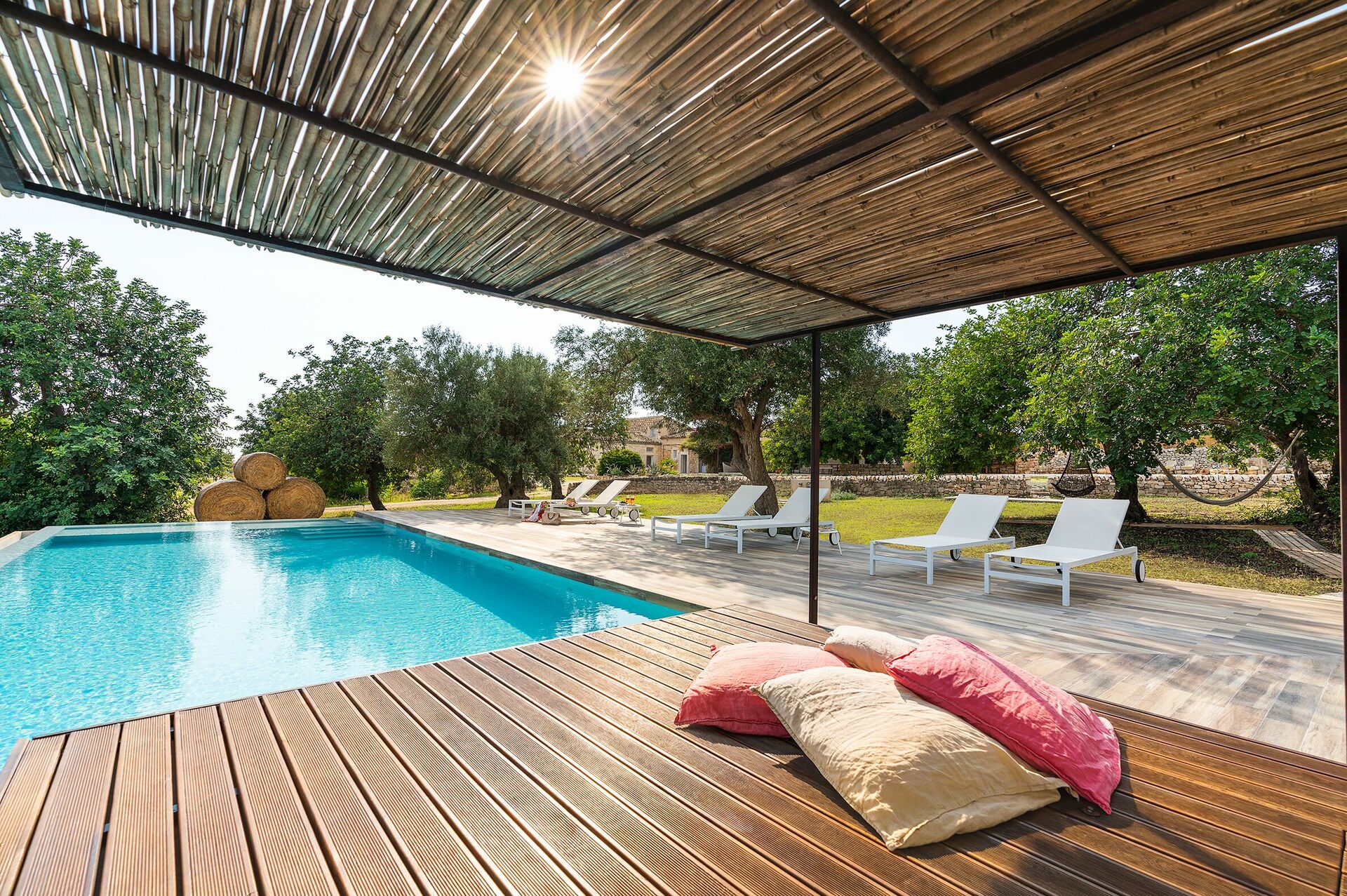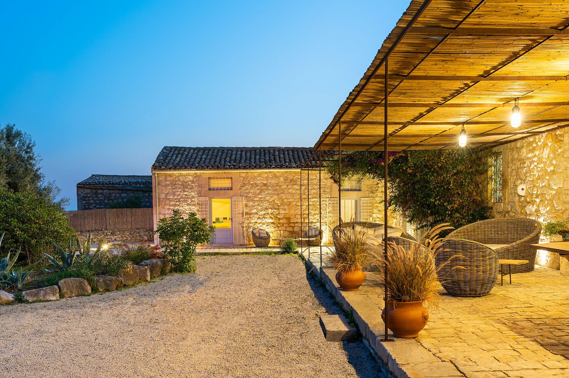 Villa Dimora Pura est une demeure exclusive, idéale pour passer d’inoubliables vacances en famille ou entre amis en Sicile. Grâce à ses 6 chambres (dont une soupente), la maison peut confortablement accueillir 10/12 personnes. Position tranquille et panoramique proche de Scicli (magnifique ville baroque inscrite au patrimoine UNESCO en 2002). Un grand parc naturel, qui entoure la maison, garantit privacy totale. Belles façades pierres apparentes.