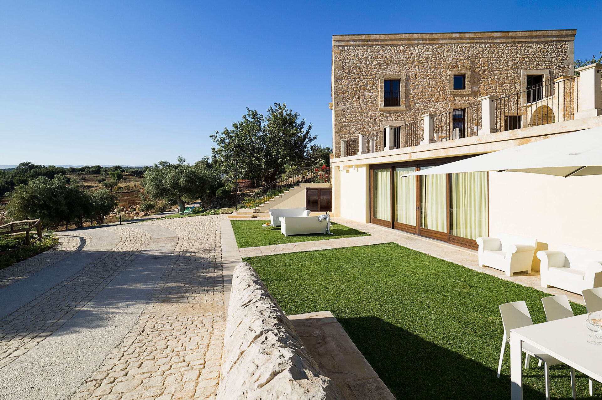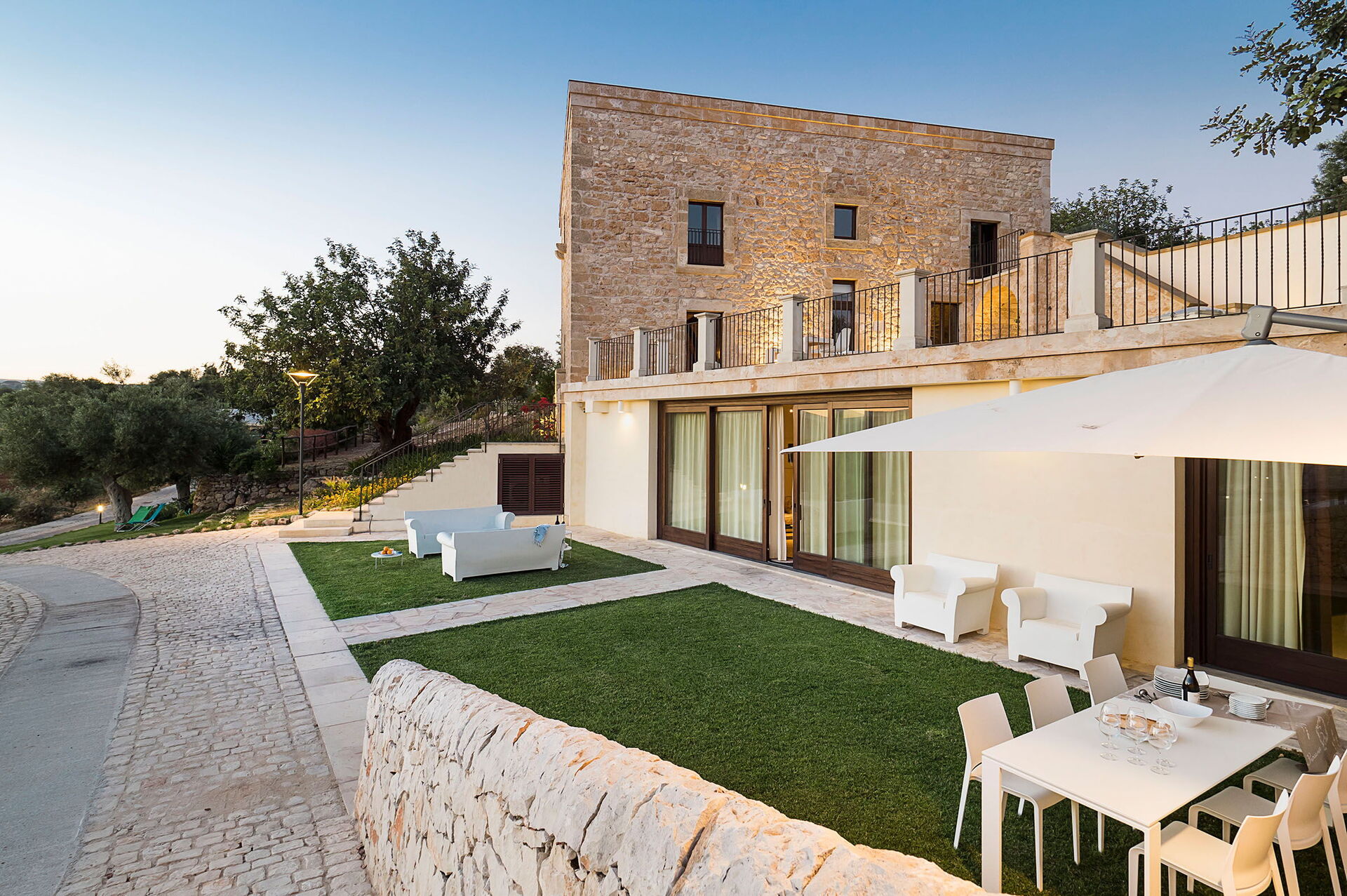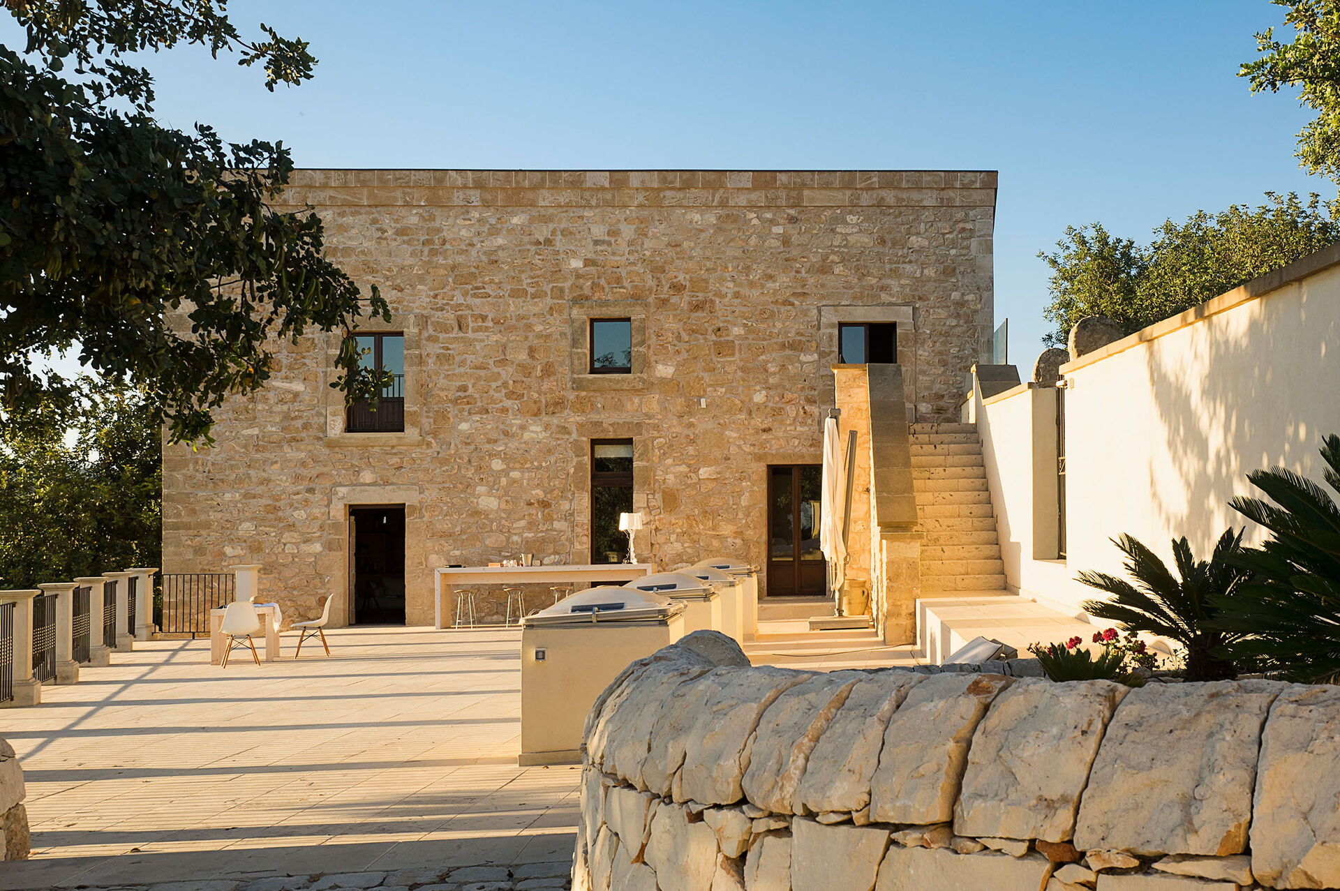 Elle dispose d’une piscine privée et d’un petit centre de bien-être à disposition des hôtes. Elle est située en Sicile à côté de Scicli, une ville baroque historique classée au patrimoine mondial de l’Unesco. Le paysage sicilien typique entoure la propriété: champs d’oliviers, caroubiers et murs blancs en pierres sèches embellissent les environs et soulignent leur beauté naturelle.