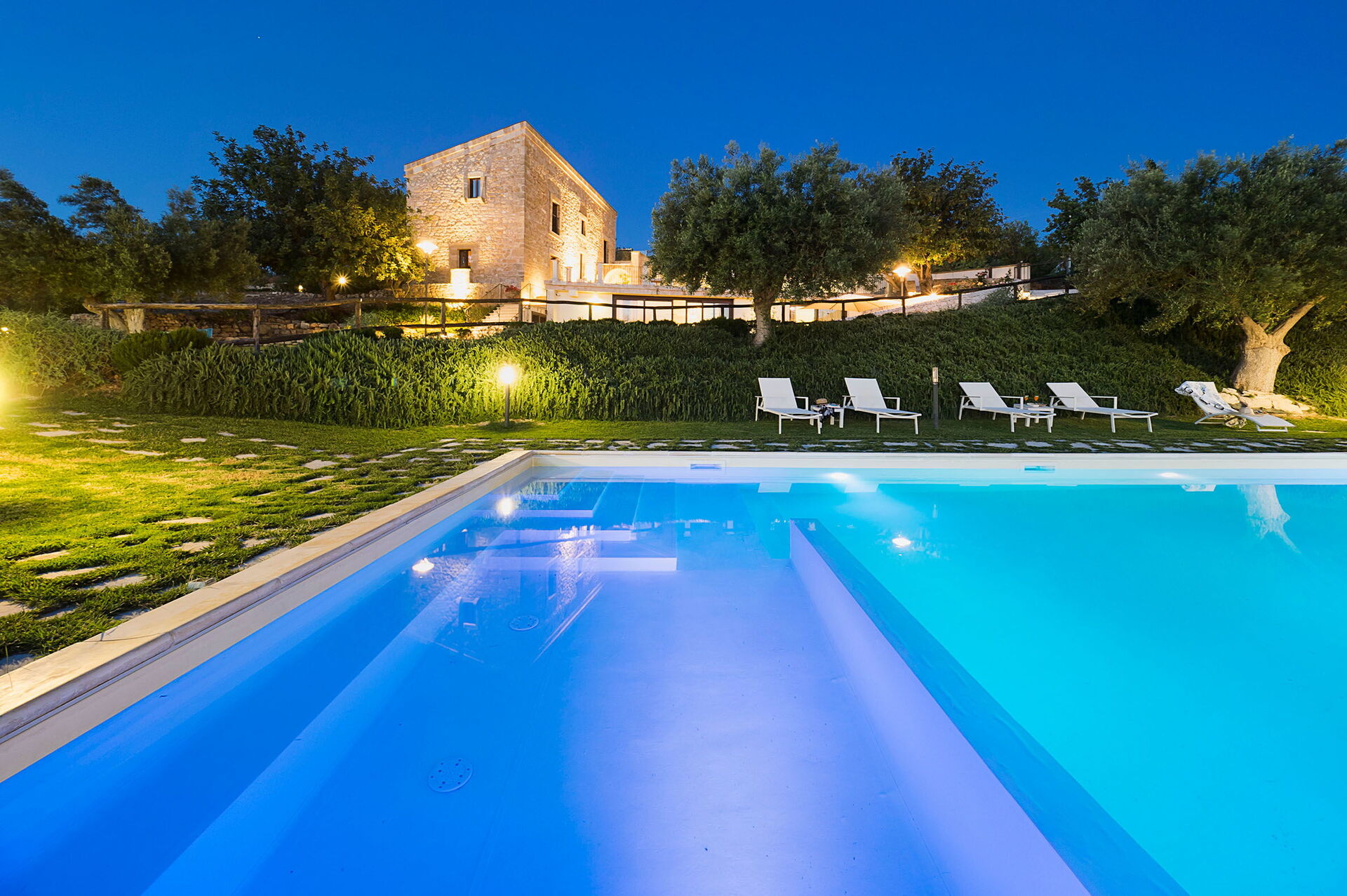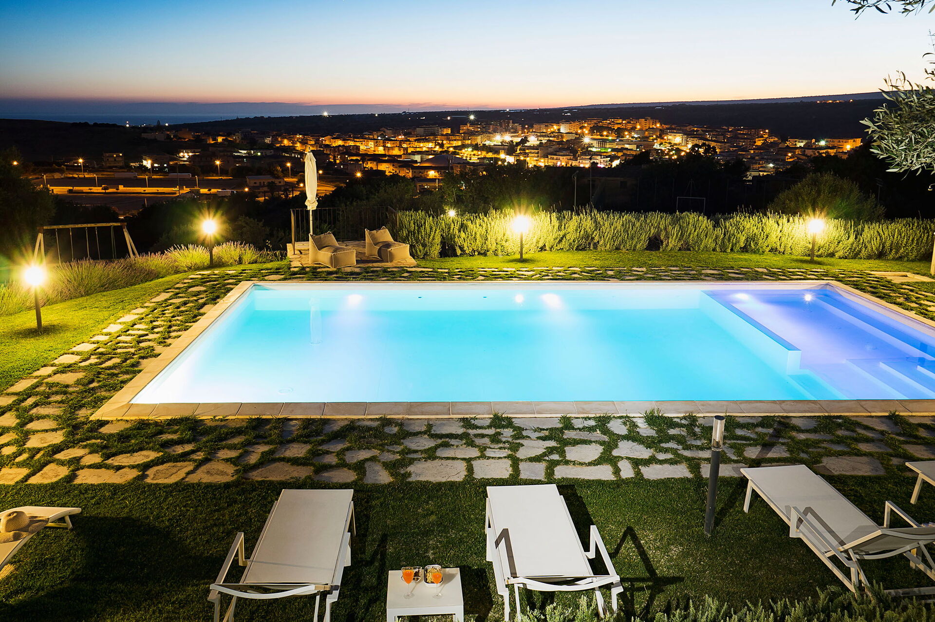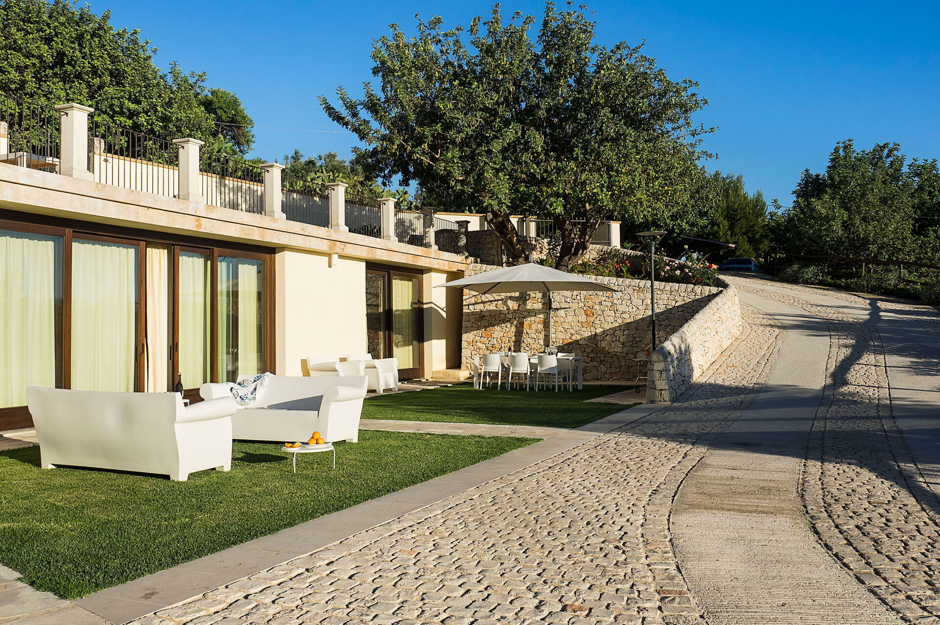 Elle dispose d’une piscine privée et d’un petit centre de bien-être à disposition des hôtes. Elle est située en Sicile à côté de Scicli, une ville baroque historique classée au patrimoine mondial de l’Unesco. Le paysage sicilien typique entoure la propriété: champs d’oliviers, caroubiers et murs blancs en pierres sèches embellissent les environs et soulignent leur beauté naturelle.