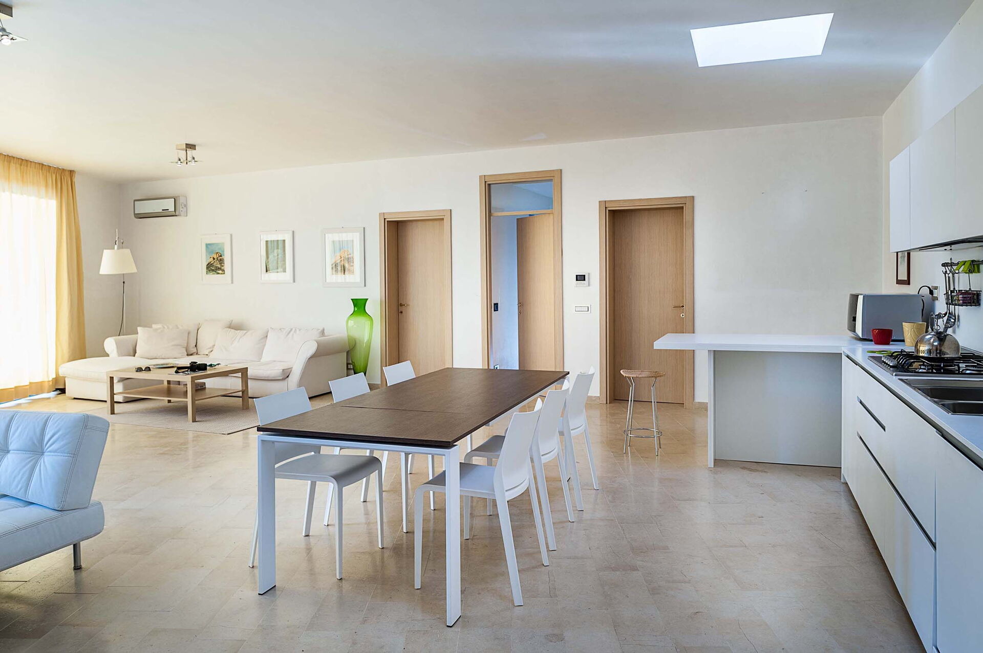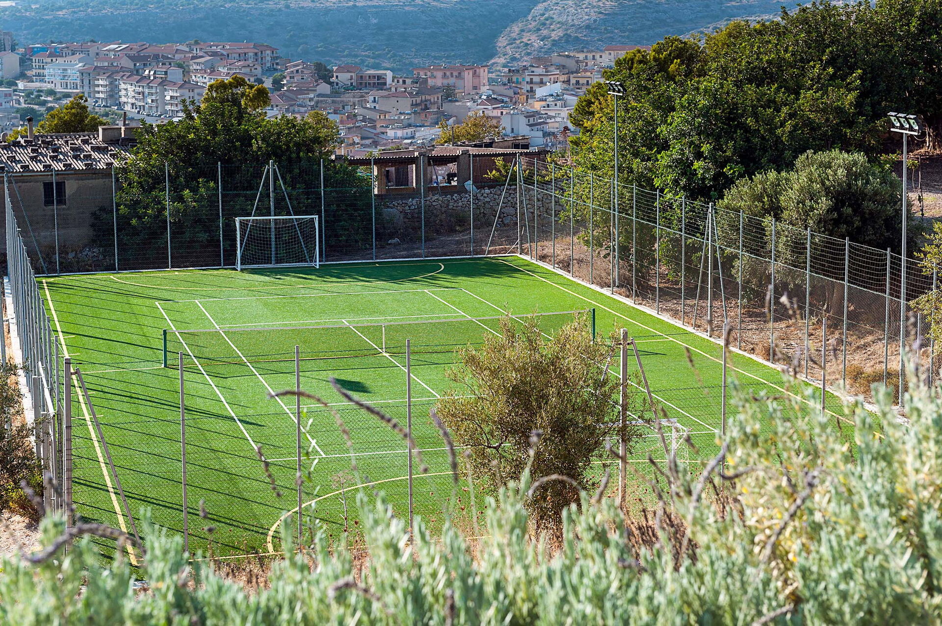 Cette belle villa de vacances en Sicile a été récemment rénovée et est répartie sur 3 étages: les pièces sont accueillantes et bien meublées avec des meubles au design contemporains. Son confort moderne rend cette demeure particulièrement adaptée aux vacances, vous ne serez pas déçus par la Villa Corte Dorata. À l’extérieur, il y a des espaces exclusifs dédiés aux jeux, aux loisirs et à la détente, tels que la grande piscine, le jardin bien entretenu, le terrain de tennis/football à 5 avec gazon synthétique et l’espace bien-être avec sauna, bain turc, jacuzzi et douche émotionnelle.