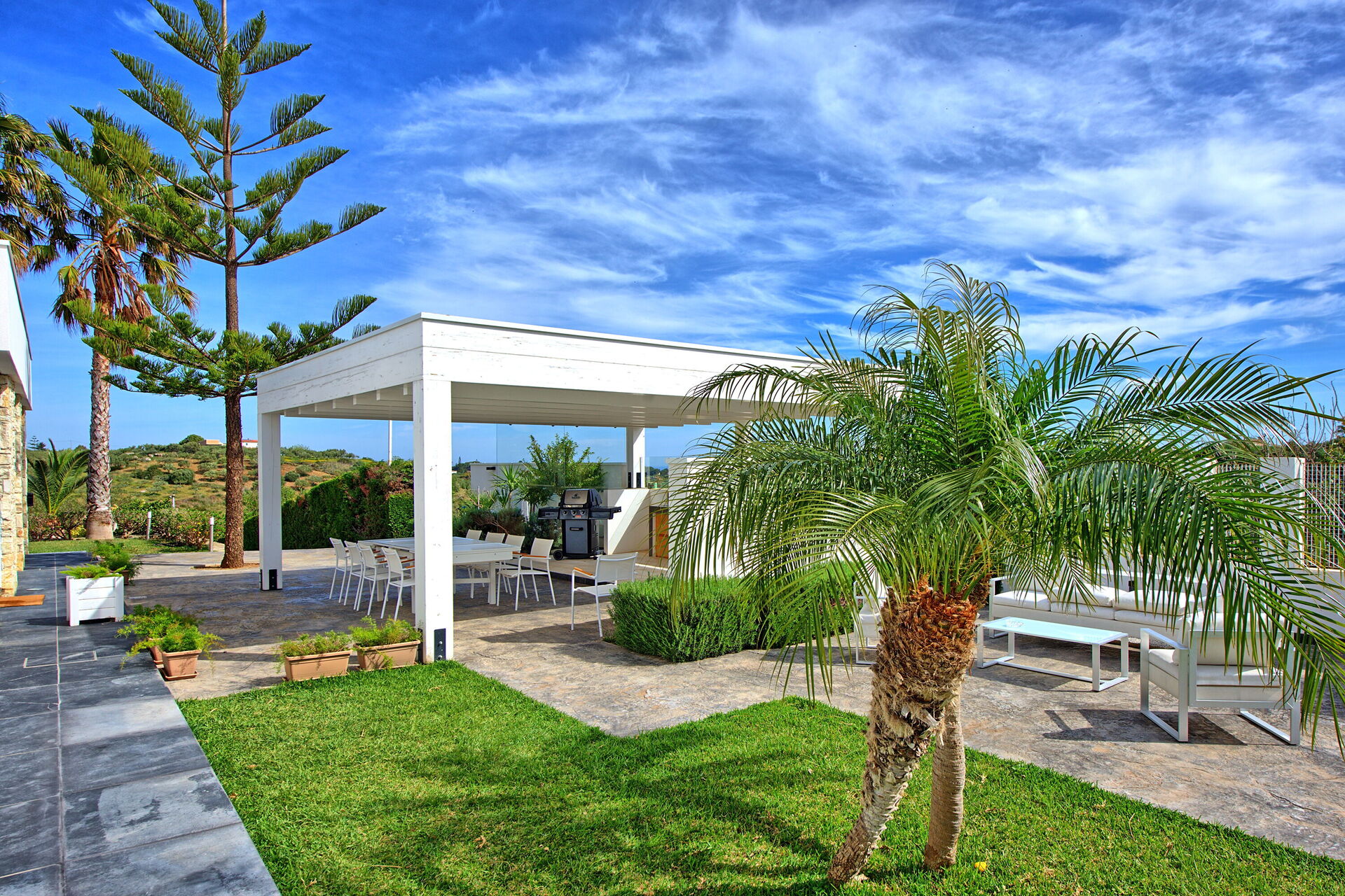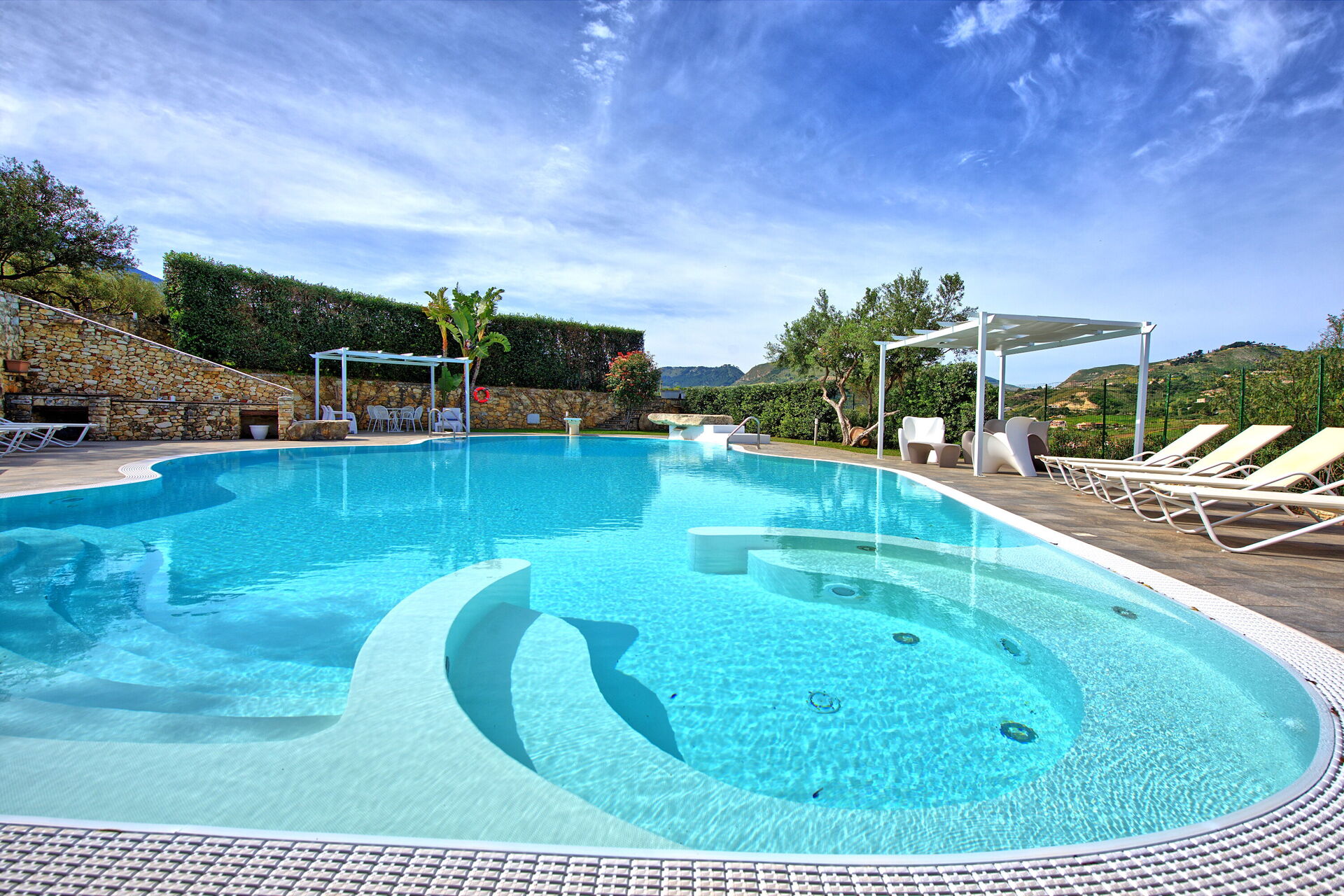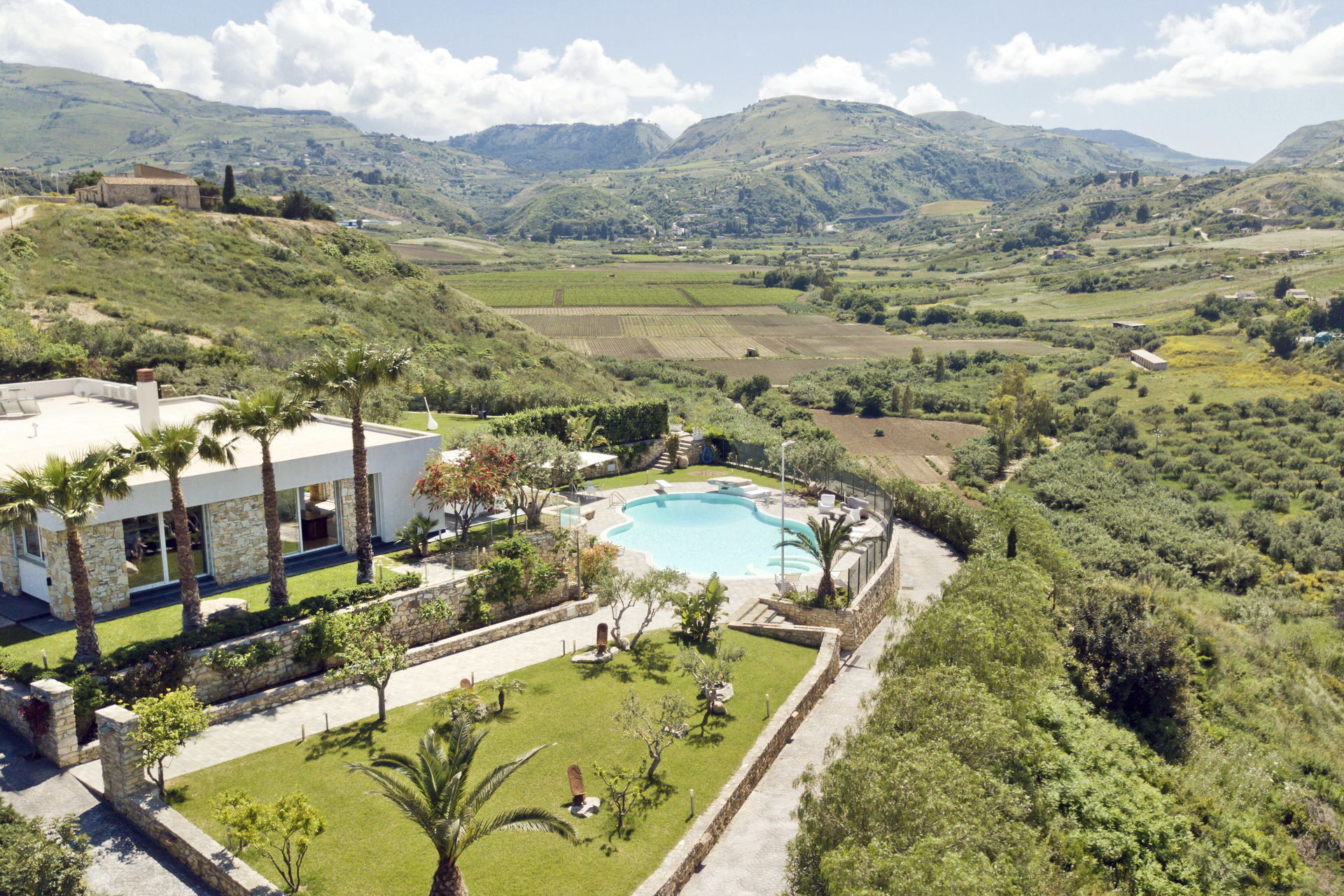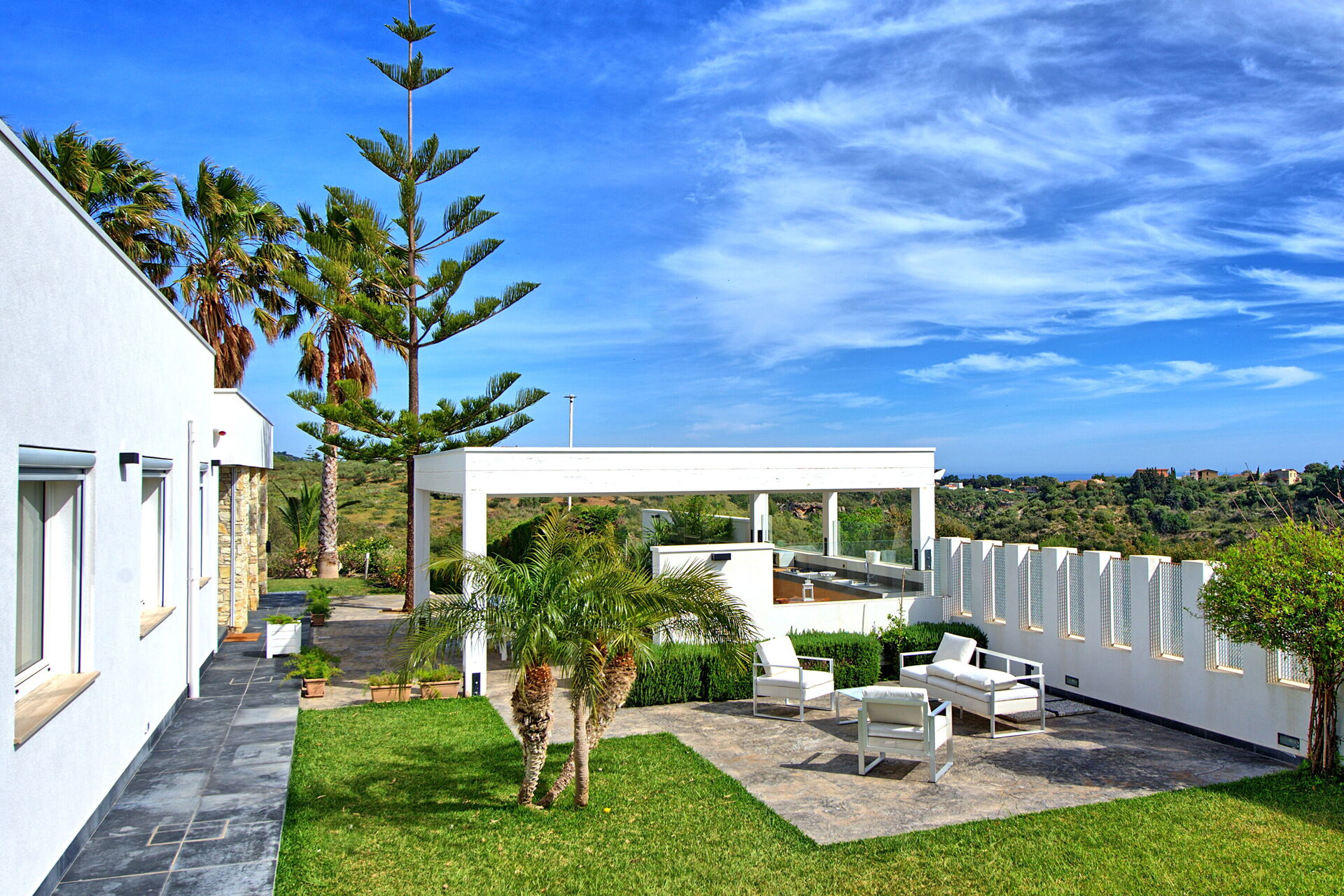 Cette villa à louer jouit d'un emplacement spectaculaire avec une vue panoramique sur la campagne sicilienne et la mer, que vous pourrez admirer aussi bien depuis la piscine que les grandes terrasses.