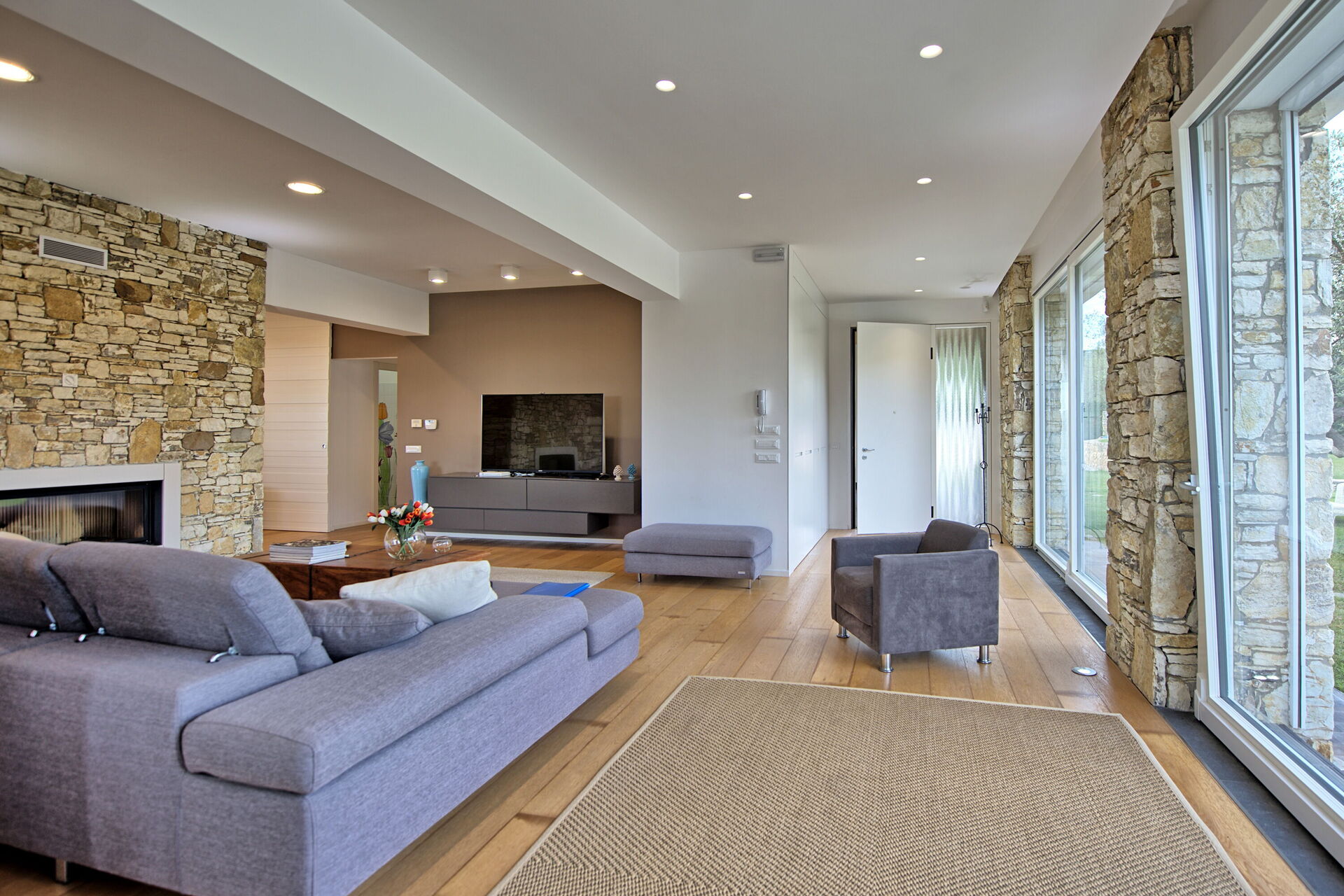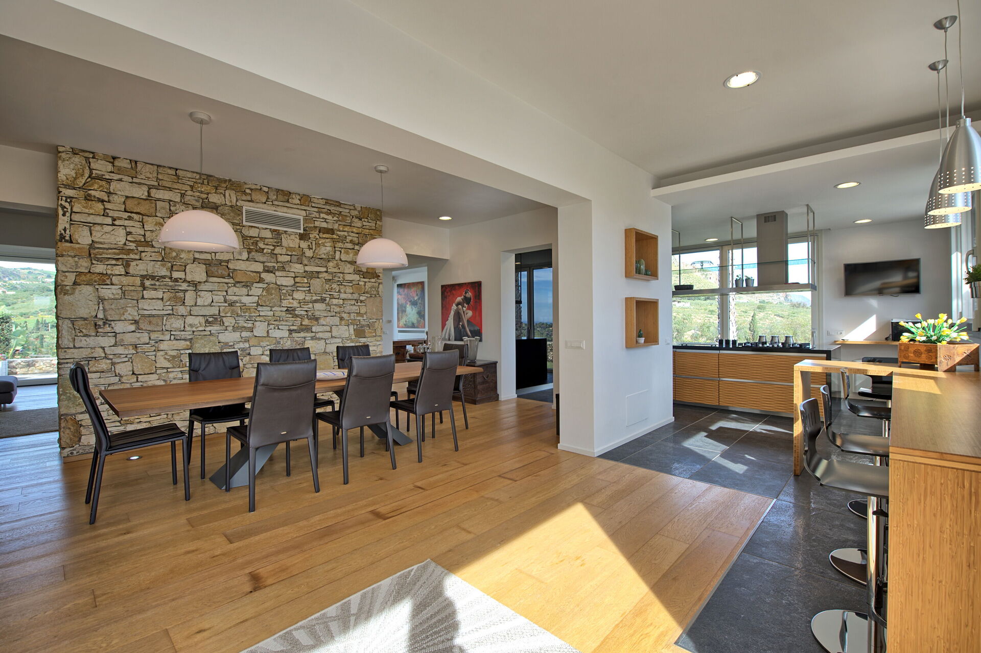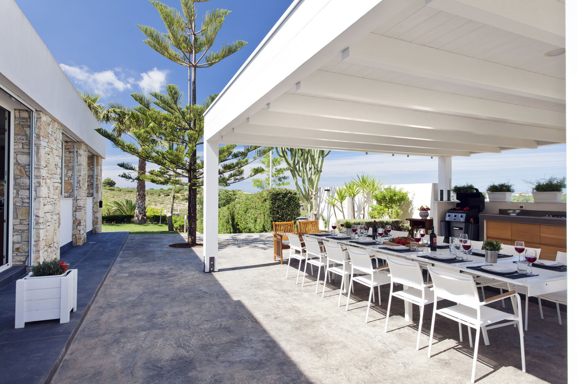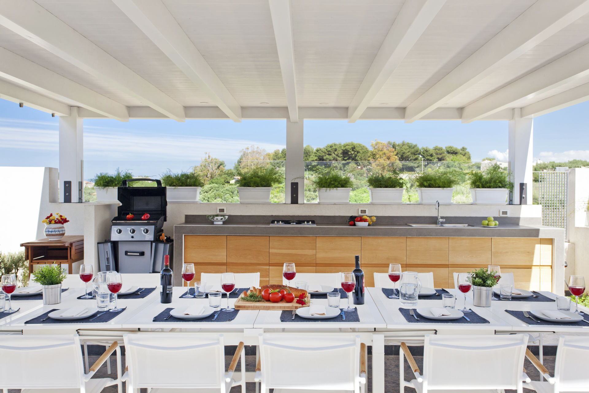 De grands espaces extérieurs tels que la zone solarium au bord de la piscine et un fantastique coin d'hydromassage sont à la disposition des hôtes pour se détendre avec leurs amis et leur famille en toute intimité. La fantastique véranda équipée, située devant la villa, vous permettra de manger et de cuisiner en plein air tout en profitant du climat méditerranéen.
