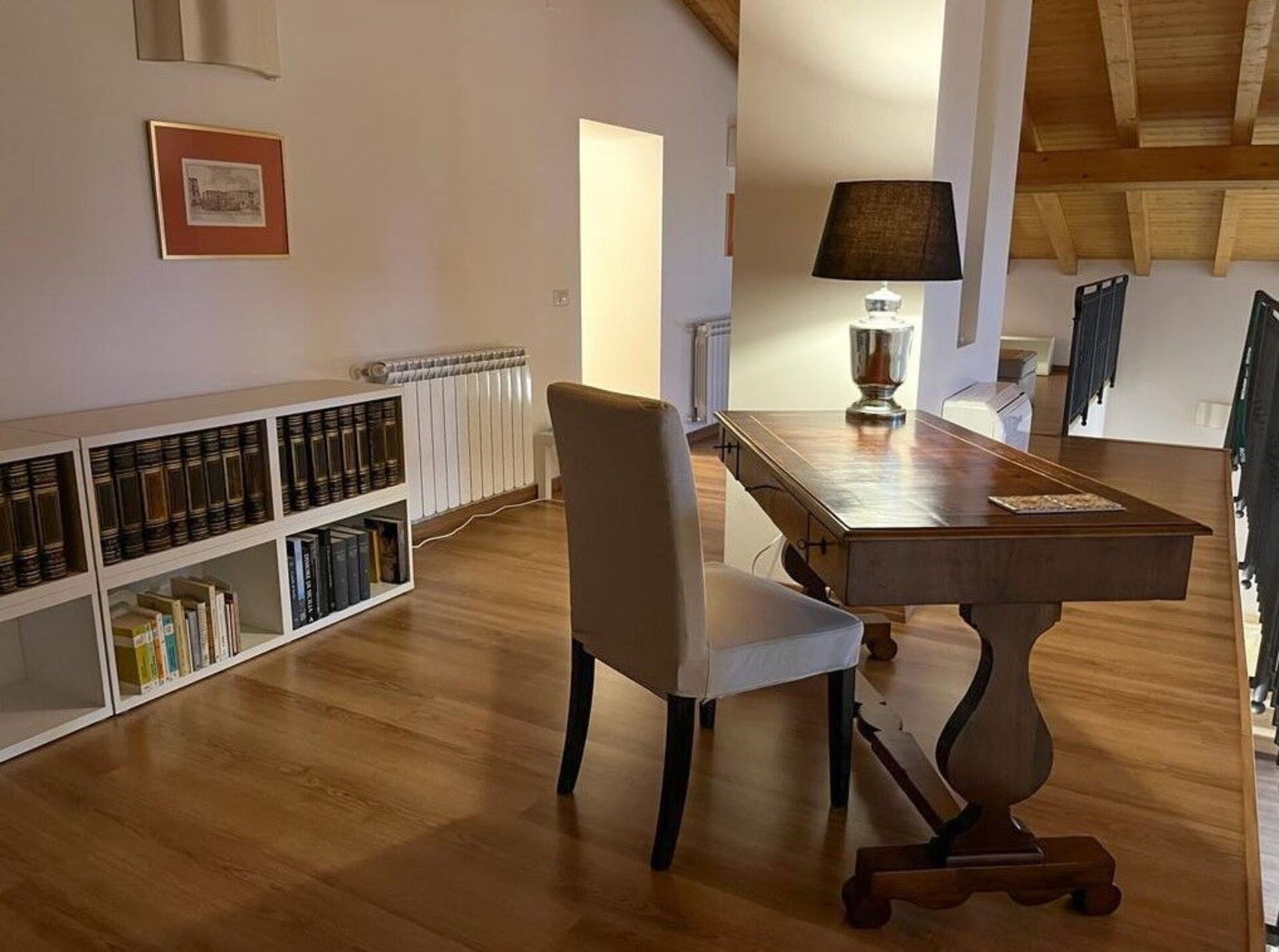 Premier étage: petit salon-bureau (aménagé en mezzanine), chambre double, chambre avec 2 lits simples, salle de bain avec baignoire.