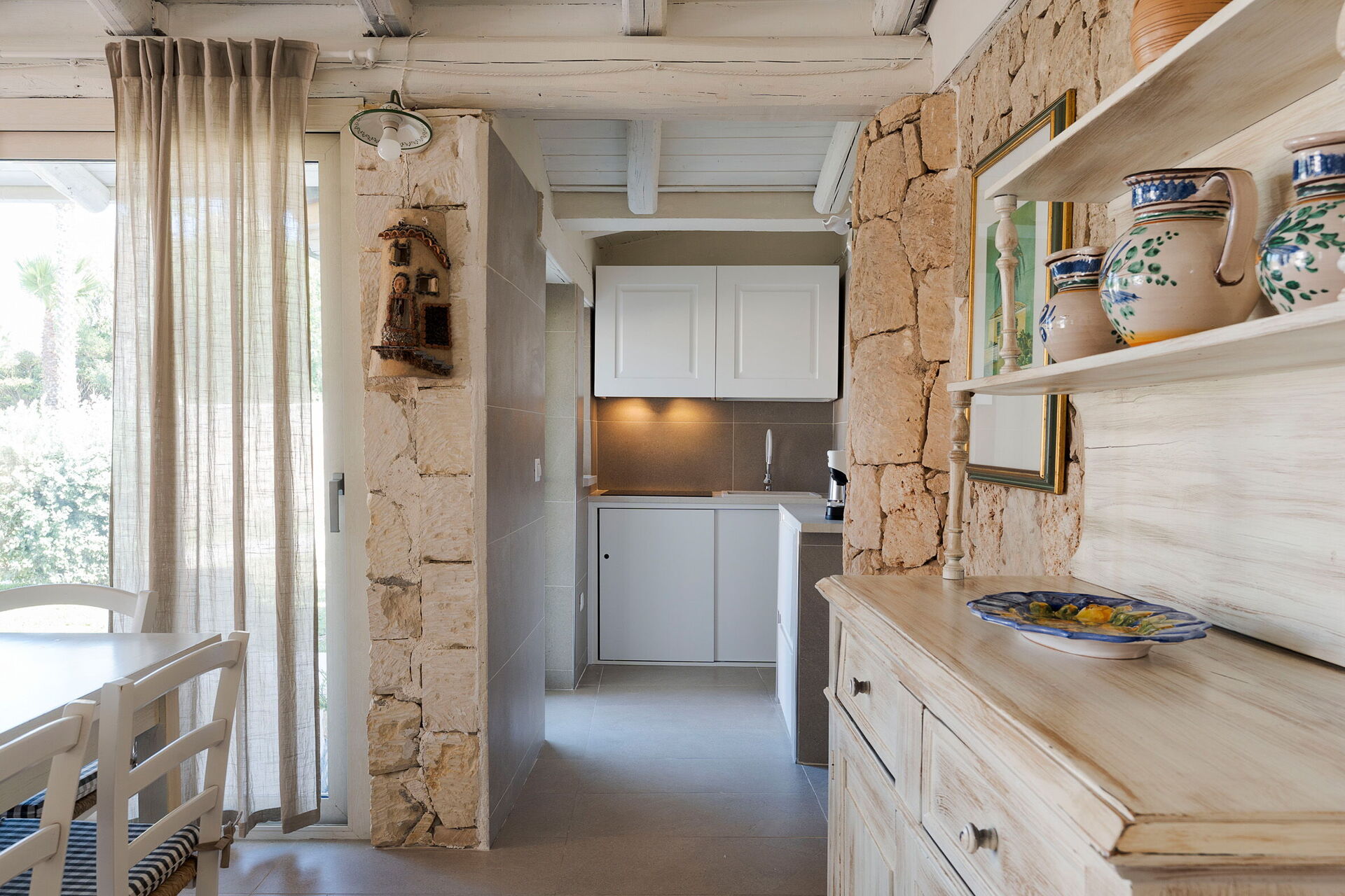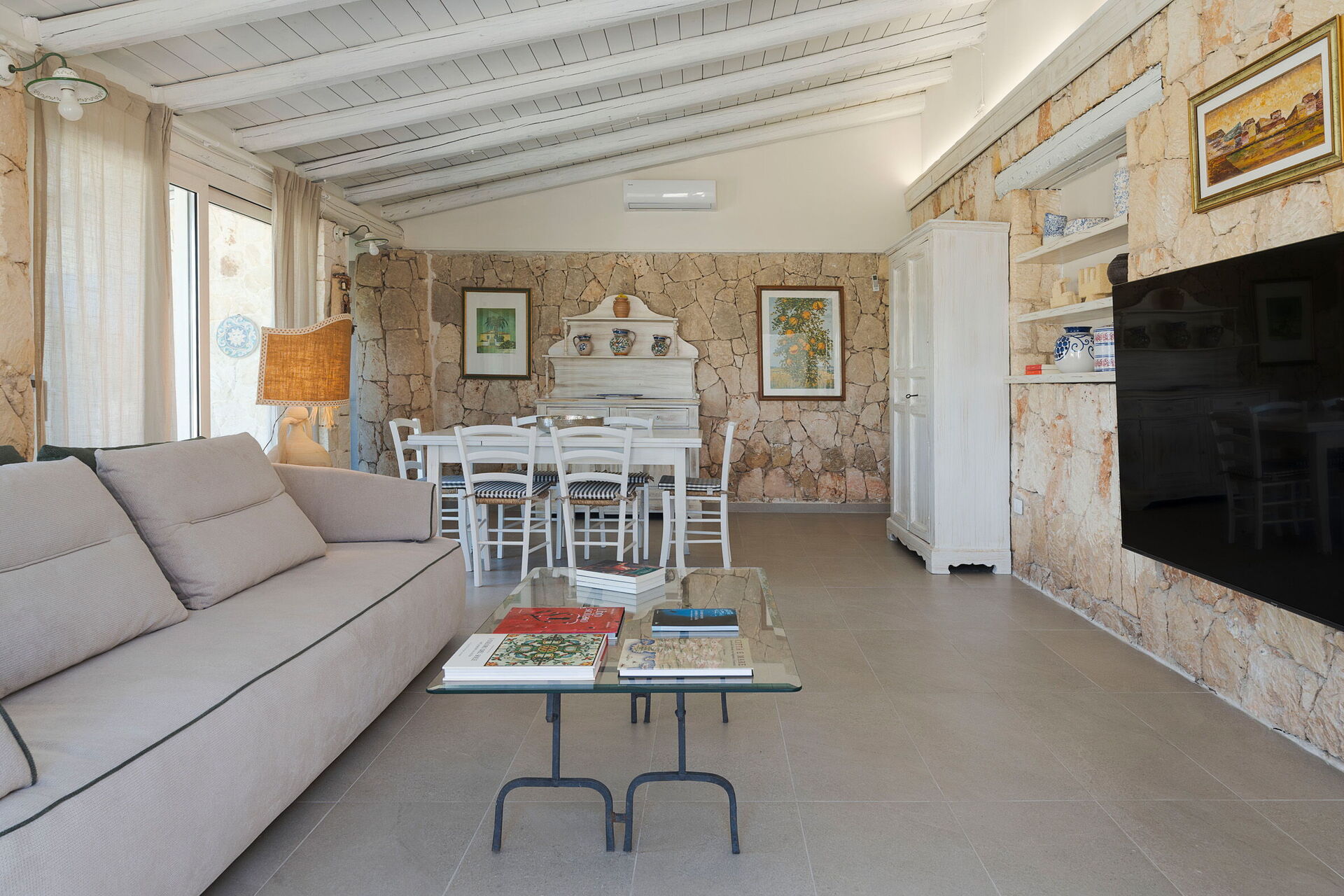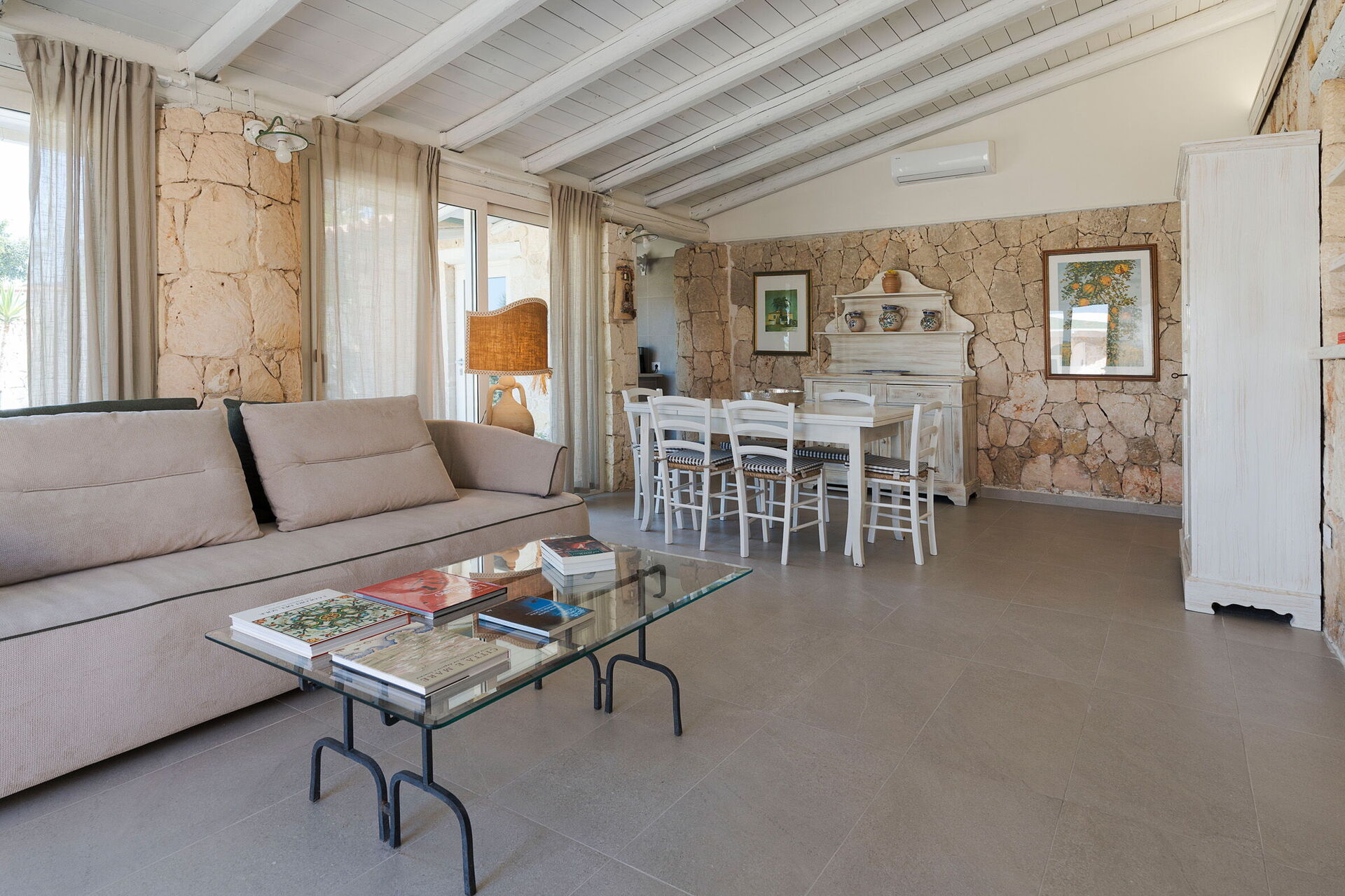 Composée de deux unités de logement, la Villa del Mito présente des intérieurs confortables meublés avec goût et confort.