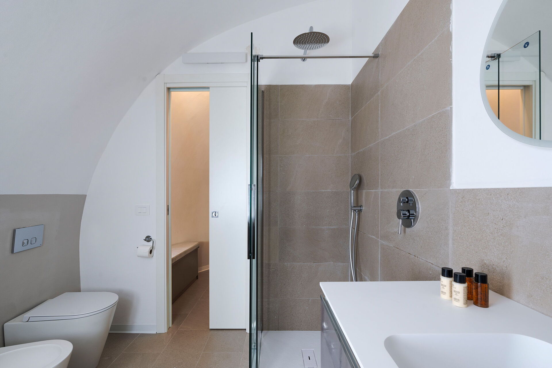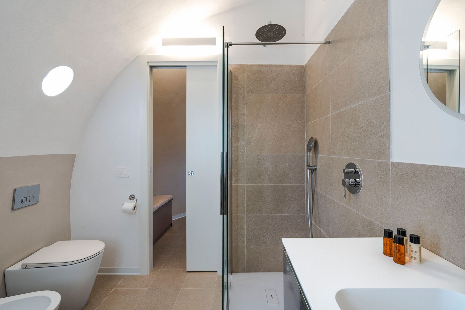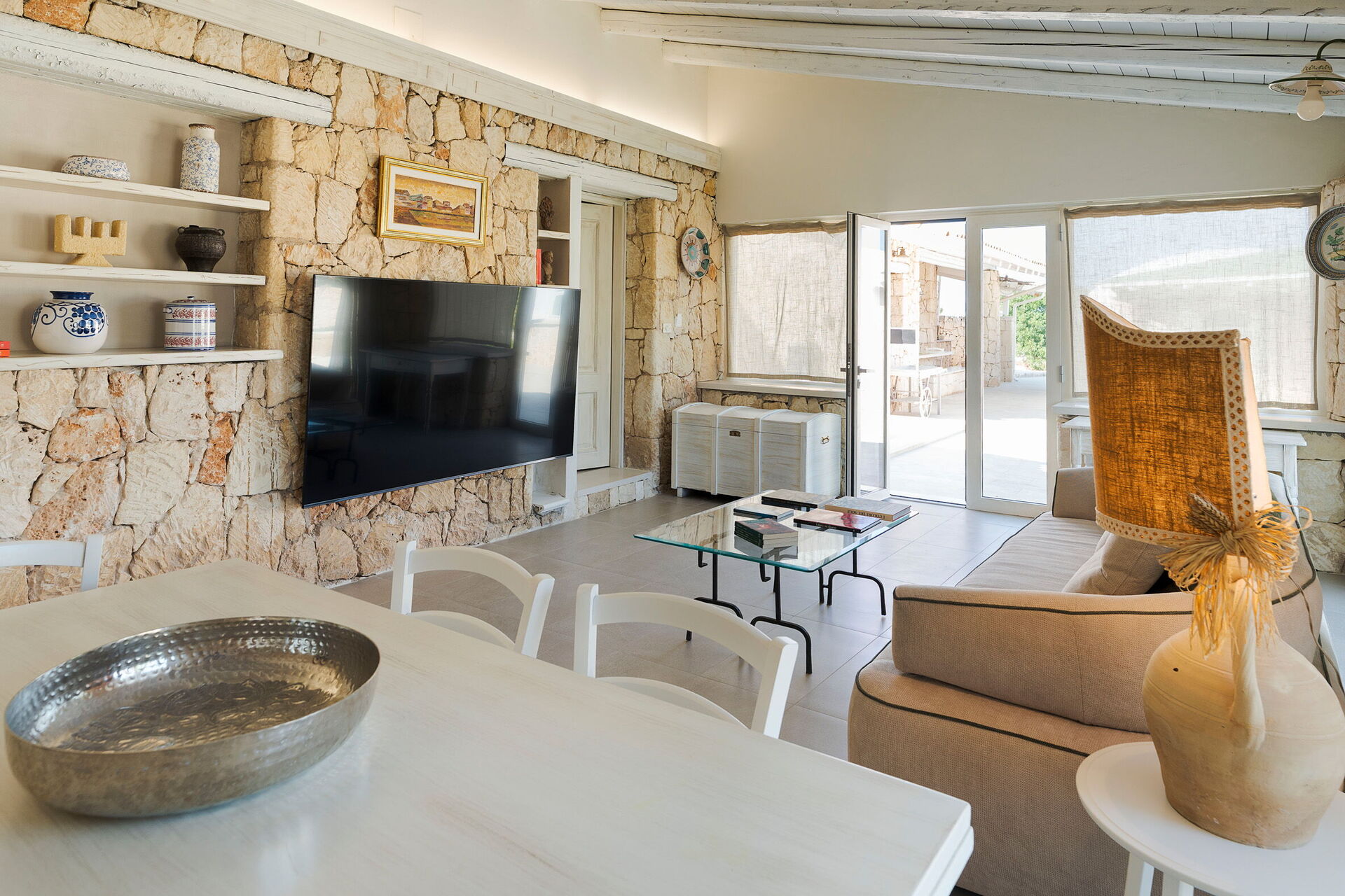 Composée de deux unités de logement, la Villa del Mito présente des intérieurs confortables meublés avec goût et confort.