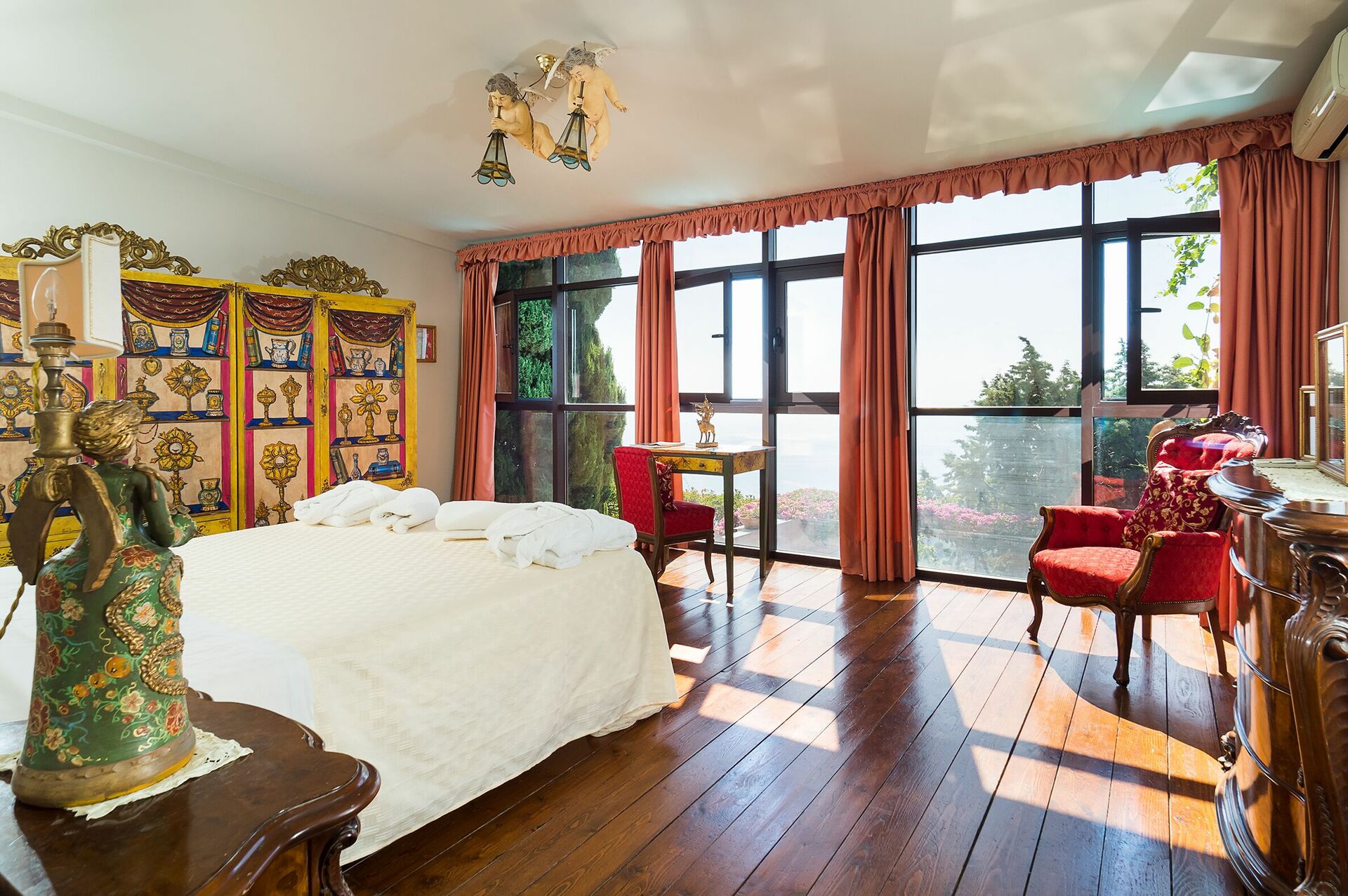 We loved the villa. It is special, spacious and beautifully decorated. Great location with a wonderful view over Taormina and the sea. The owner is a great host and very service oriented. The description was perfect, the photos did not lie. Great surroundings and a very short walk to the center of Taormina where it is easy to find nice restaurants, elegant shops etc.