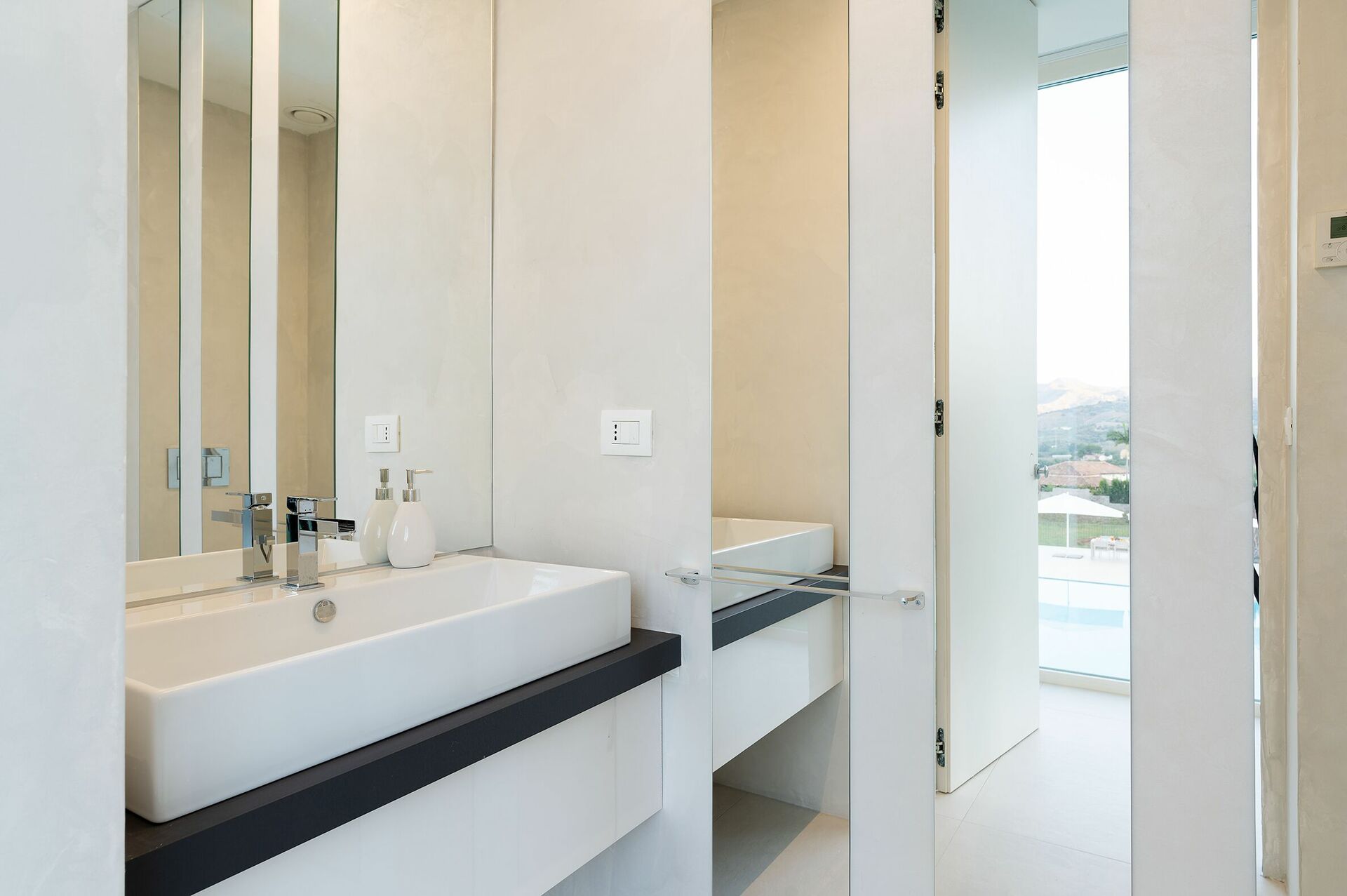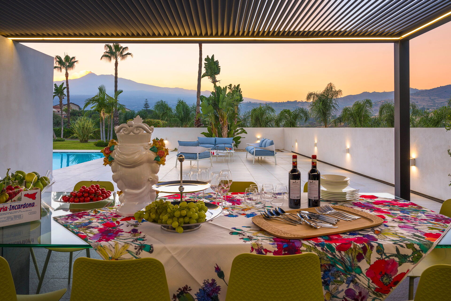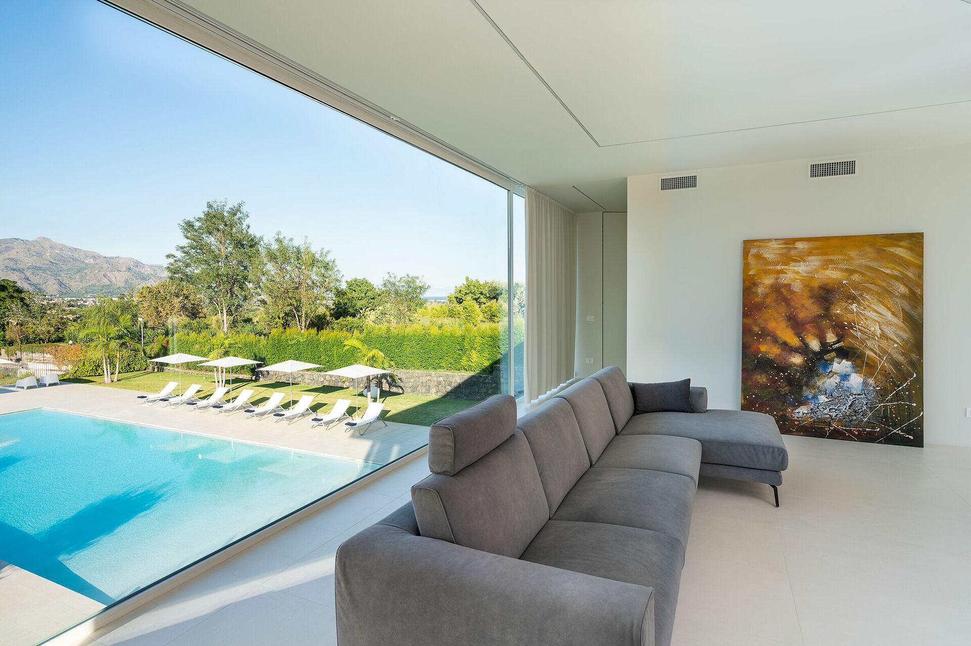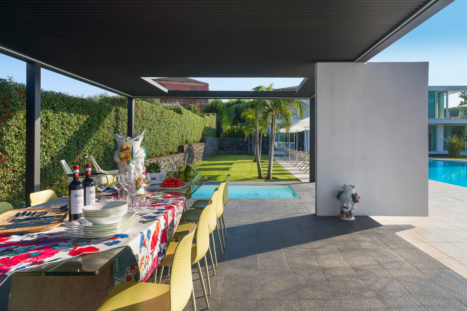 Villa Greta est une villa de luxe avec piscine privée en location vacances en Sicile, aux alentours de Taormina. Idéale pour des vacances confortables et reposantes en famille ou entre amis, la villa est entourée d'un splendide jardin avec pelouse à l'anglaise, de grandes terrasses et une grande piscine privée.