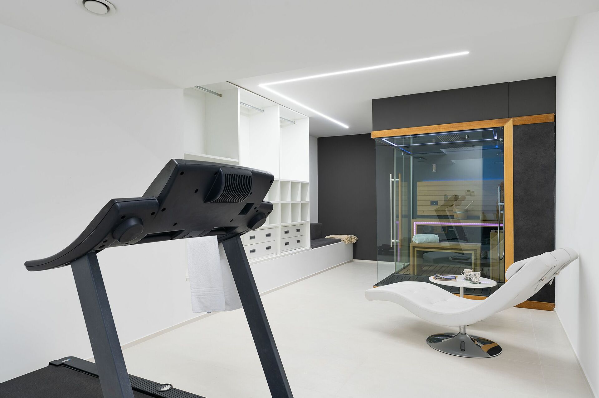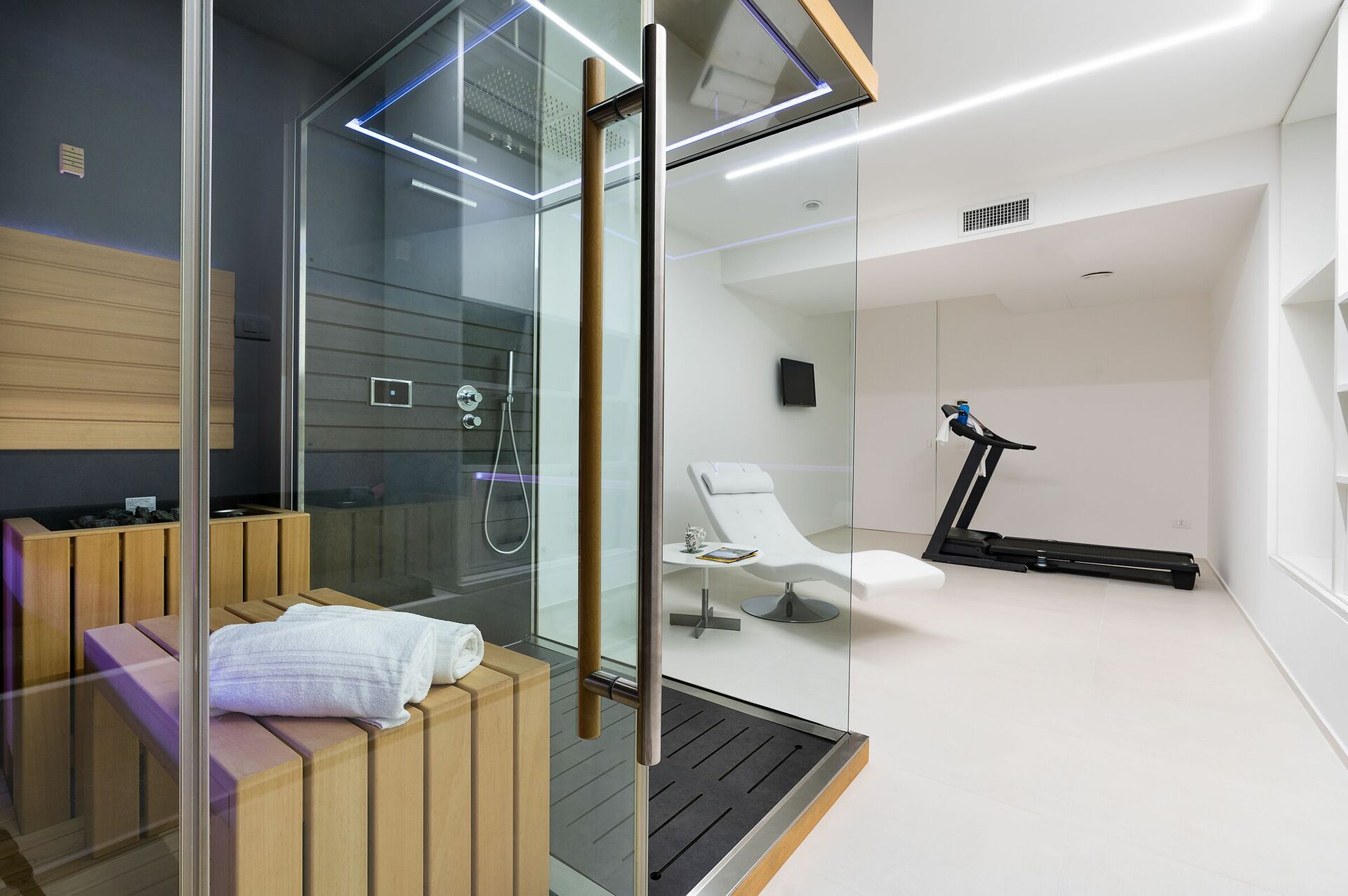 - Espace bien-être avec sauna et tapis roulant