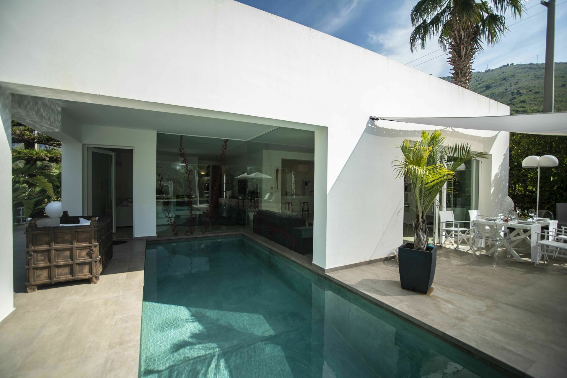 Villa Denari est une belle villa moderne avec piscine privée en location à proximité de Terrasini en Sicile.