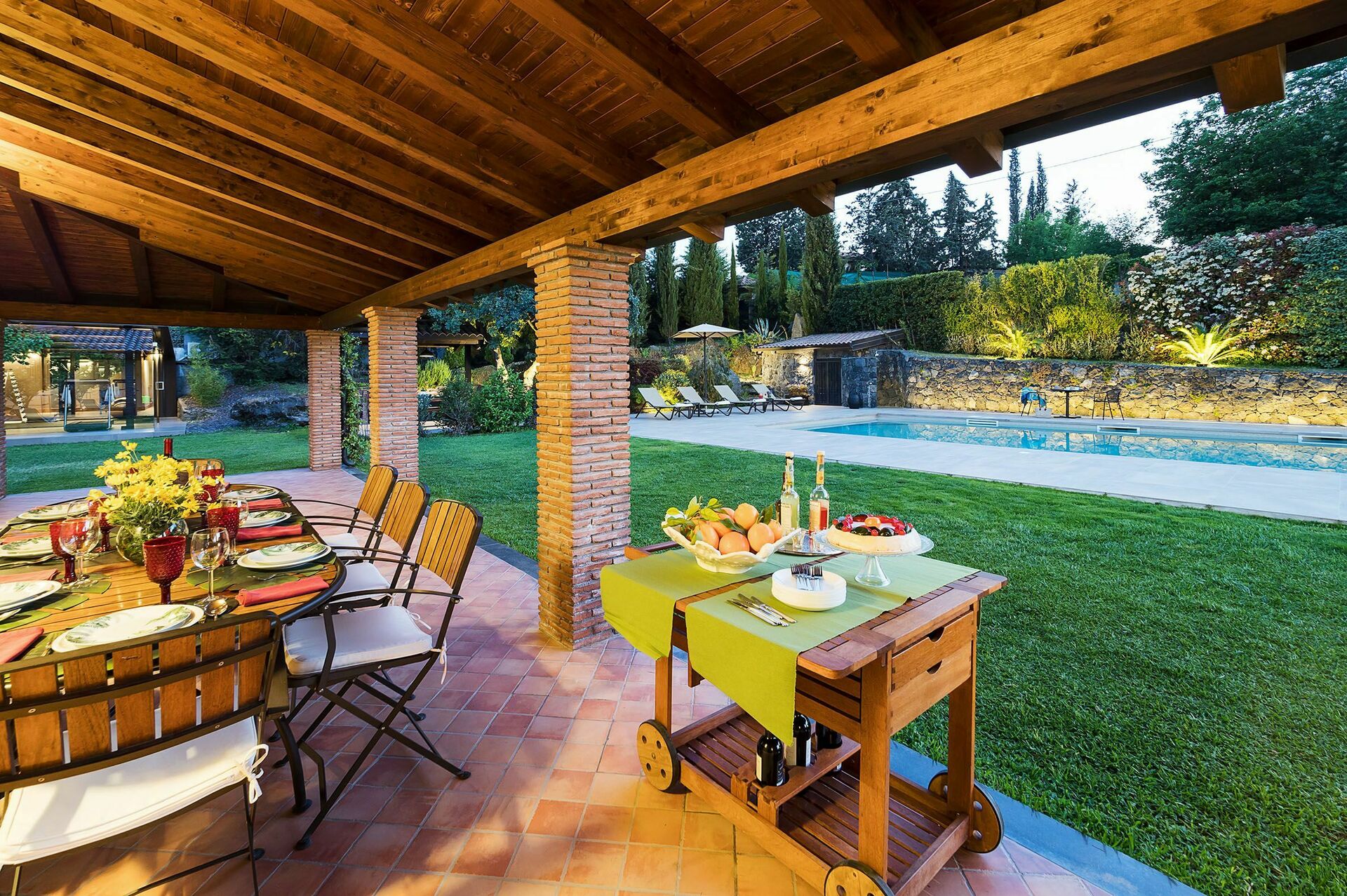 Terrasse couverte équipée, grand jardin bien entretenu, belle piscine avec solarium pour d’agréables moments de détente.