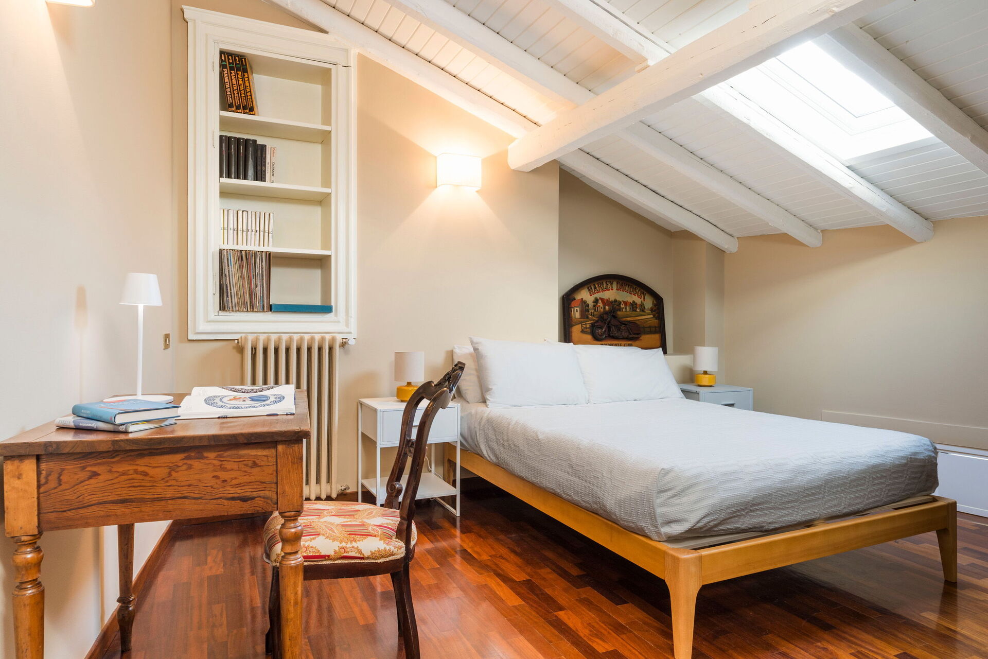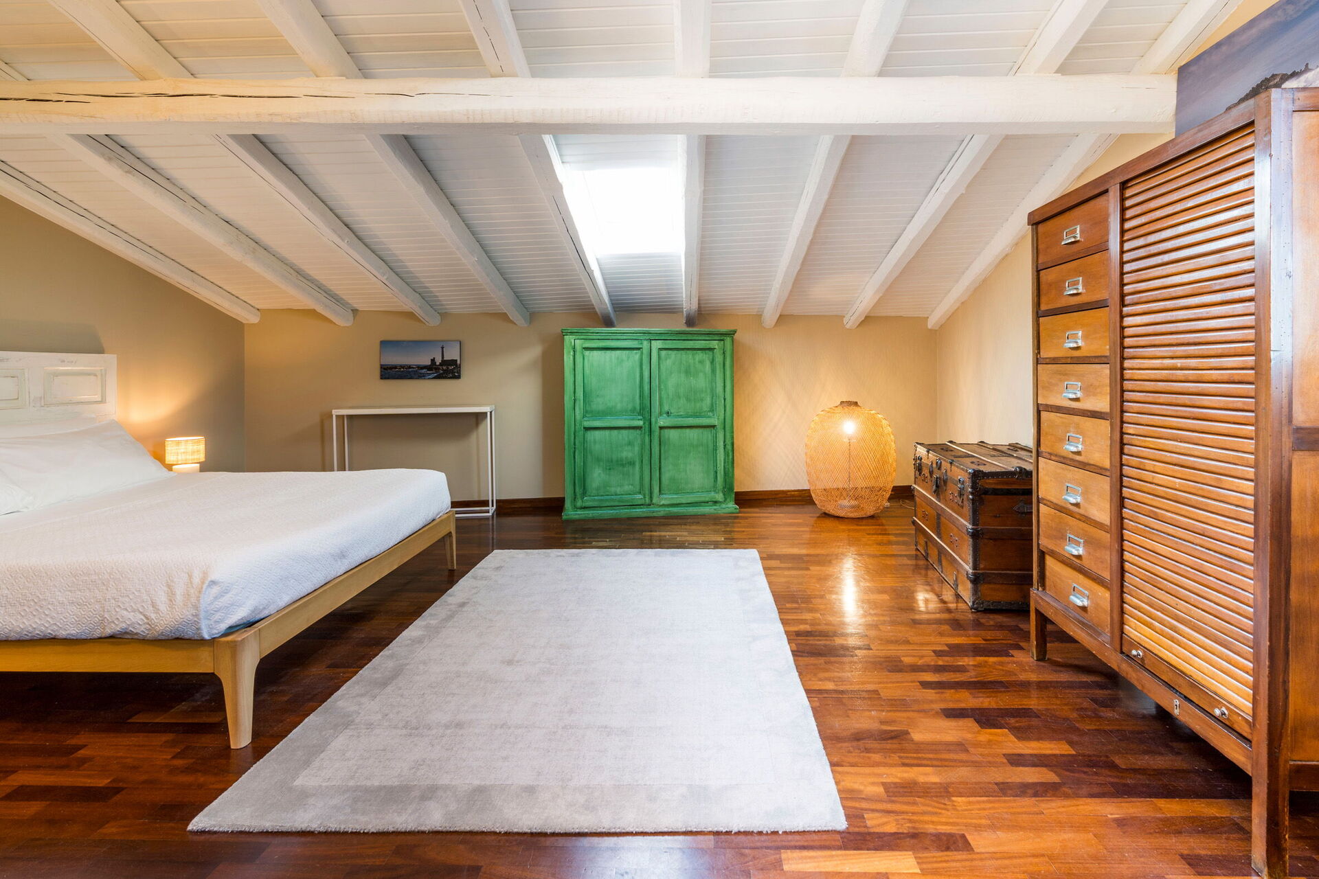 Premier étage (aménagé en mezzanine): chambre double (air conditionné, dimensions du lit: 160 x 200 cm), salle de bain avec douche, chambre avec lit à la française (air conditionné).