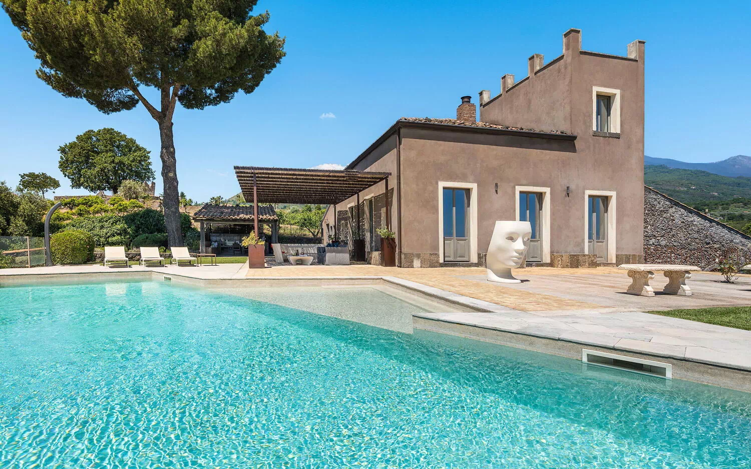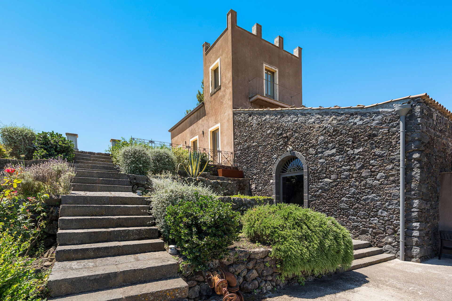 Immergé dans le caractéristique paysage éthnéen, entouré de vignes, de vergers et murs en pierres sèches, cette demeure dispose d'une piscine panoramique au sel, de terrasses spacieuses et bien équipées, d'un jardin bien entretenu avec plantes aromatiques et d'un espace bien-être avec vasque (hydromassage), bain turc, sauna, douche émotionnelle et grotte de sel.