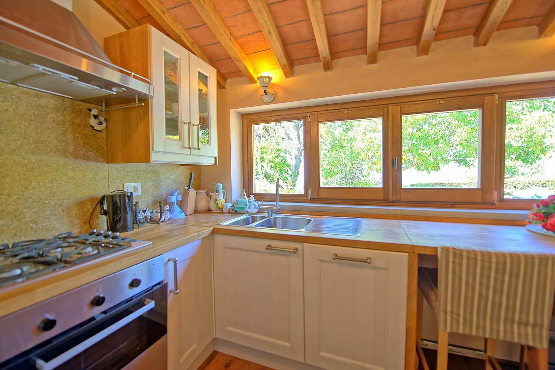 Distances : Antria avec magasins alimentaires à 2km, Arezzo avec magasins variés et gare ferroviaire à 12km, Cortona à 40km, Florence à 70km, Rome à 150km.
