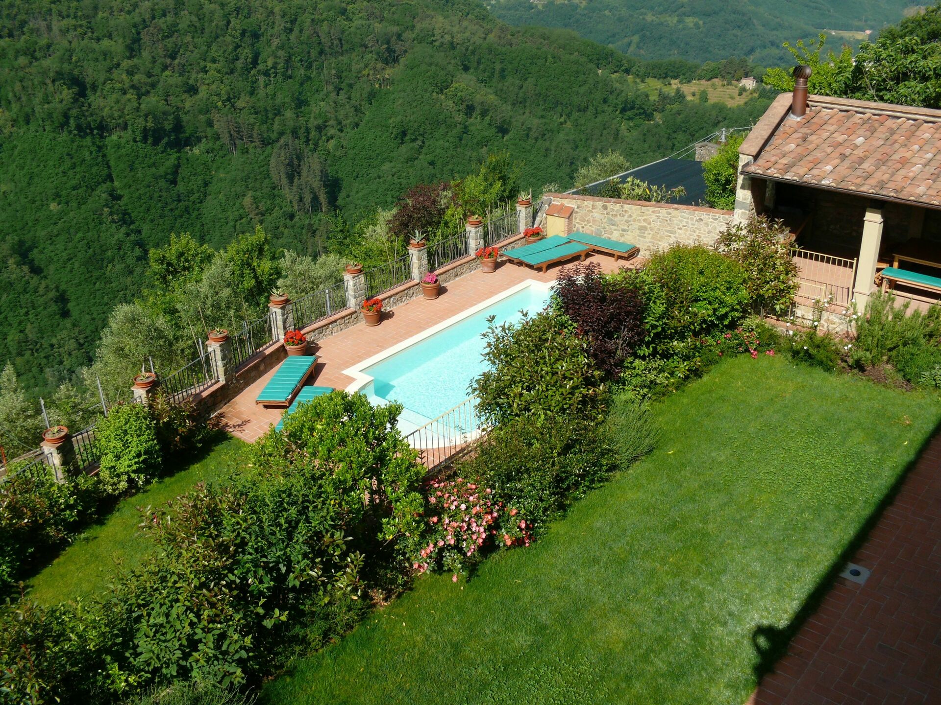 Distances: le village de Lugliano à peu de distance, Bagni di Lucca avec supermarchés, commerces variés et restaurants à env. 2 km, Lucques à env. 23 km, Pise à env. 50 km, Florence à env. 80 km.