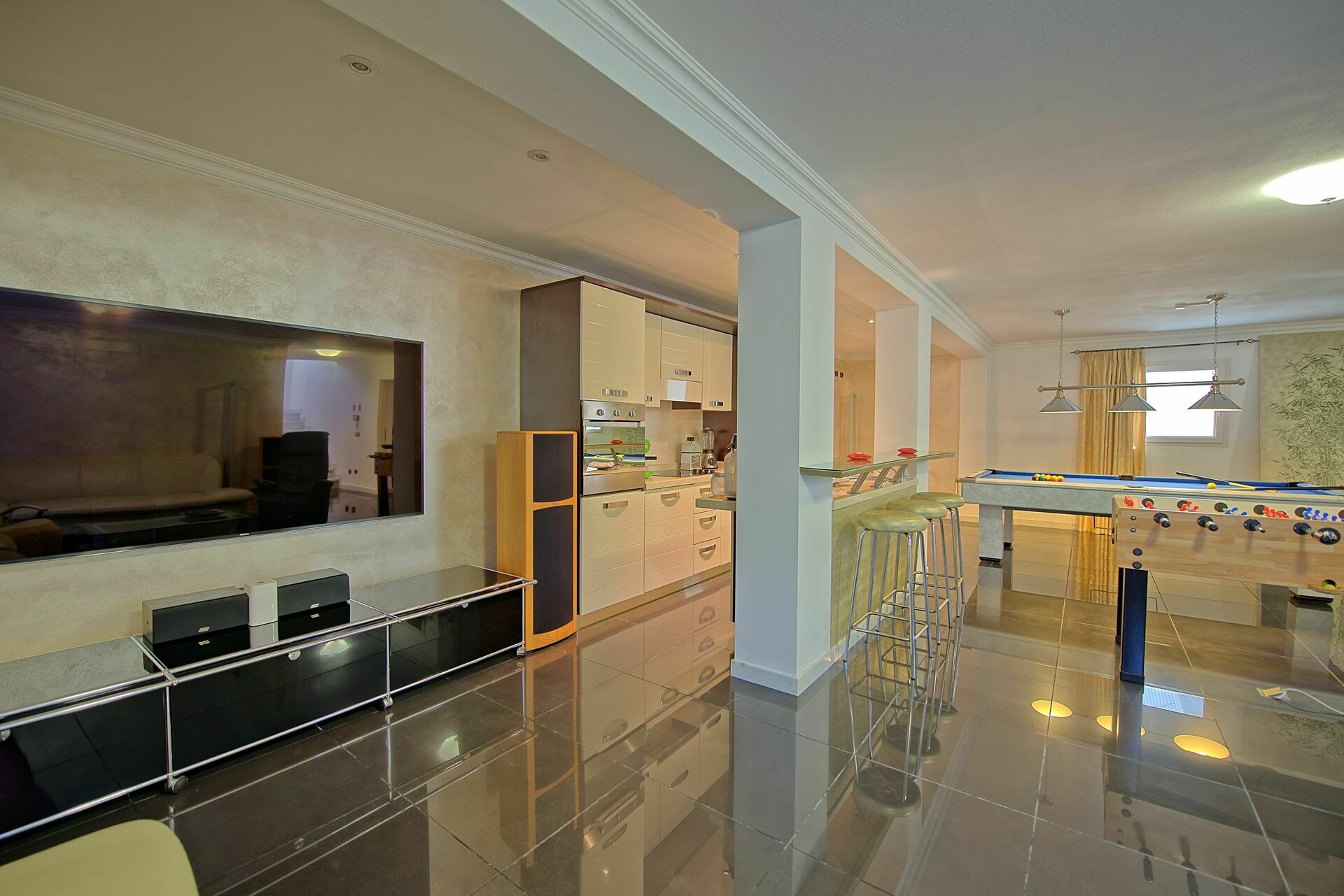 Ein absolutes Highlight ist der Keller mit Billardtisch und Entertainment inkl. Grossbild TV.