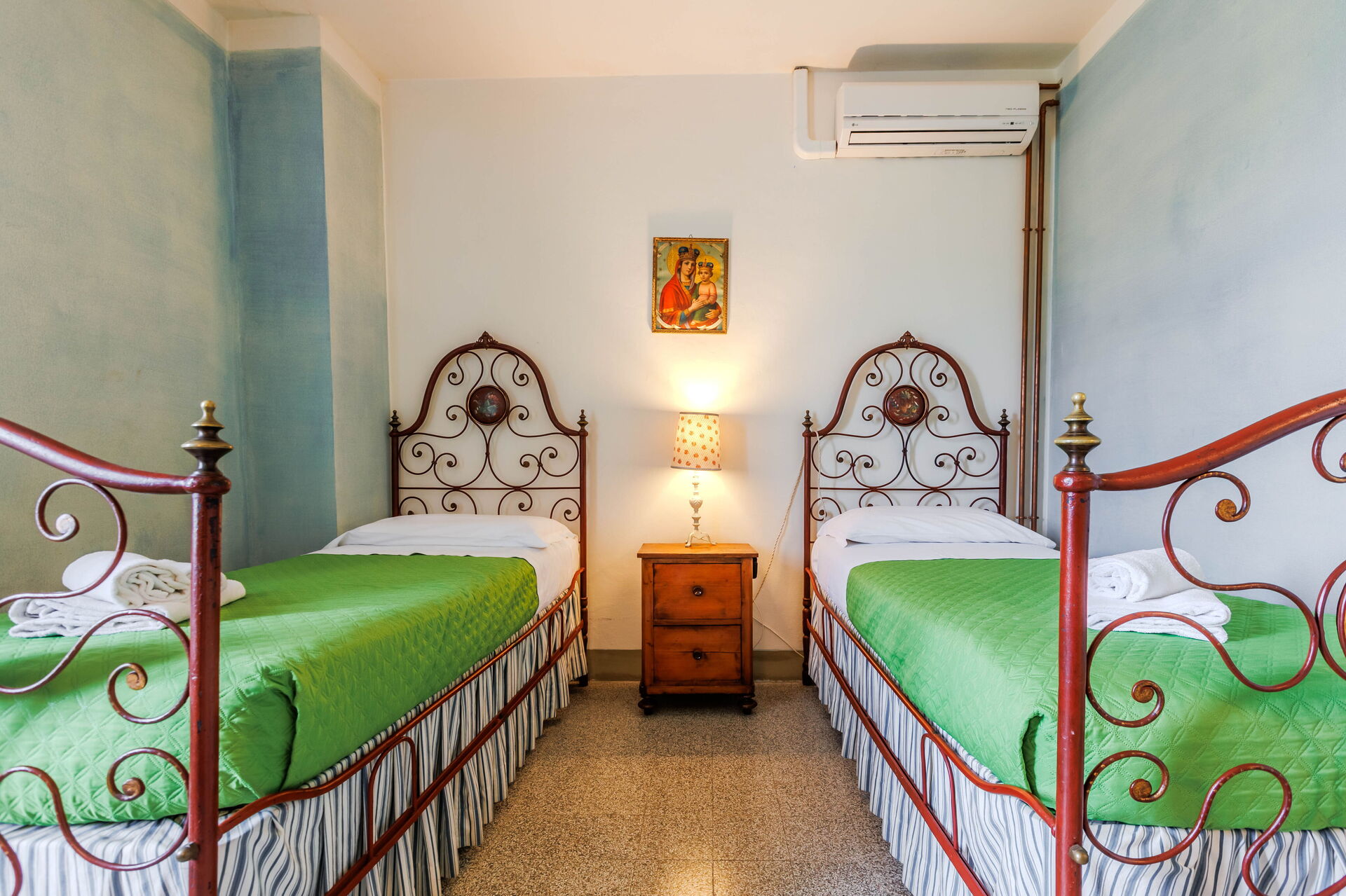 Séjour de 4 jours pour moi et mon fils adolescent, pour visiter la Toscane (Florence et alentours) avec des températures frôlant les 49 degrés en journée. Nous avions l’appartement « Verde Rame » le seul avec une TV. L’appartement est parfait avec salon cuisine au rdc et les chambres salle de Bain wc à l’étage. On y a des ventilateurs de plafond efficaces au salon et dans les chambres + des climatisations dans les 2 chambres. Les pièces sont grandes et il y a pleins de rangements. Il y a tous les équipements nécessaires. Il y a 4 appartements mitoyens au total mais sans aucun bruits entre les appartements. On peut acheter des produits de la propriété (vin chianti …huile …). Il y a un point ombragé pour garer la voiture. L’endroit est magnifique et paisible. Et en même temps proche des commodités (supermarché, station service, restaurants..) en voiture. Il est aussi très bien placé pour rayonner et visiter au alentours de Florence. Béatrice le point de contact est claire, réactive.