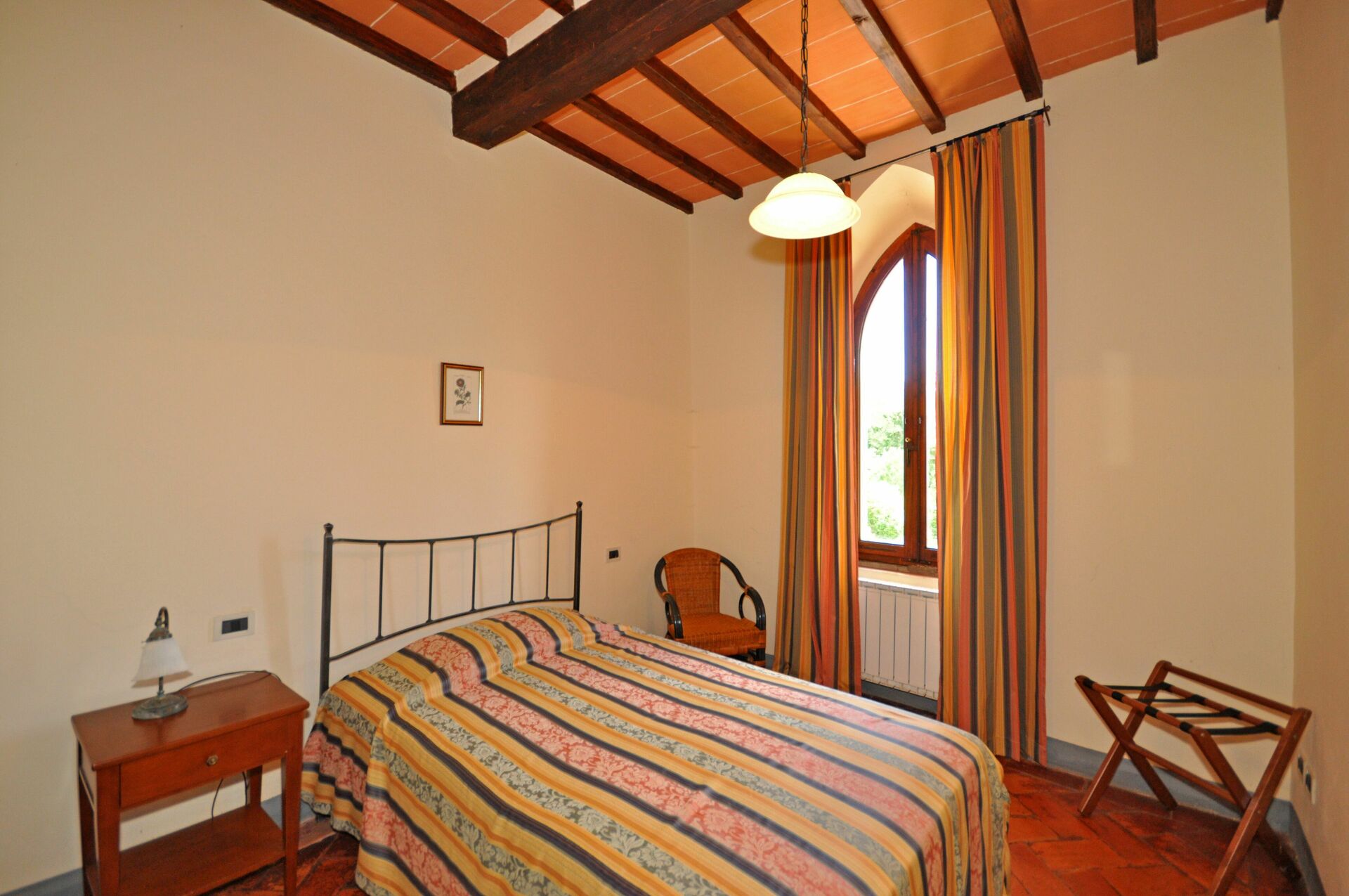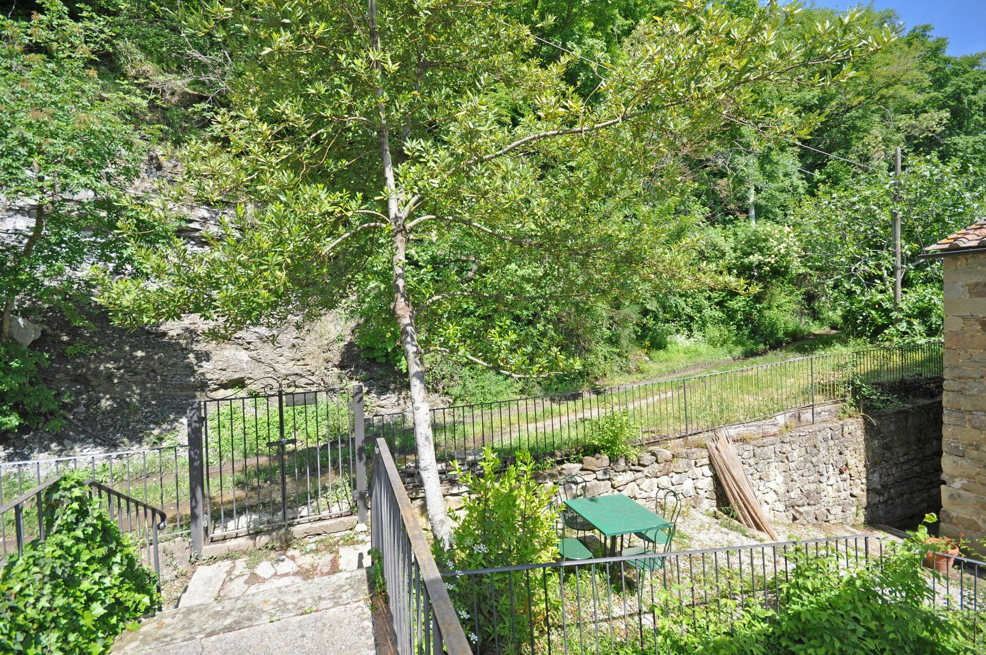 Premier étage: accès par une petite et caractéristique porte et zone privée et équipée dans le jardin, séjour/salle à manger (TV-Sat) avec cheminée et coin-cuisson (2 Plaques électriques), salle de bains avec baignoire (sèche-cheveux), une chambre avec un lit à une place.