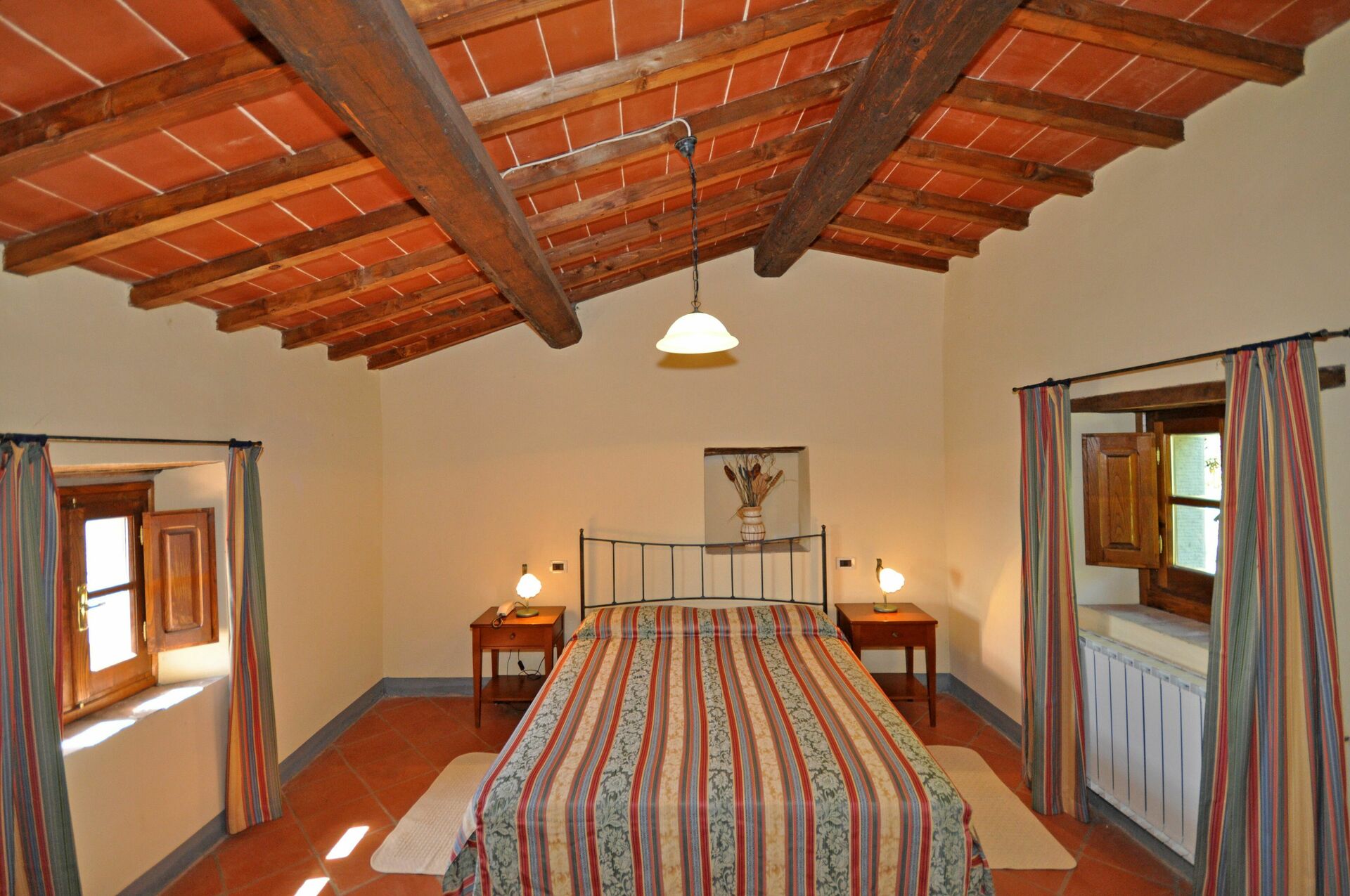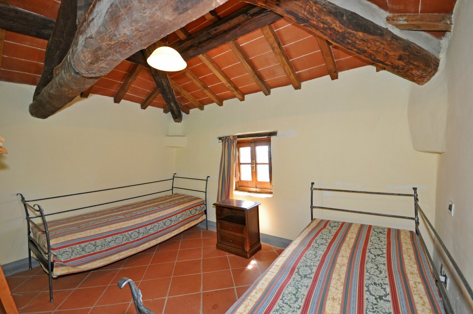 Deuxième étage(dans la petite tour): une chambre (ouverte sur le niveau inférieur) avec 2 lits à une place.