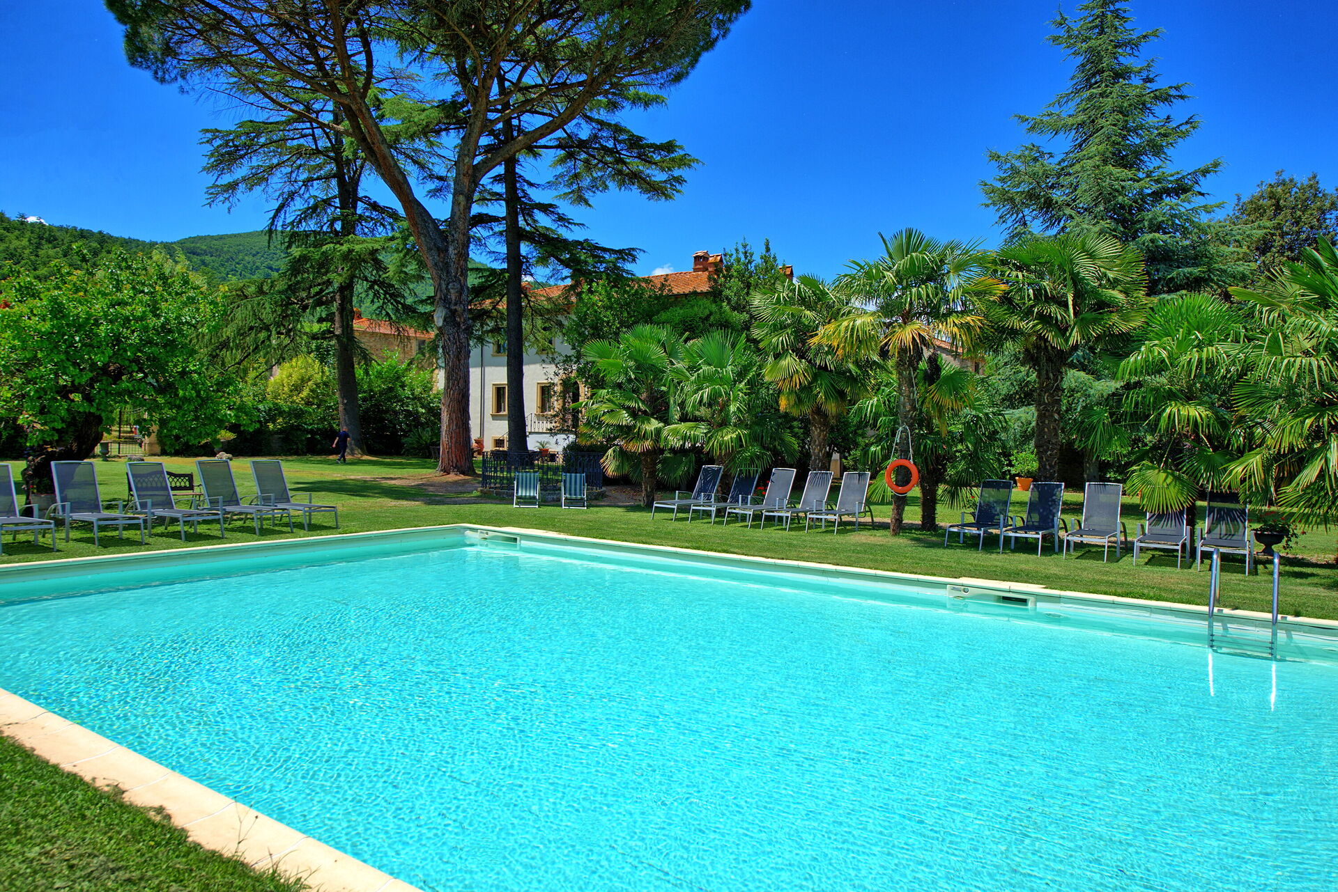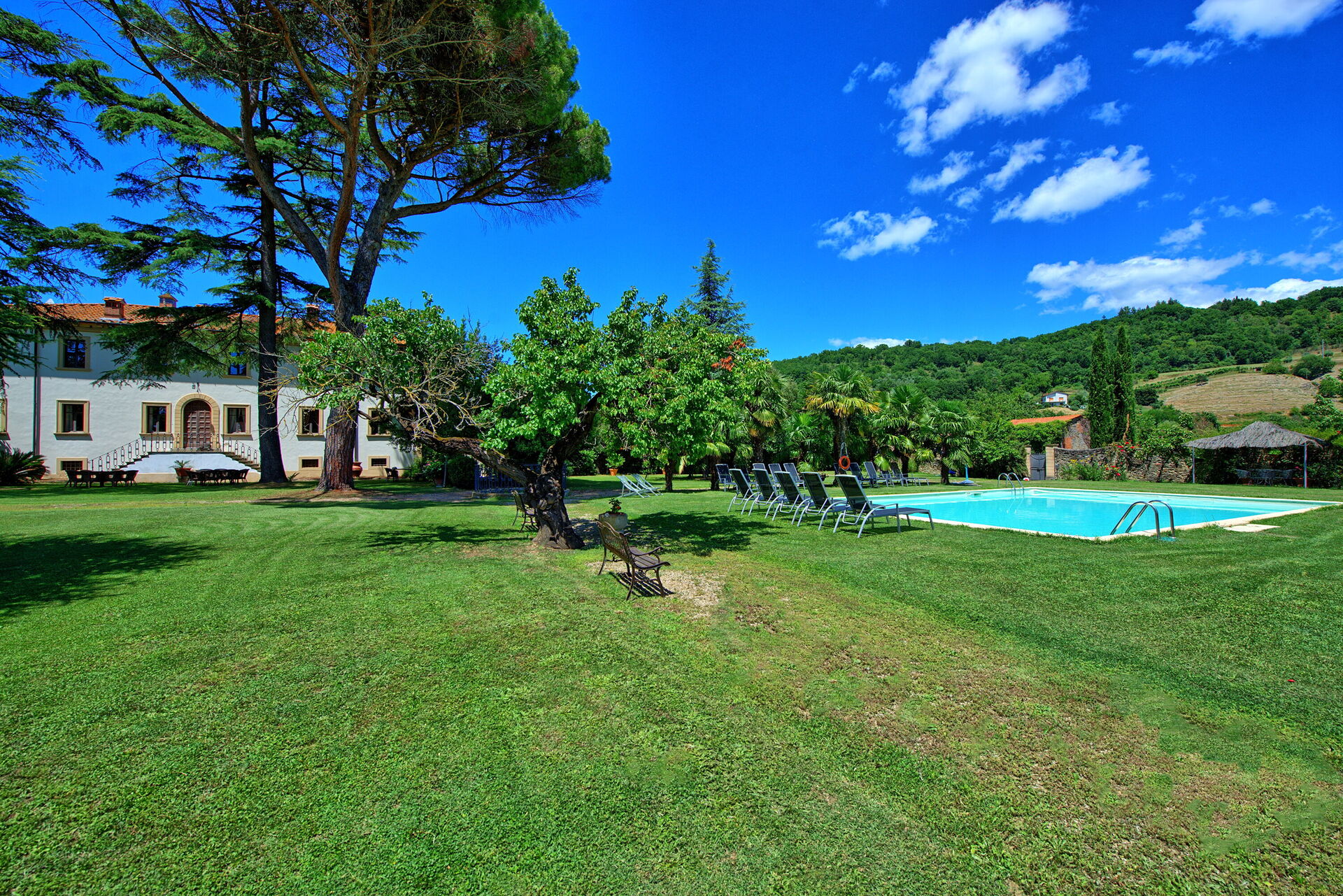 La villa dispose d’un grand jardin complètement clôturé avec une belle piscine privée. La propriété a été complètement restructurée et transformée en une accueillante maison de campagne meublée de façon très confortable avec de grands espaces extérieurs équipés de hamac, tables et confortables fauteuils. La ville d’Arezzo distante 17km, est également accessibile en train, une petite ligne locale qui passe à 80m de la maison (ligne Stia – Arezzo, le train est composé de 2 wagons). La location de la propriété comprend toute la villa principale (14 couchages), un petit appartement accessibile depuis la cour intérieure de la villa (4 couchages) et une importante partie commune composée de 2 grands salons dont un avec cheminée et l’autre avec poële et ping-pong, d’une cuisine (four, freezer, lave-vaisselle, four à bois) et d’un wc.
