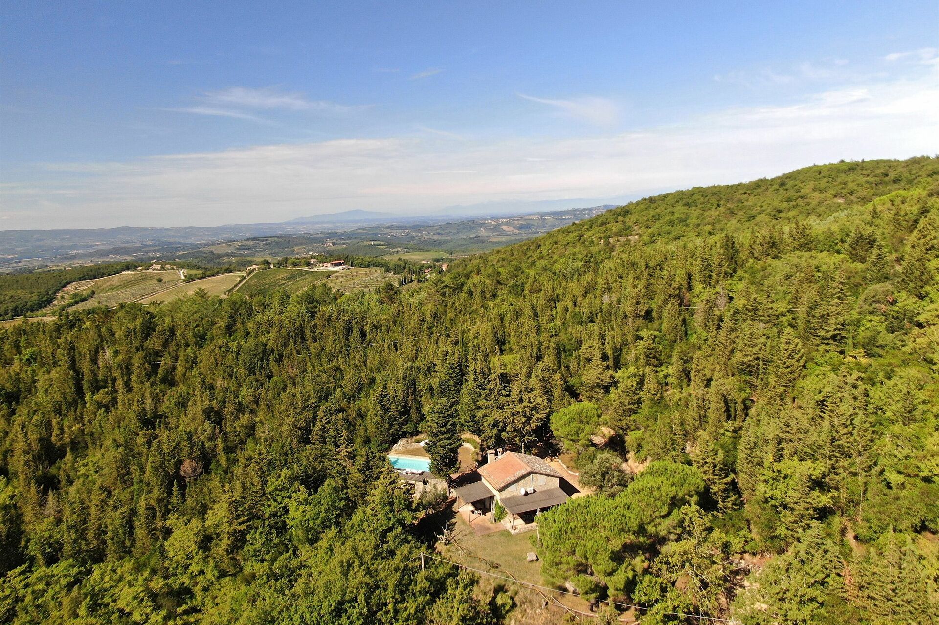 Beautiful stone house surrounded by woods overlooking the Chianti
