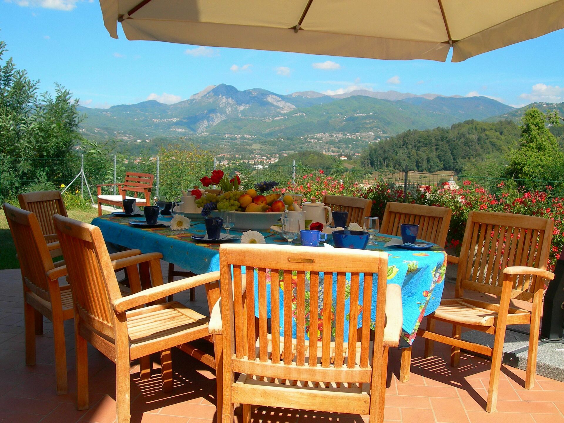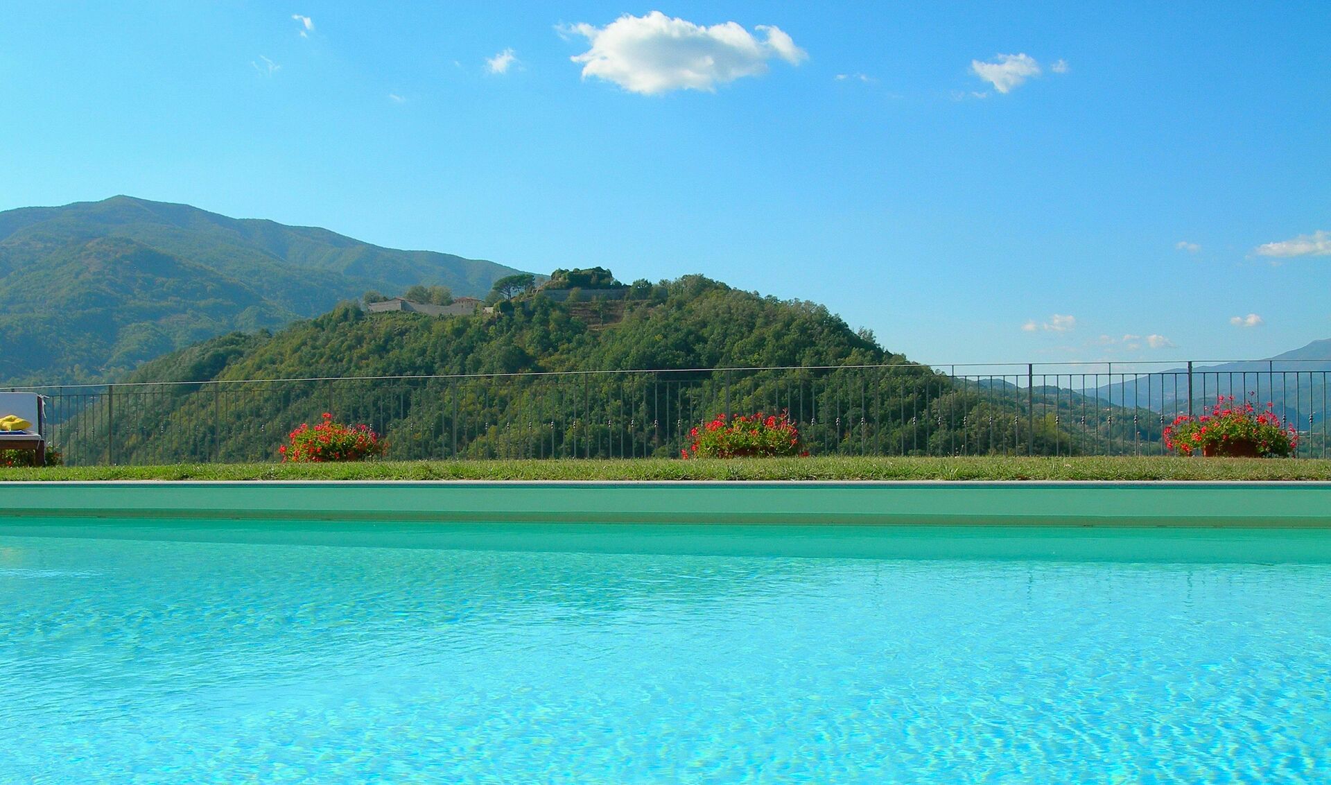 The value of the structure does not derive only from the high quality of the materials and from many comforts, but also from its location: in fact, on an area from where we can enjoy an unique view of the Alpi Apuane (the marble mountains), the Rocca Ariostesca in the centre of Castelnuovo, reachable walking on a shaded road, the Monte Alfonso and its fortress (that is part of the natural park of the Alpi Apuane) and finally the Appennino. In the river Serchio Valley we can see the Villetta bridge, one of the highest rail bridge of Italy. On the left we can admire the Pania della Croce, while on the right the beautiful "Pania di Corfino", a rocky group on which there is the Orecchiella Park, and at the far end the pass of the Radici inside the Appennino Park that, when snowy in winter, is a incredible sight.