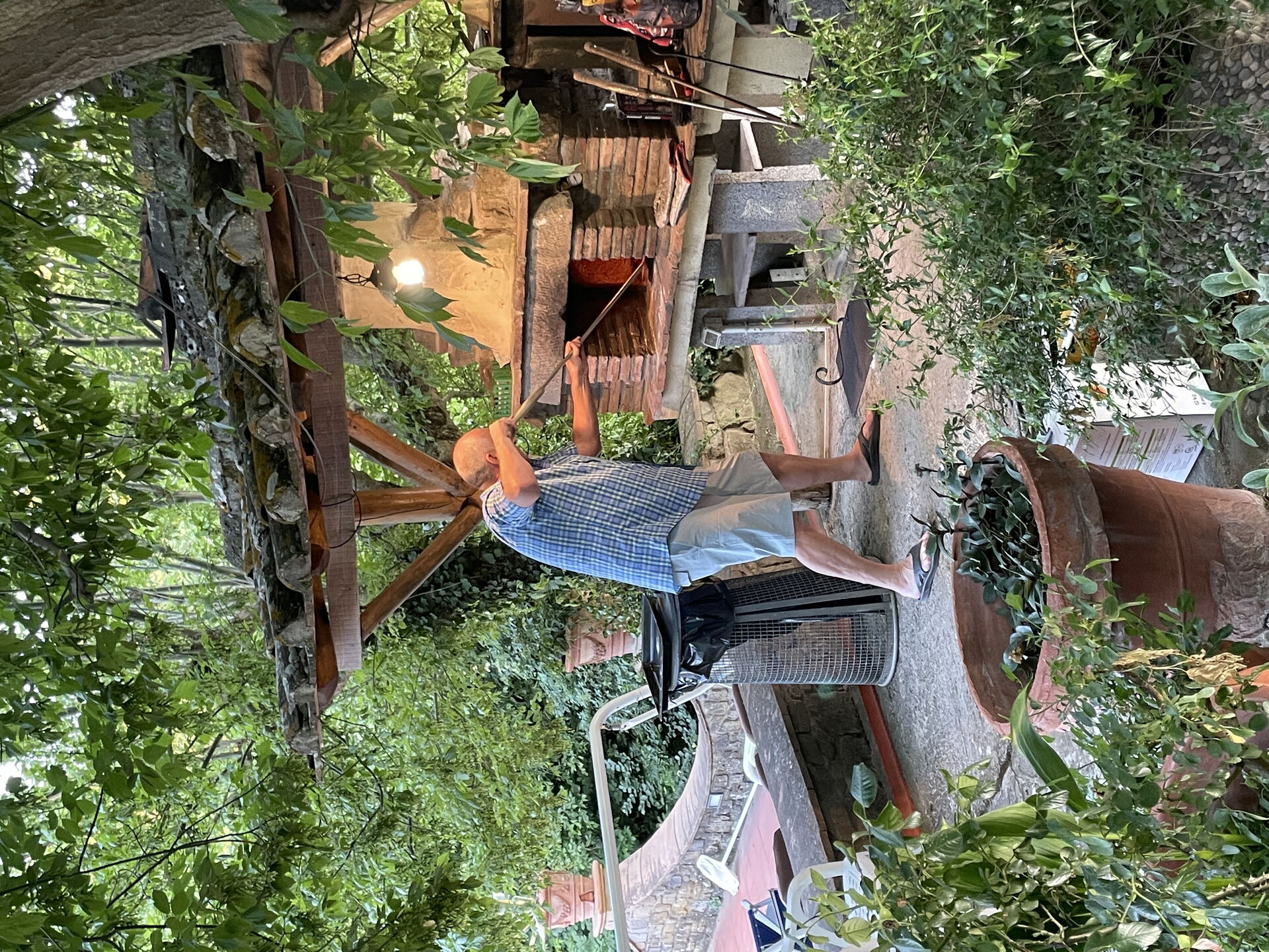 Devant la villa et à l’ombre de deux grands arbres, un barbecue et un four à bois pour préparer d’excellents repas en plein air.