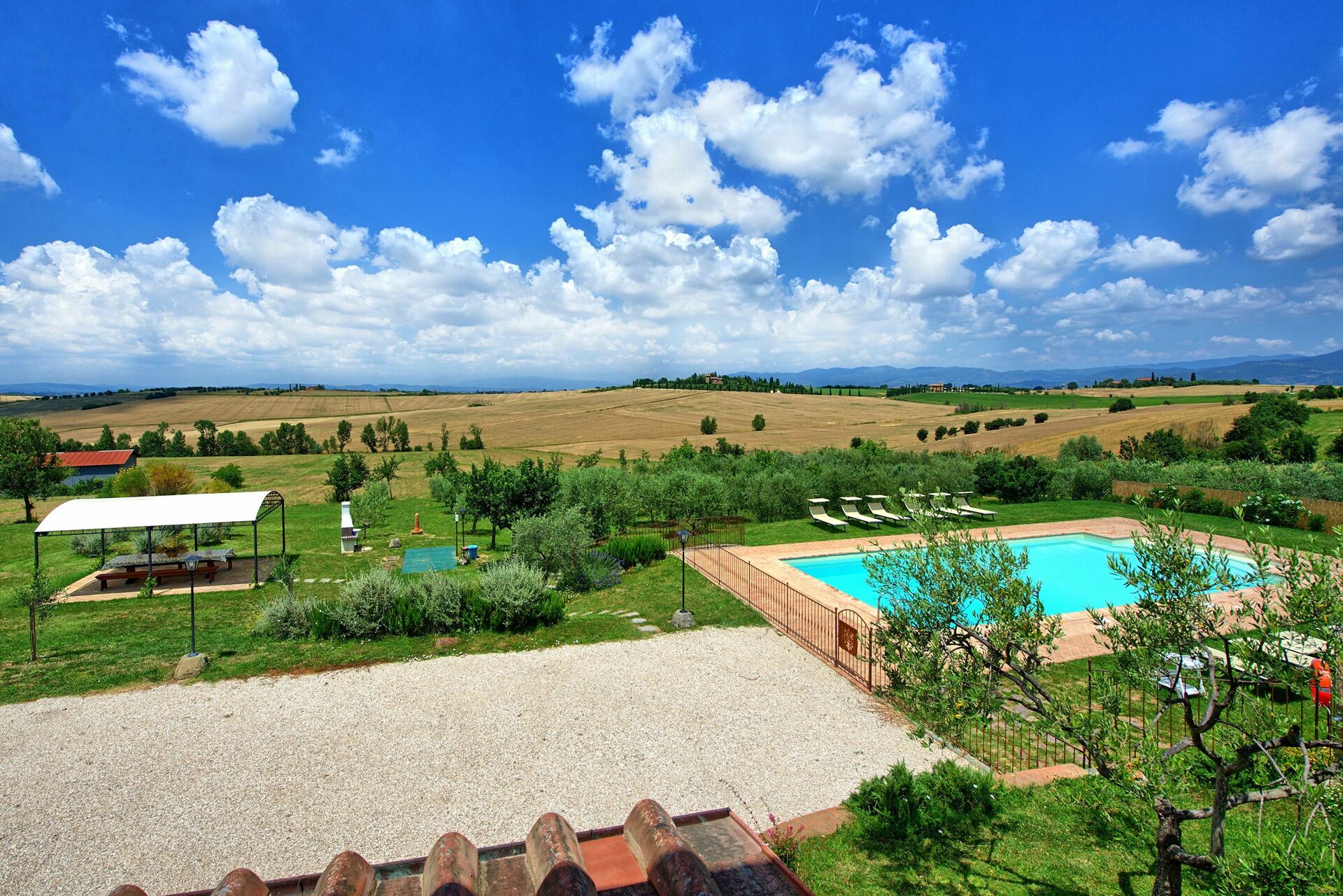 Tutto fantastico: la precisione dell'agenzia, la gentilezza e disponibilità della proprietaria, la pulizia e le dotazioni della casa, la comodità della piscina, del barbeque e del gazebo..., il tutto nell'indimenticabile cornice delle colline toscane al tramonto...